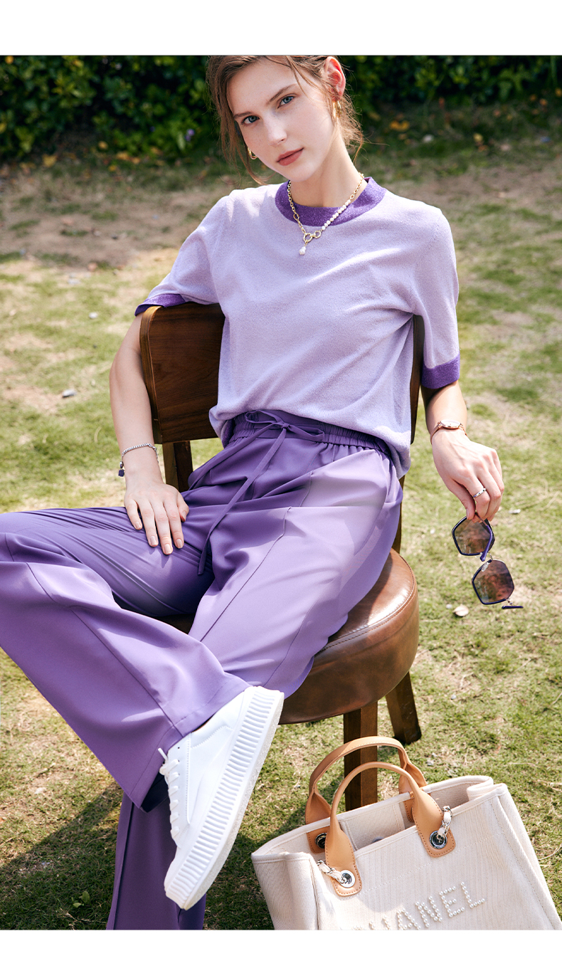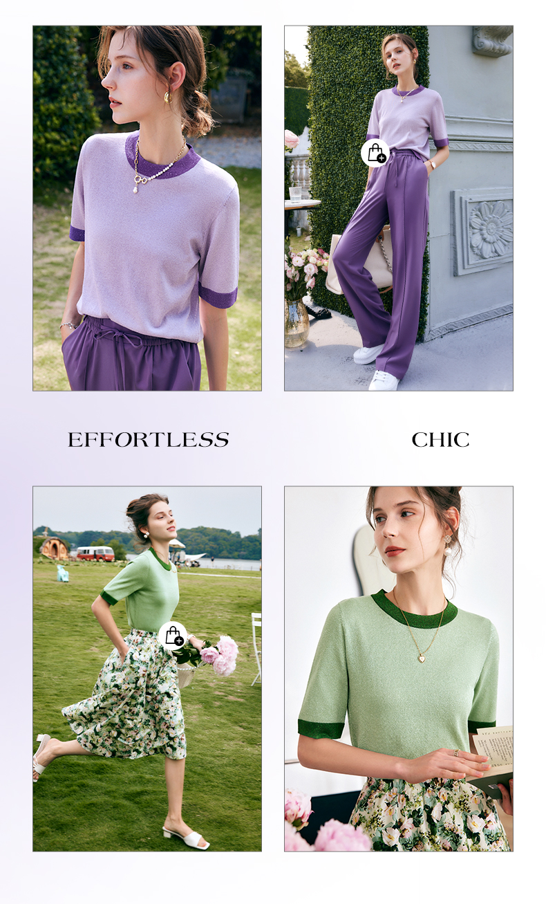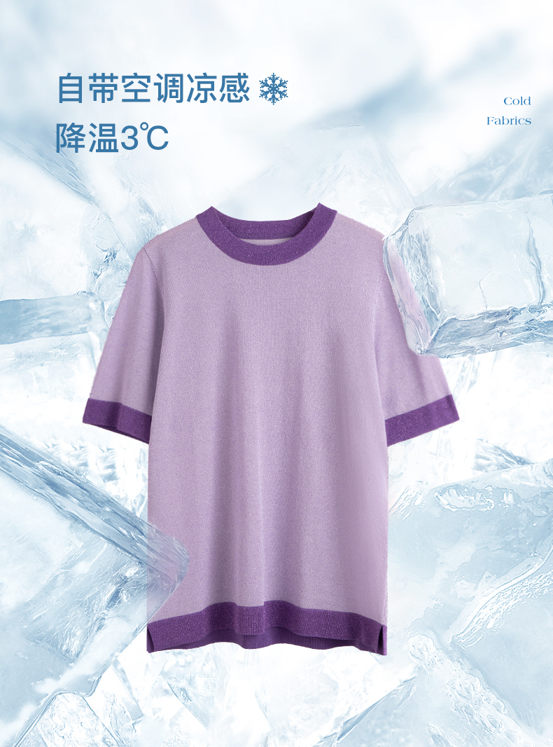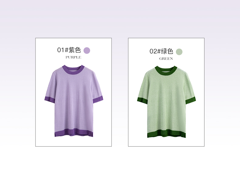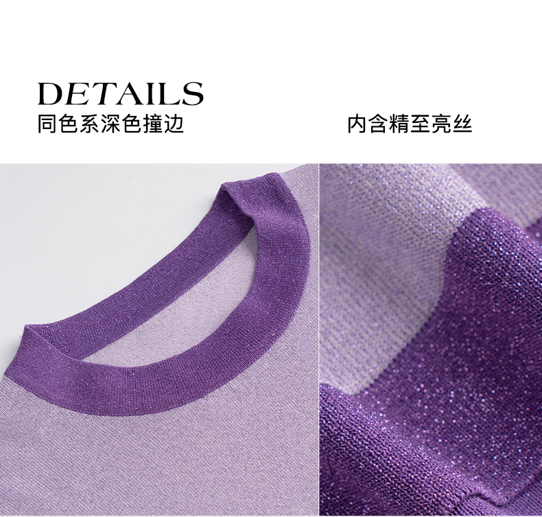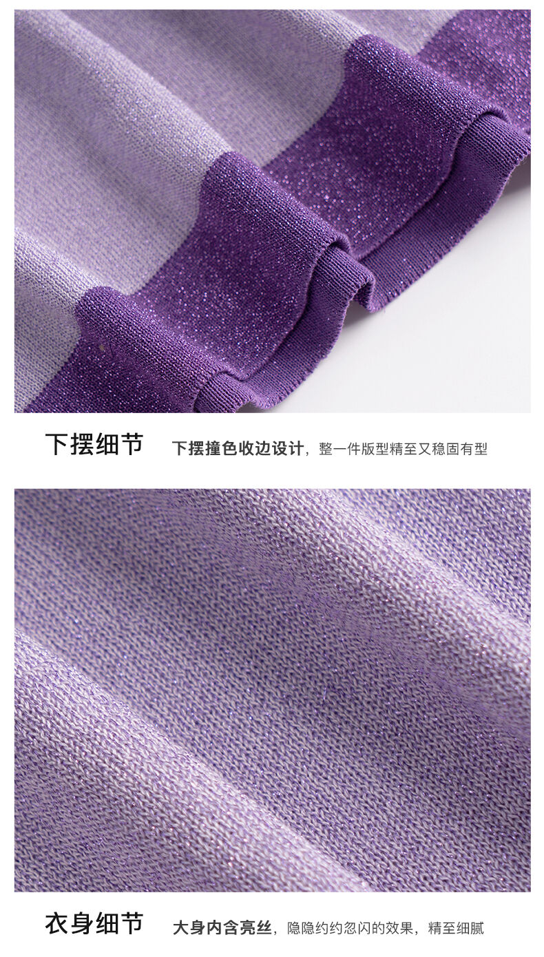 欧芮儿OLrain法式高级紫色针织衫女夏季2022短袖高端冰丝薄款上衣