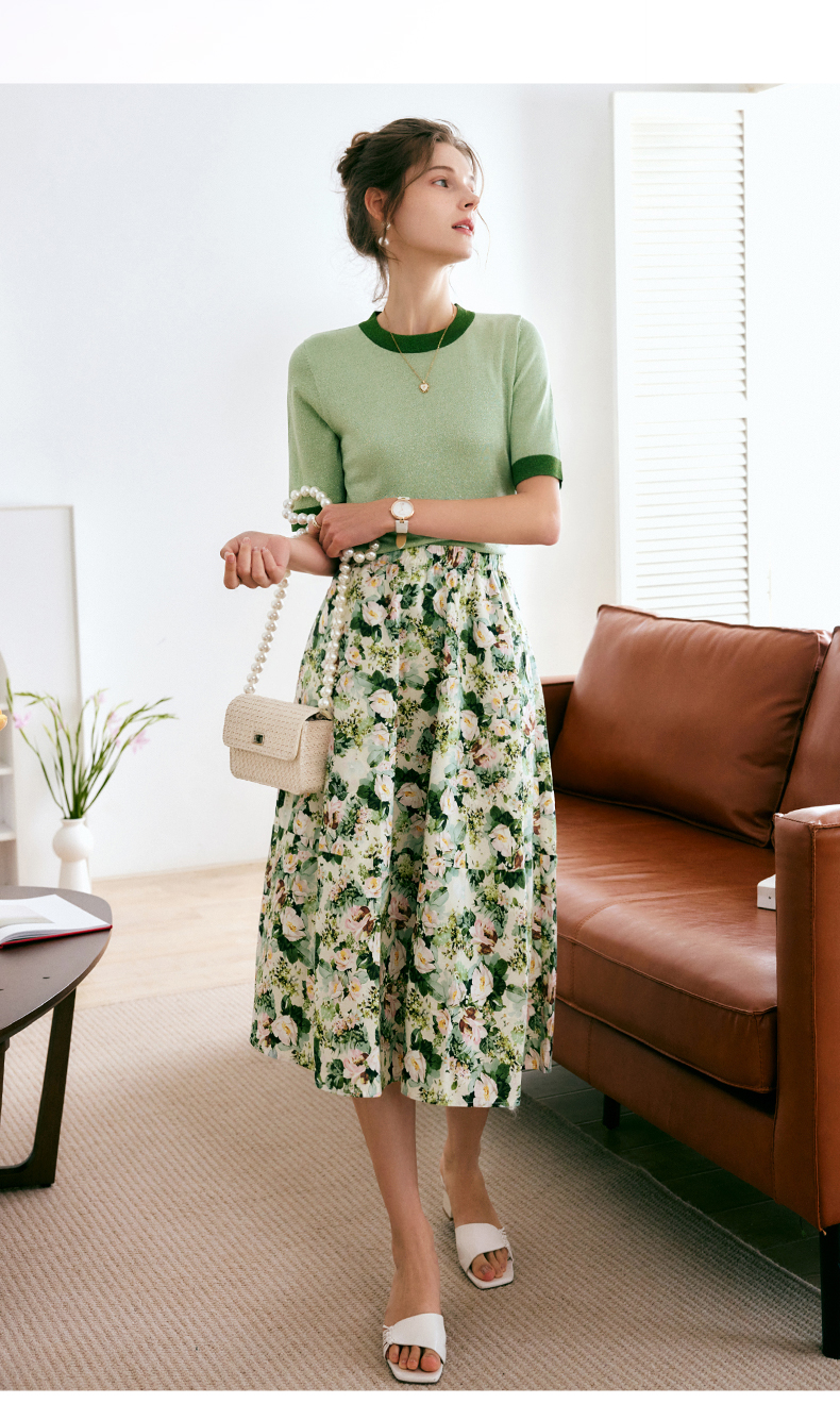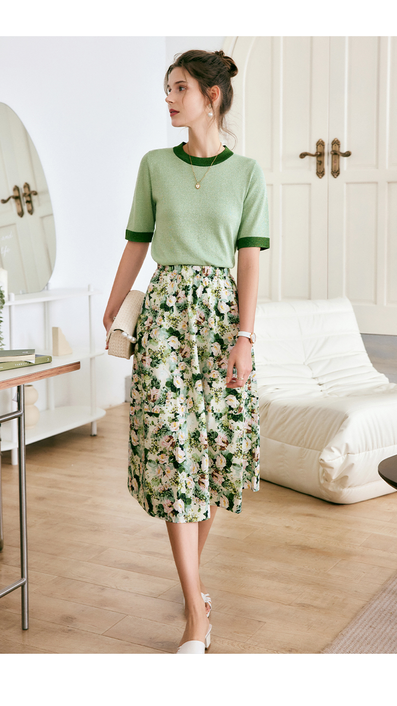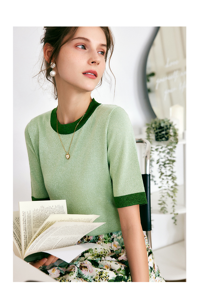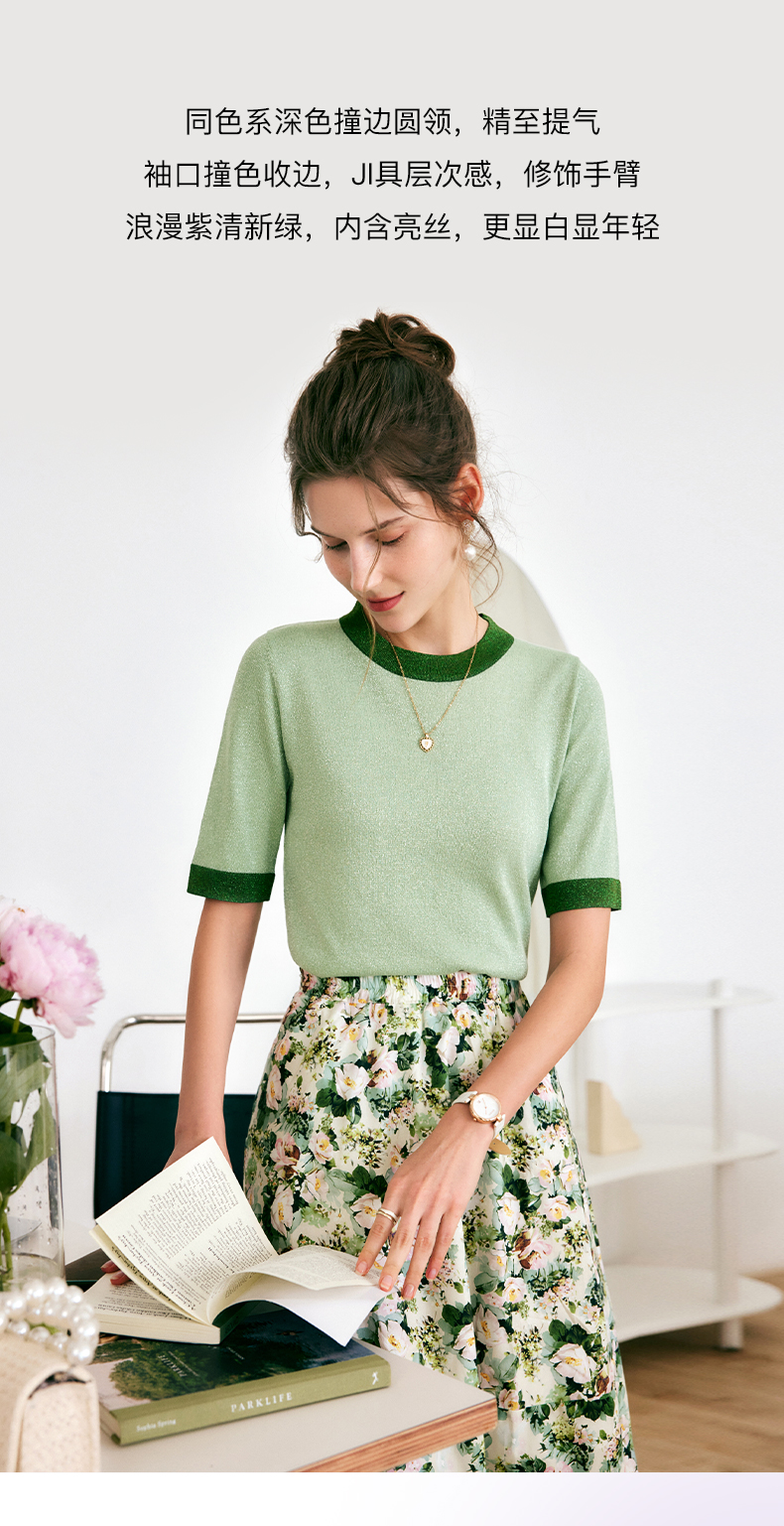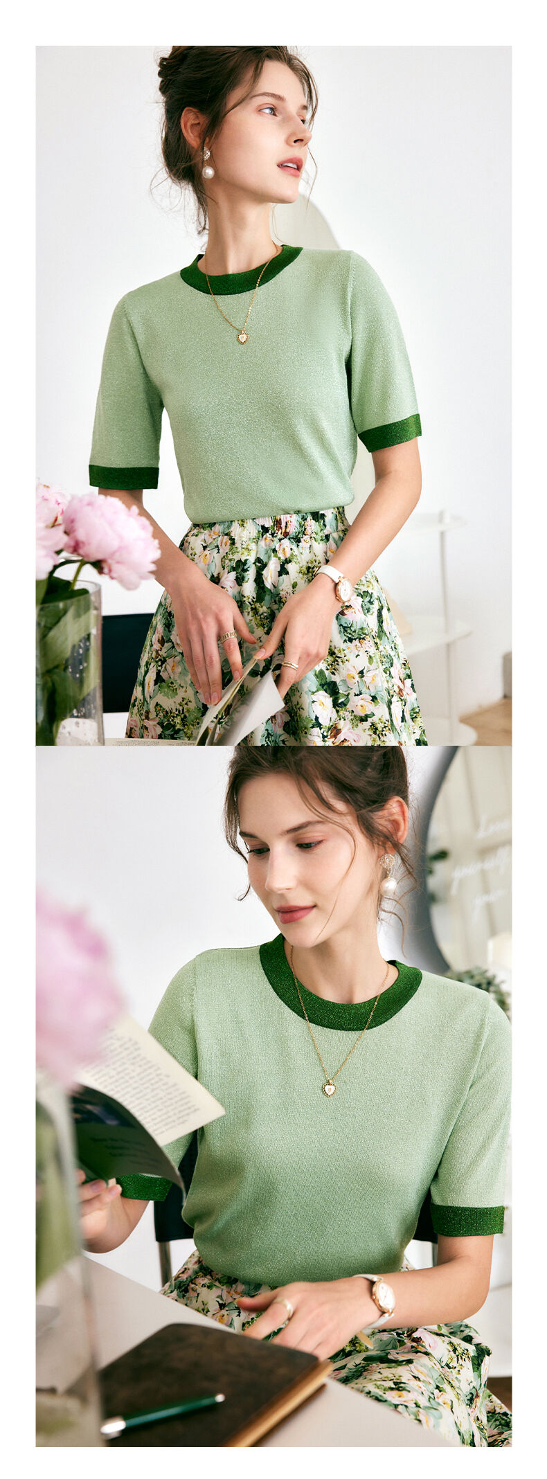 欧芮儿短袖针织t恤女冰丝薄款条纹新款2021圆领休闲套头上衣