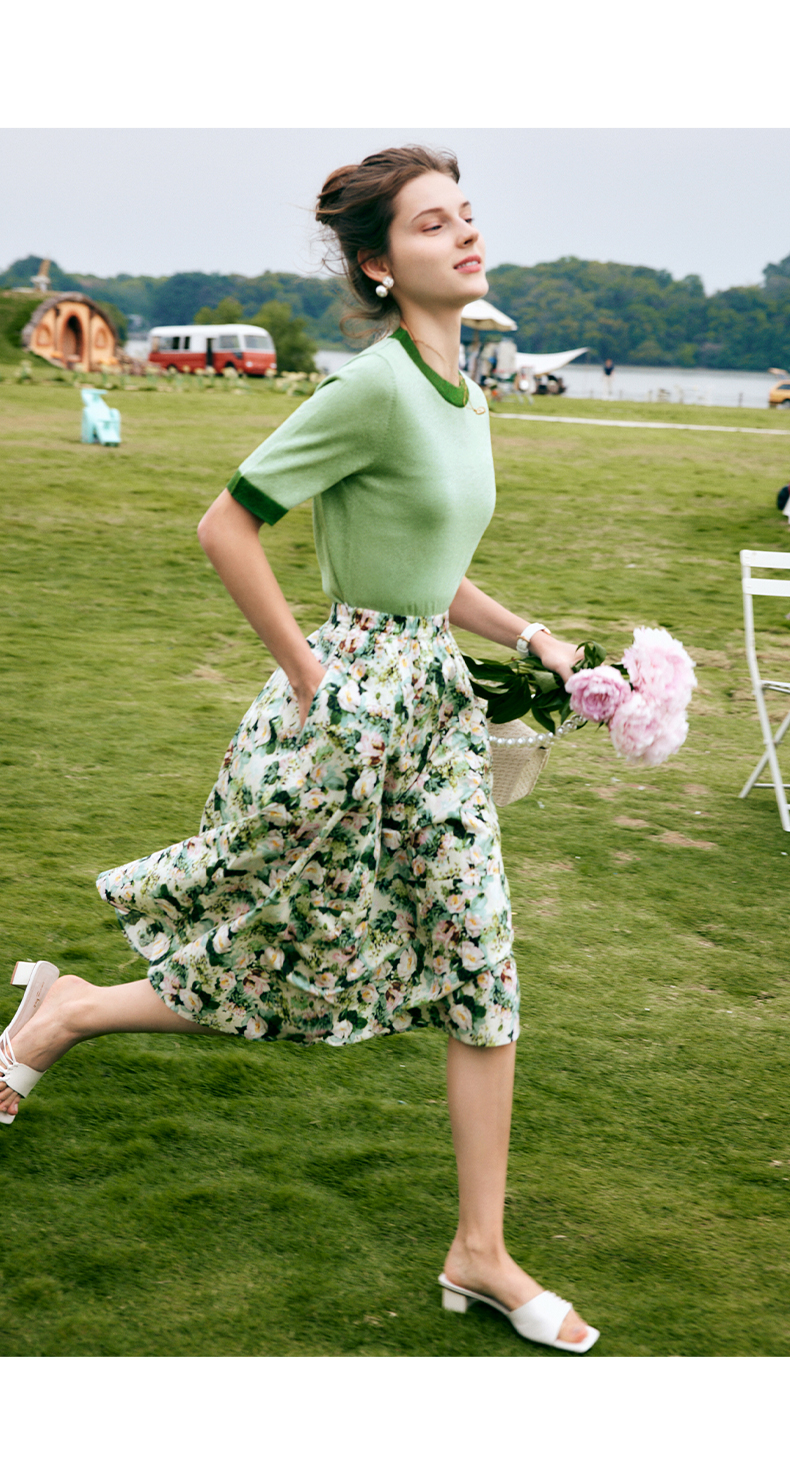 OLrain欧芮儿2025年新款夏季领口镂空法式丝巾搭配刺绣短袖T恤女