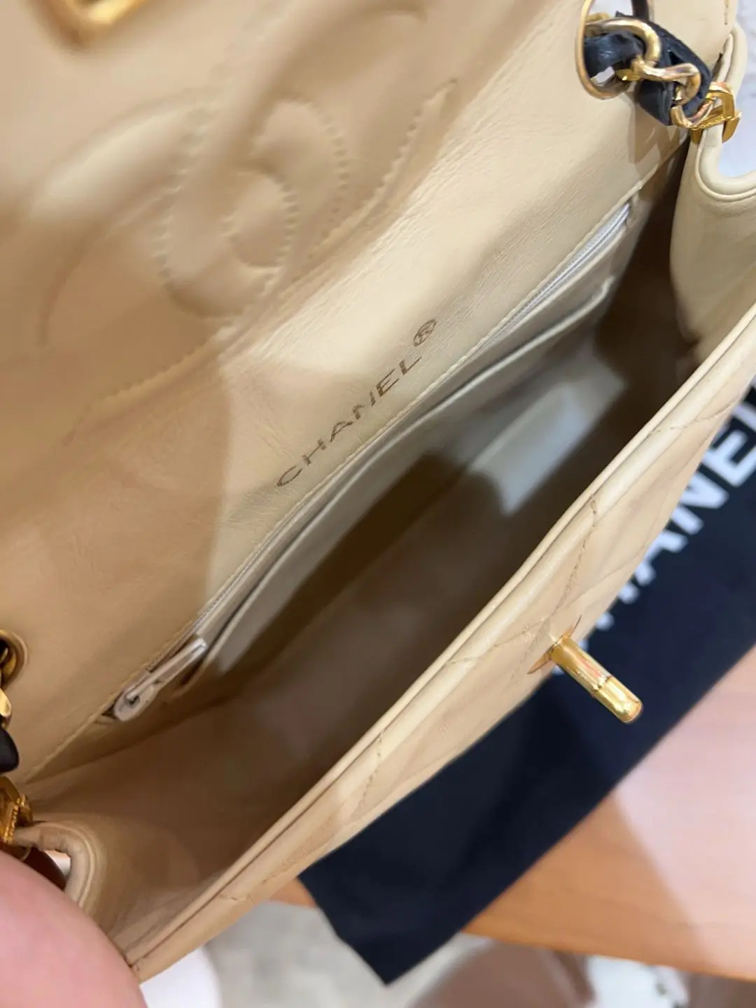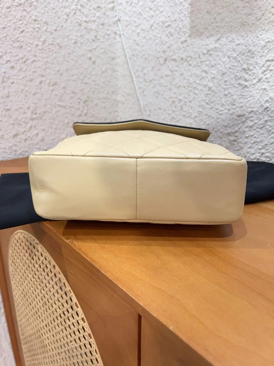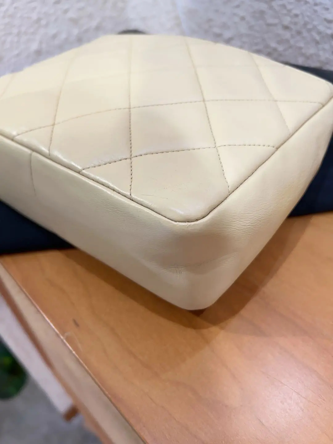 正品二手 Chanel 中古 方胖子 米白 棱格 羊皮 斜挎包😋95新 20*19 有镭射 配件:防尘袋。包身正常使用感。 复古感拉满