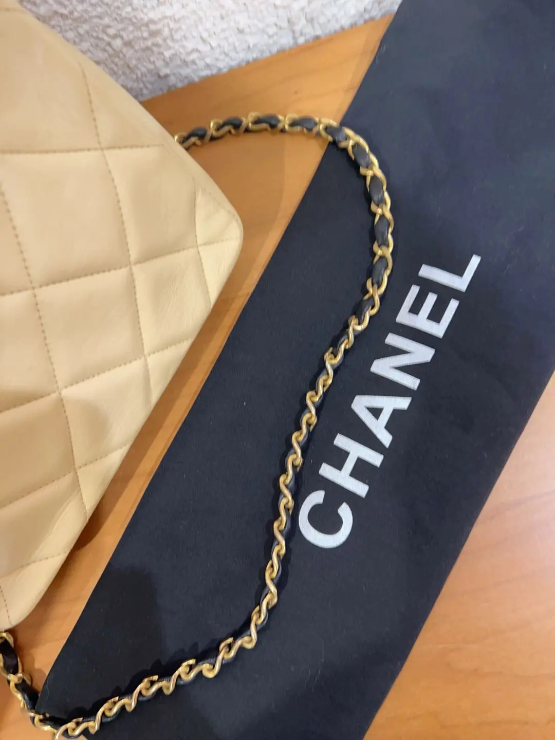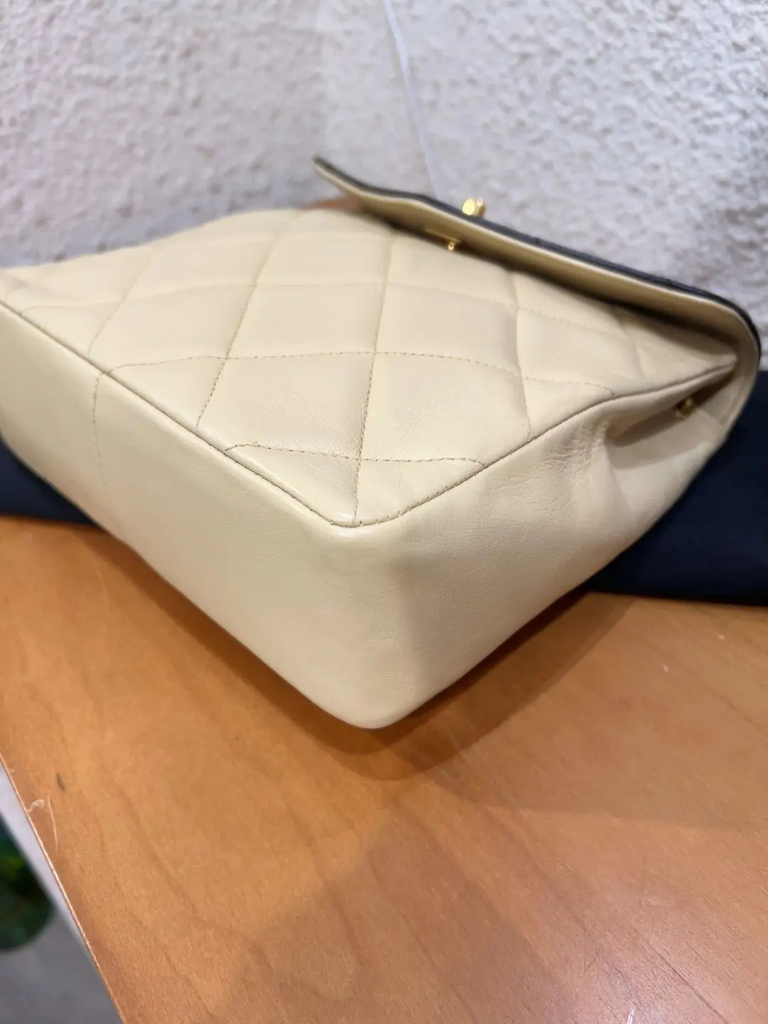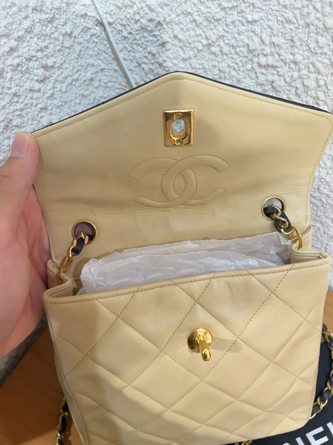 正品二手 Chanel 中古 方胖子 米白 棱格 羊皮 斜挎包😋95新 20*19 有镭射 配件:防尘袋。包身正常使用感。 复古感拉满