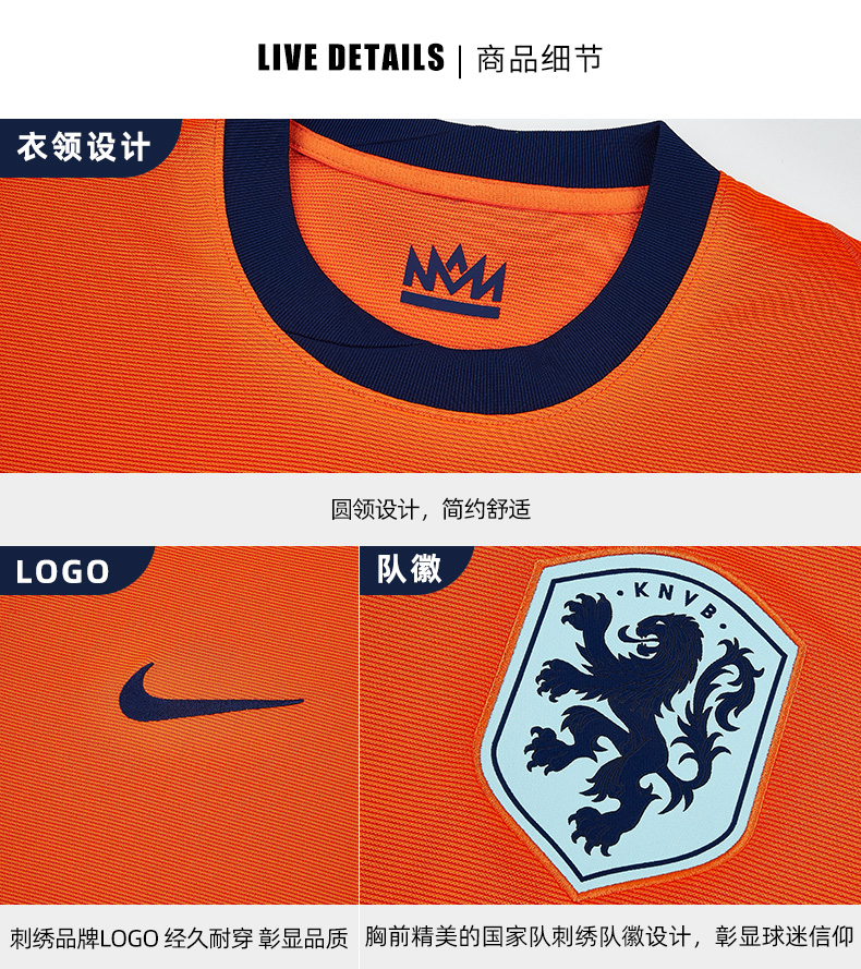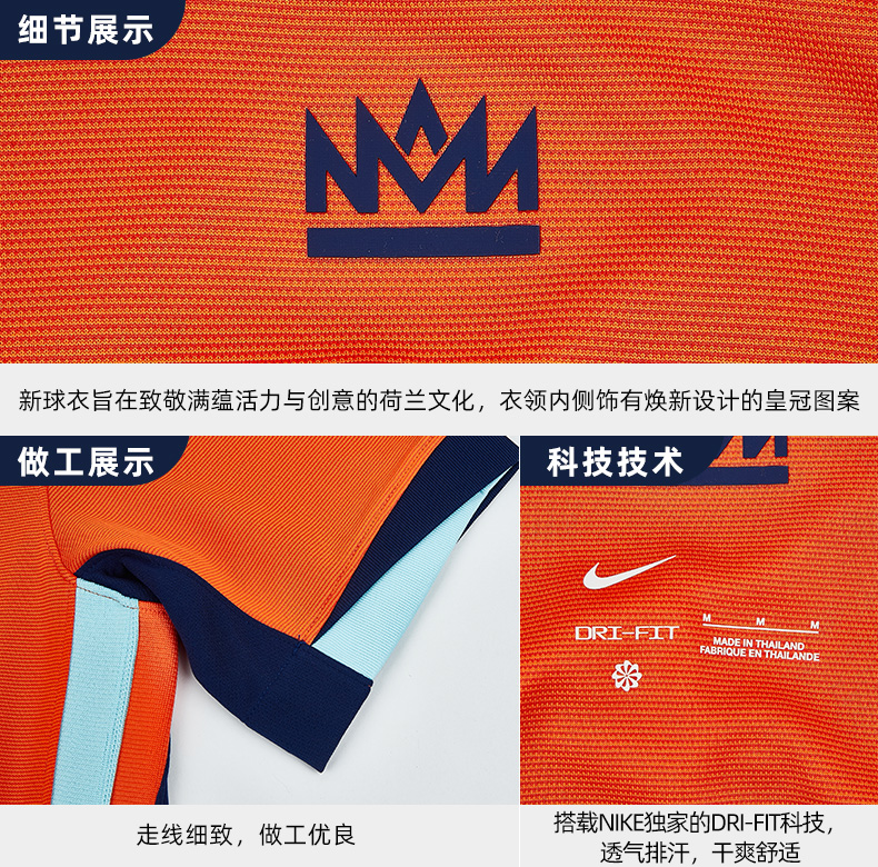 【连印号臂章】SFS正品 Nike耐克2024欧洲杯荷兰主场球迷版球衣 FJ4276-819