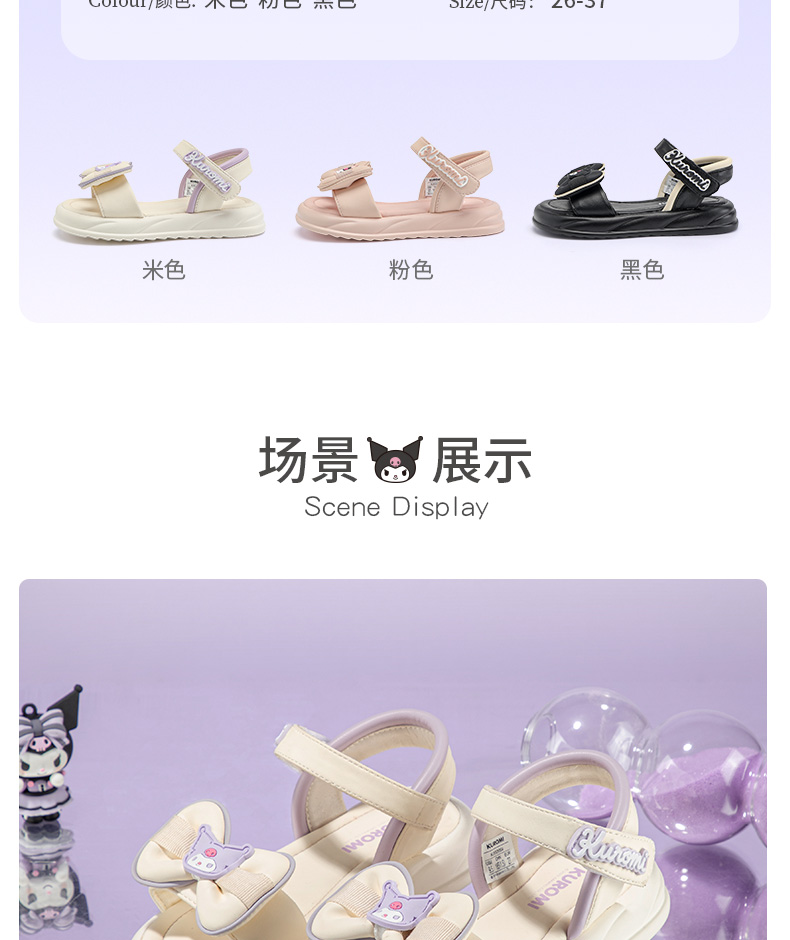hellokitty库洛米童鞋女童凉鞋儿童夏季公主鞋女孩露趾鞋26-37 KU5526864