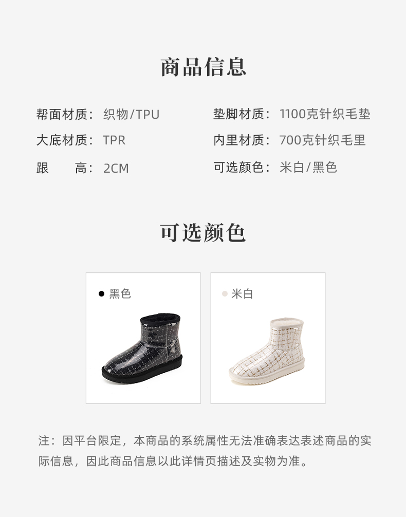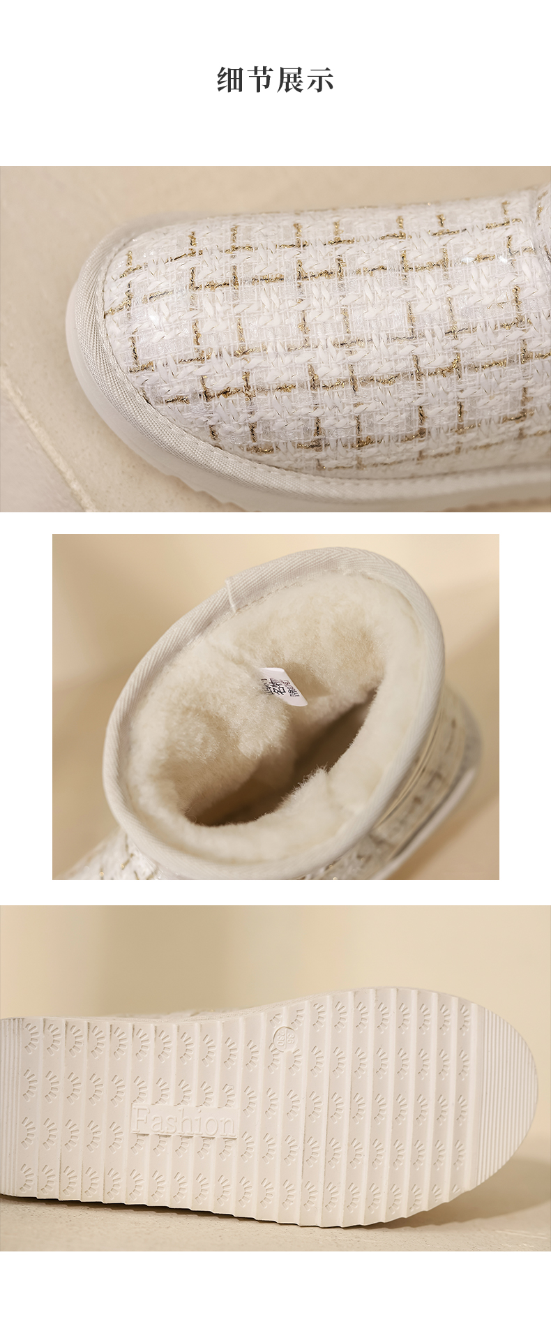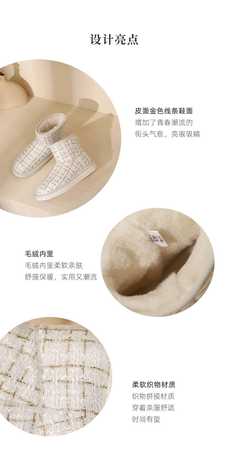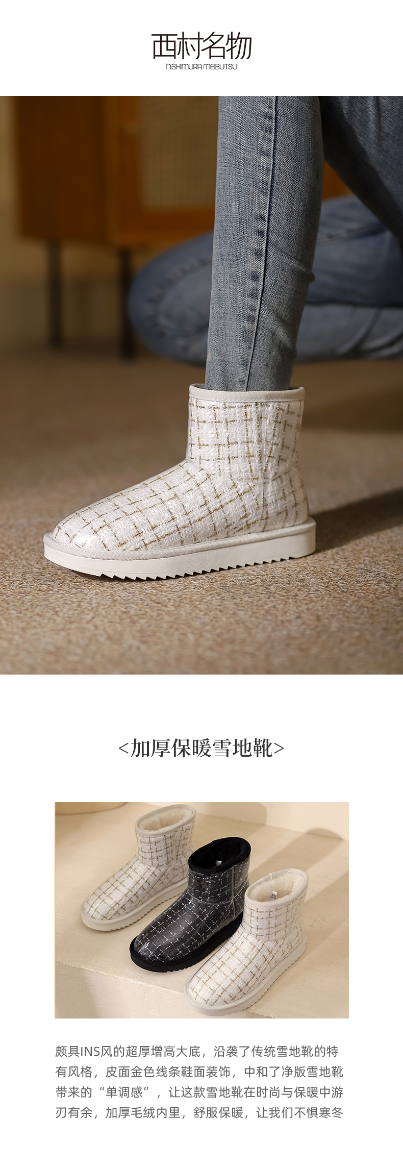 西村名物2021冬季新款网红白色雪地靴女亮面小香风加绒短靴T21DS45041