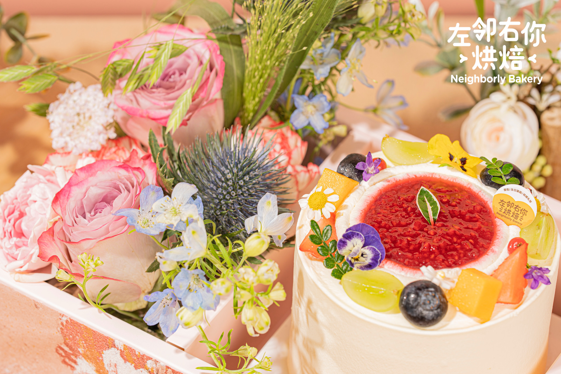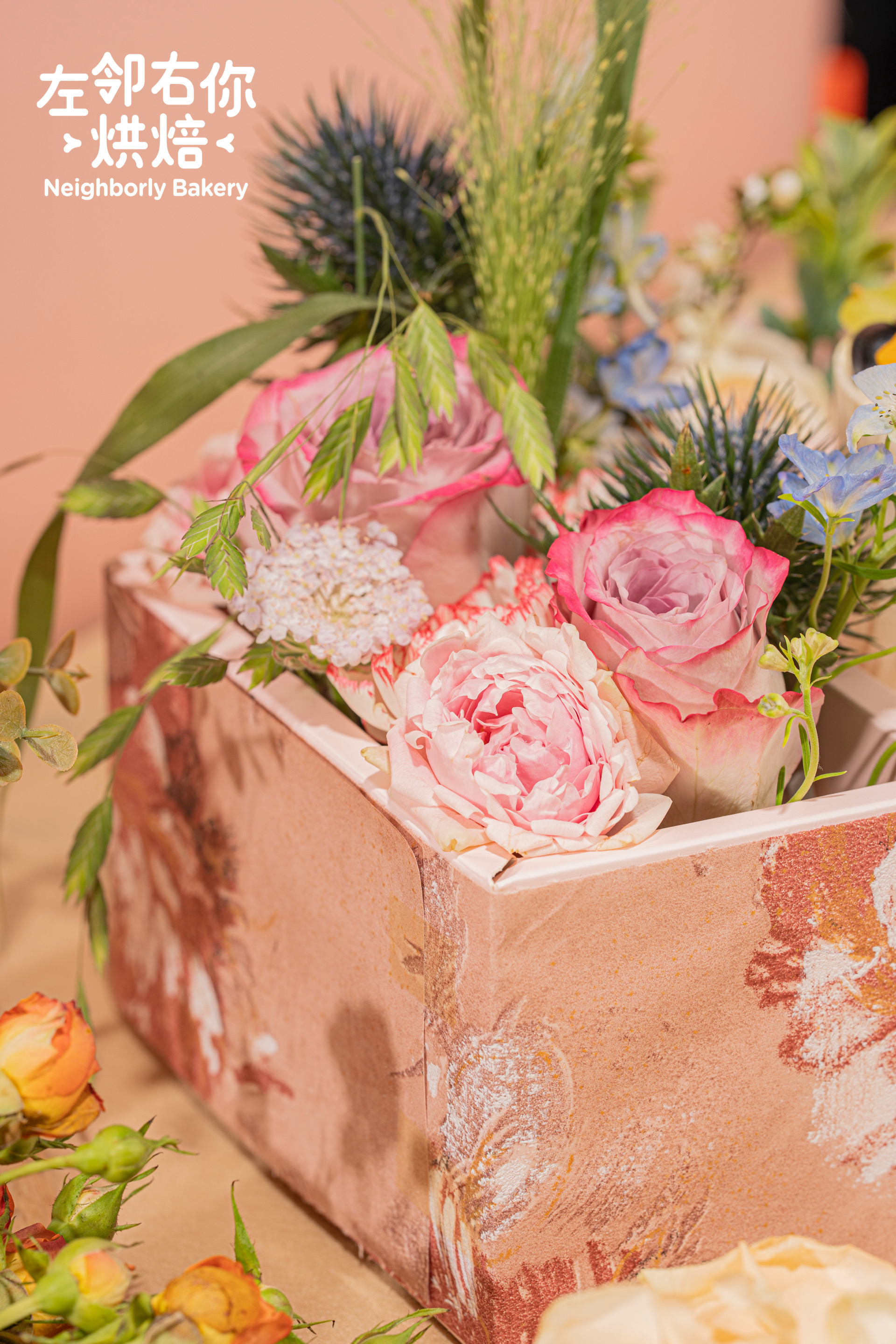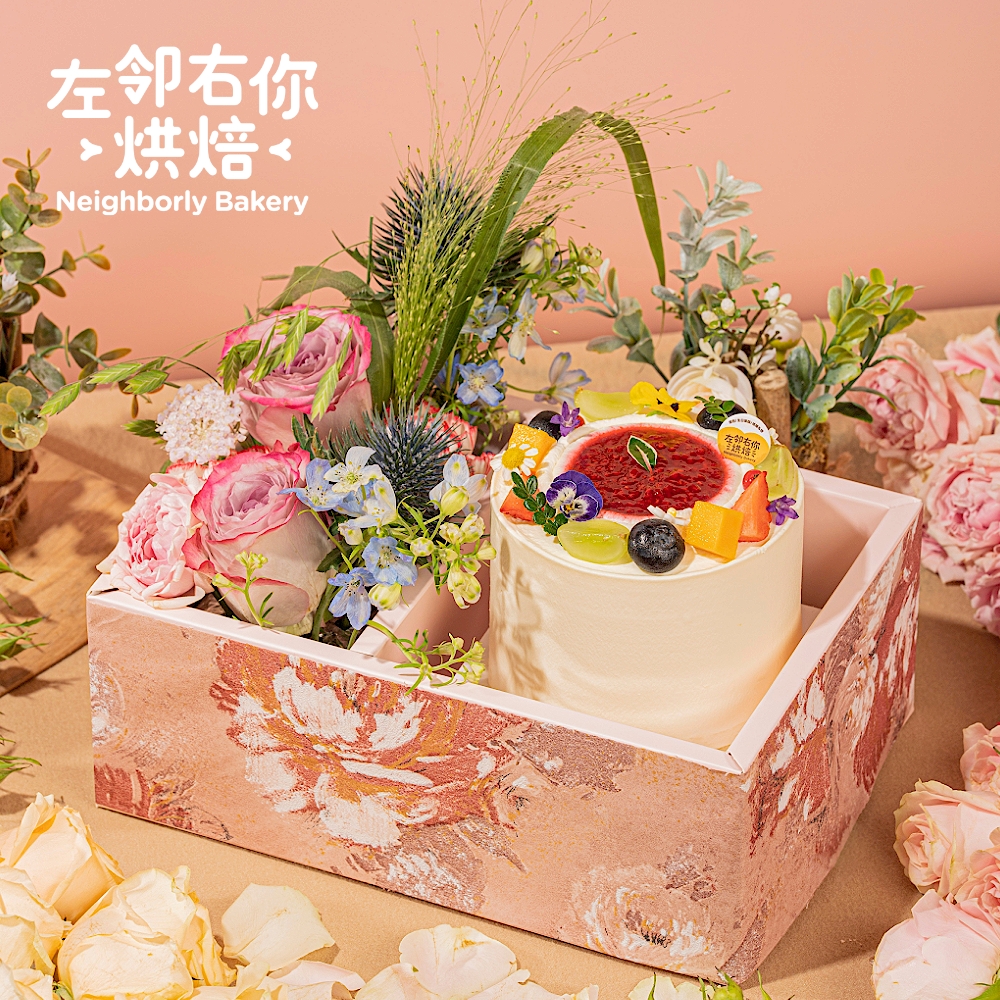 鲜花和蛋糕会隔开包装,不必担心鲜花扎染到蛋糕本身