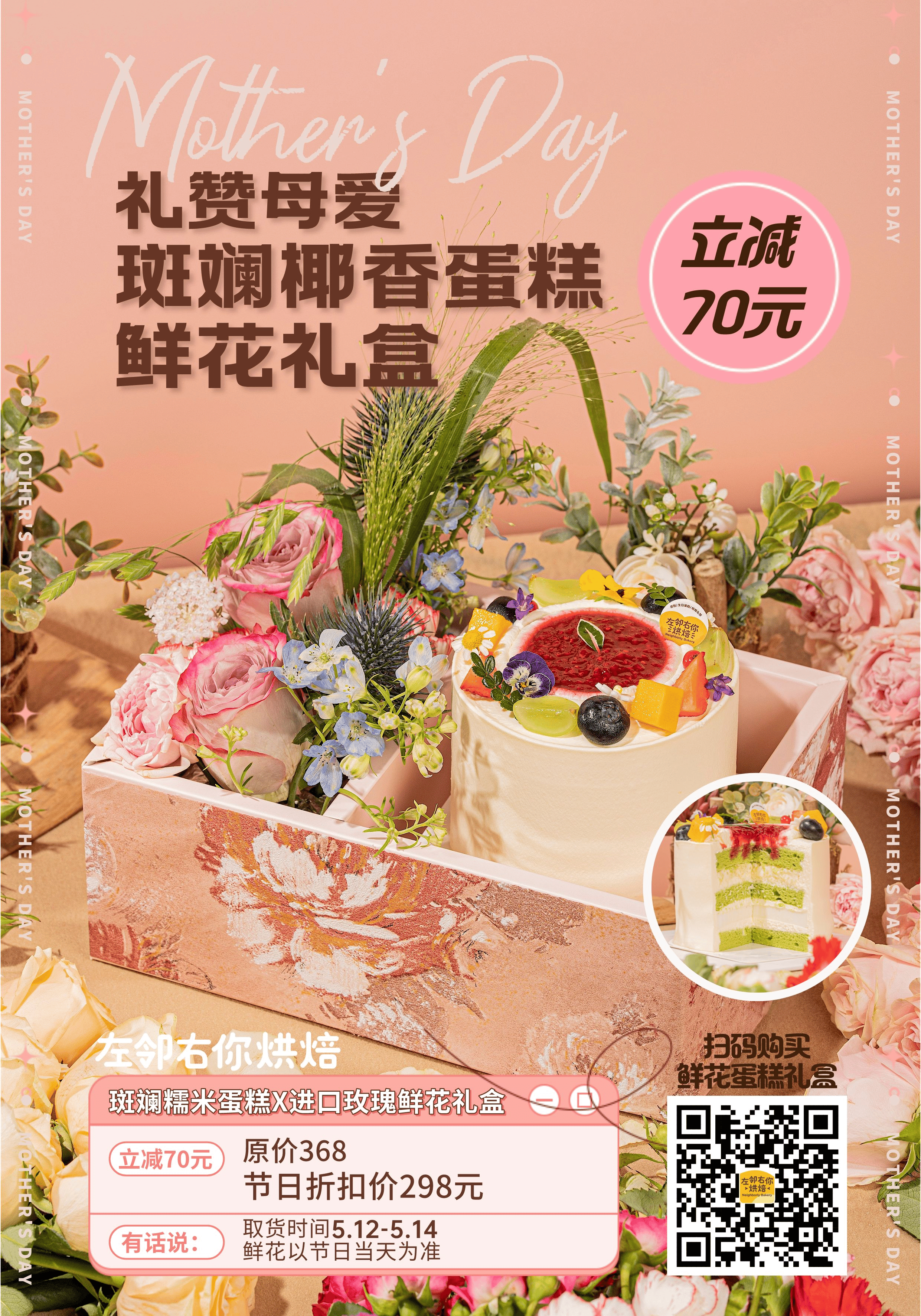 【下架勿动】母亲节鲜花与蛋糕礼盒 | 斑斓椰香糯米蛋糕 & 进口玫瑰鲜花礼盒 下架勿理