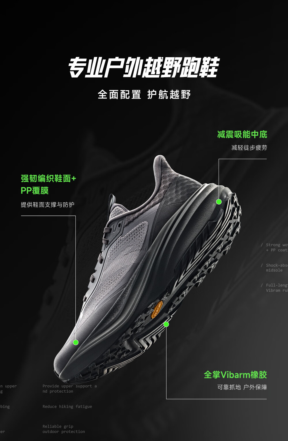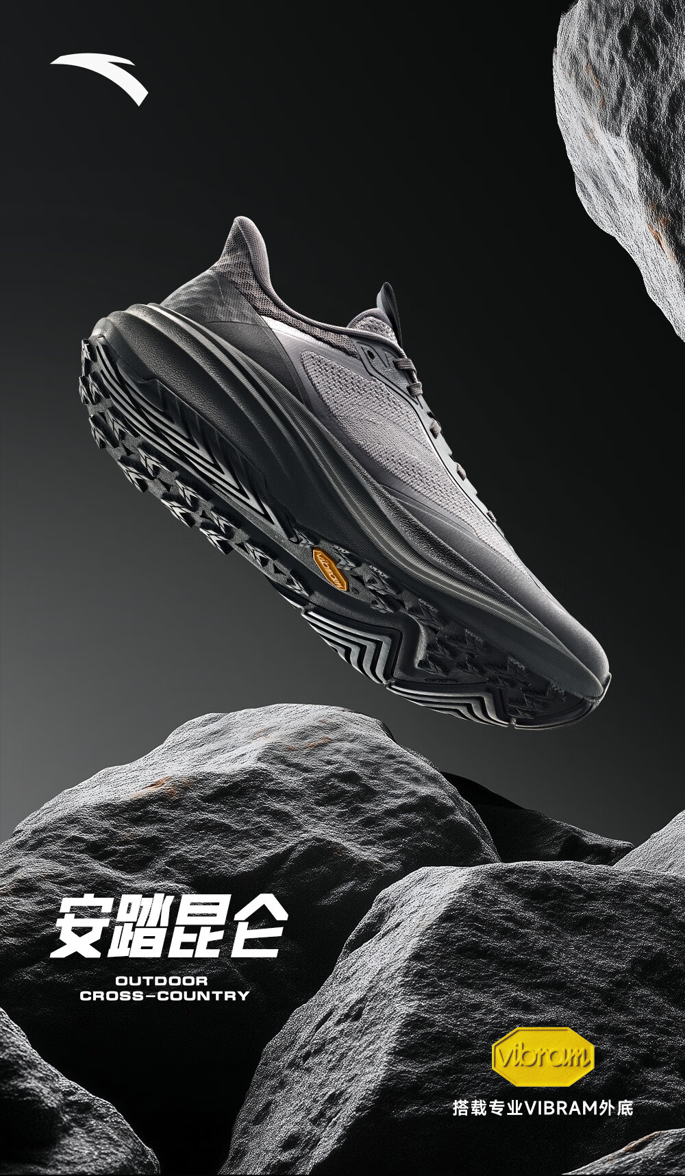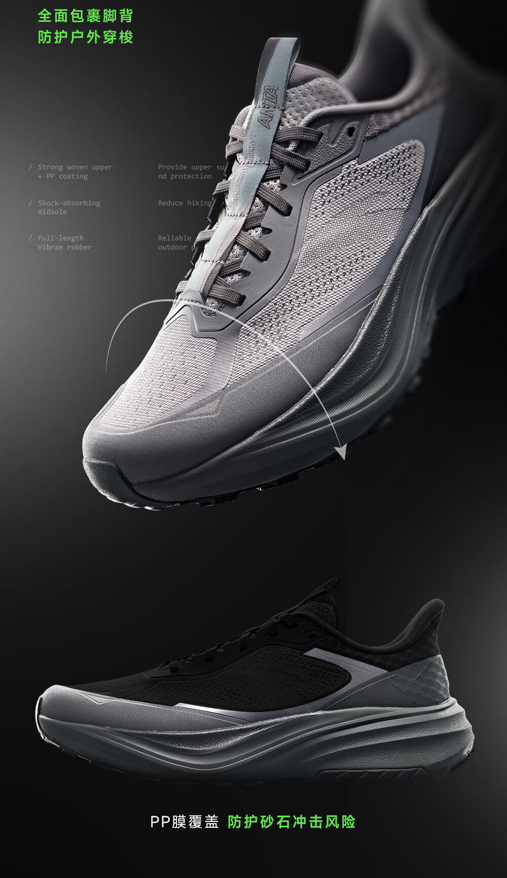 安踏昆仑丨户外越野跑鞋男士徒步登山抓地防护运动鞋112535590-1