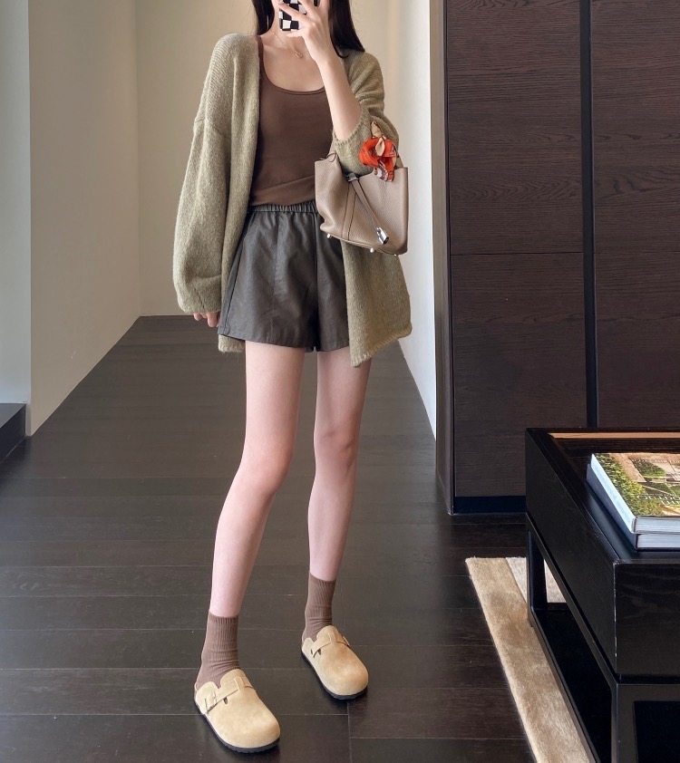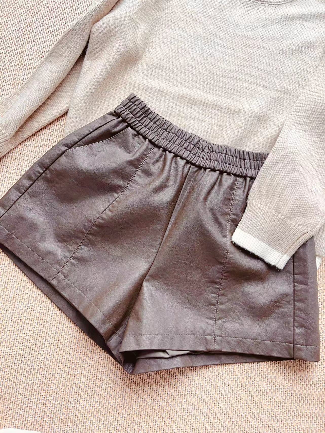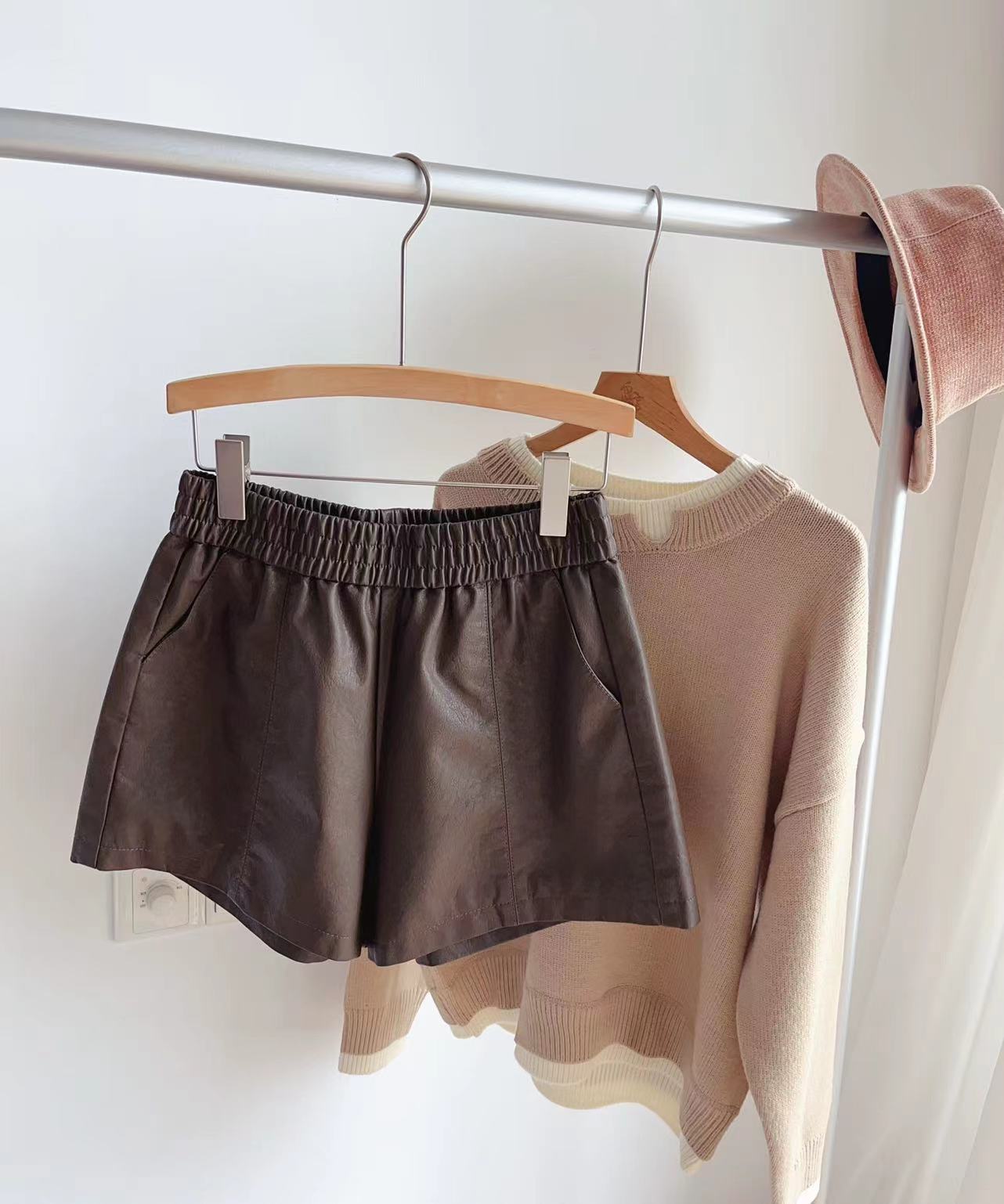 老米优品/无论美式复古文艺穿搭都少不了宝藏单品!《复古柔软皮短裤》🍂松紧腰不挑身材,全内衬,好品质!K230921A