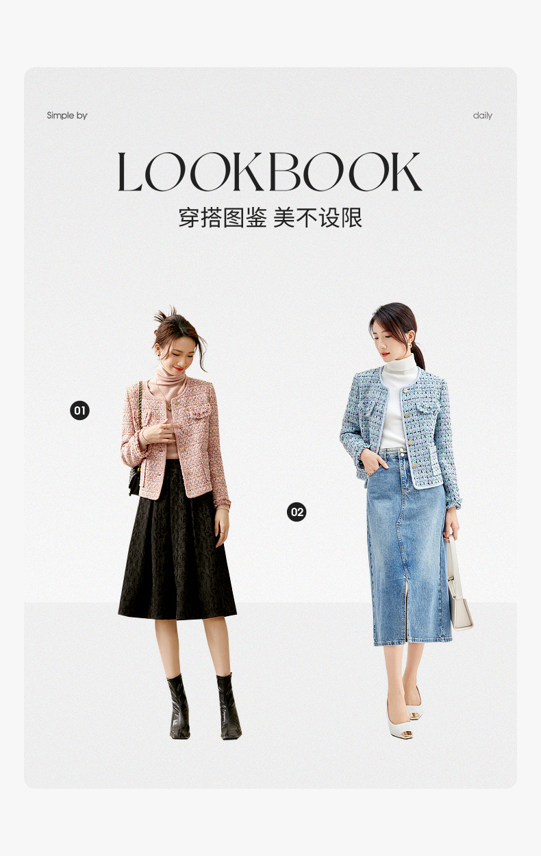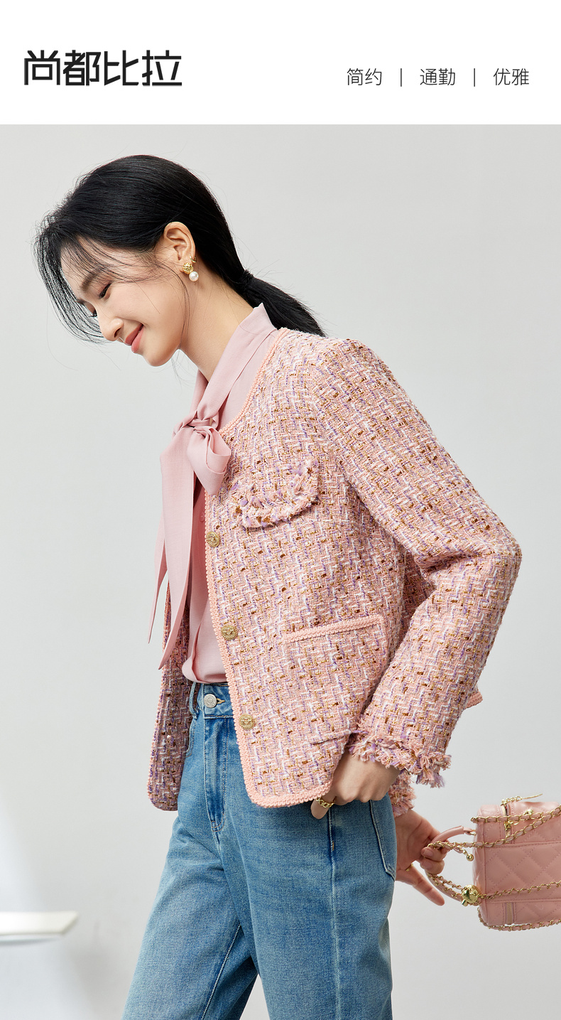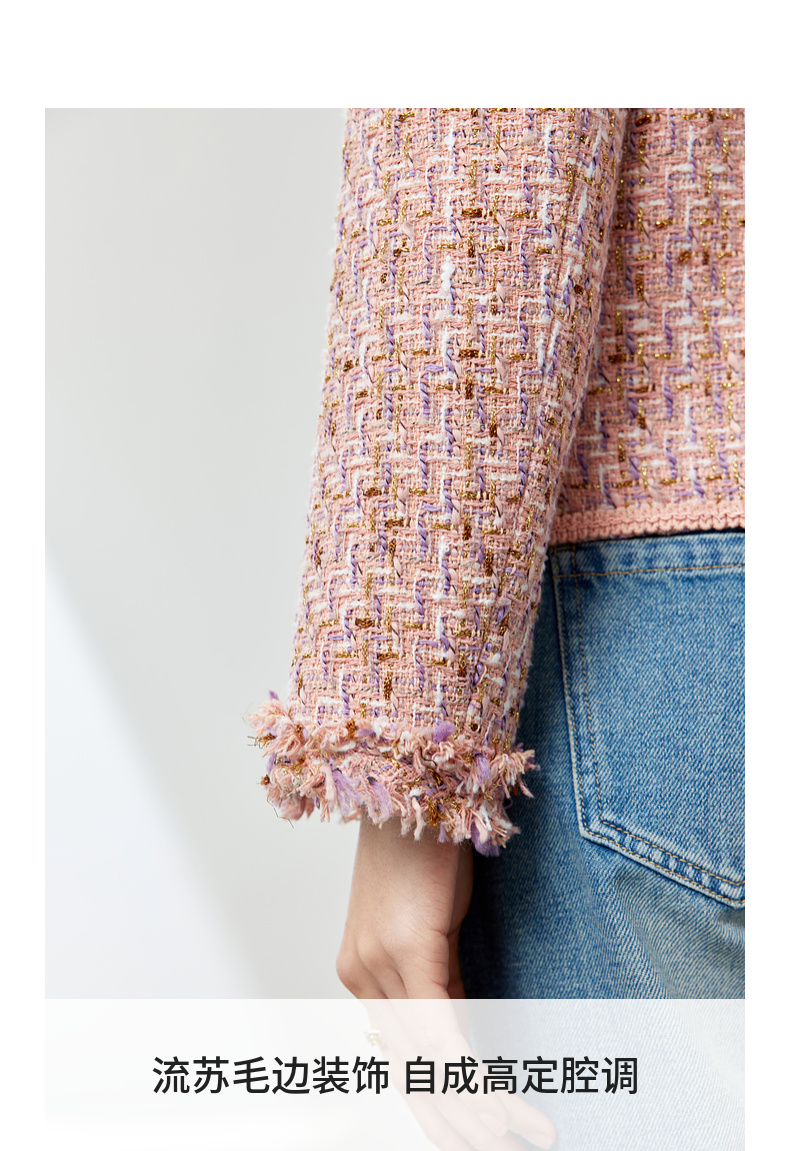 【内购】时尚优雅金属扣小个子休闲真口袋上衣编织棉料小香风外套-153WA3218X