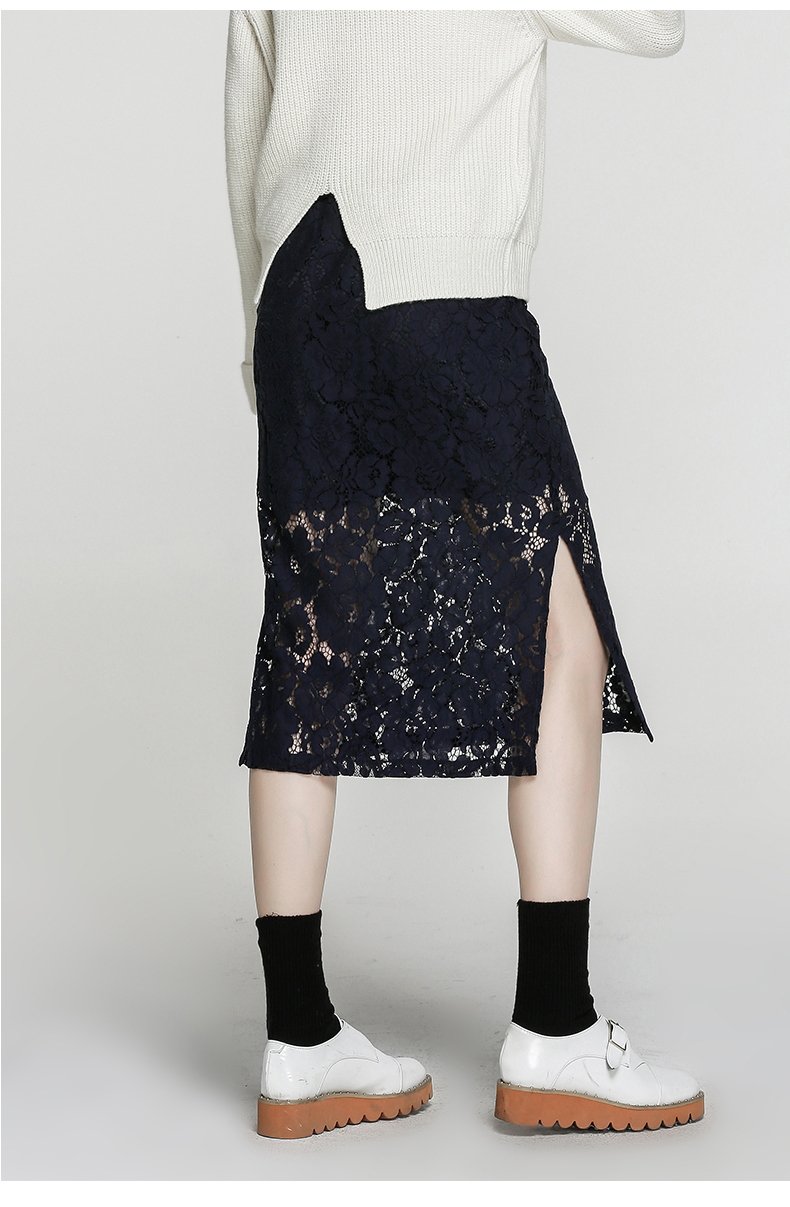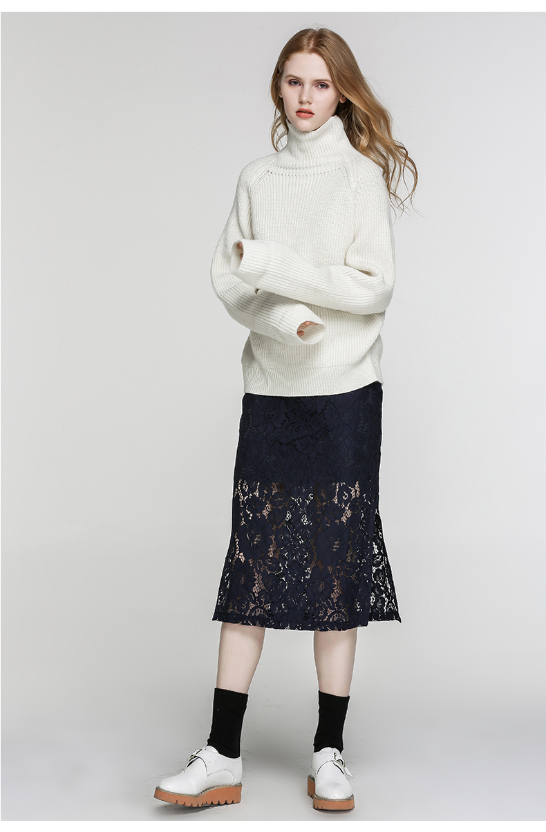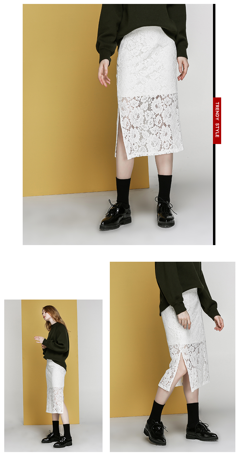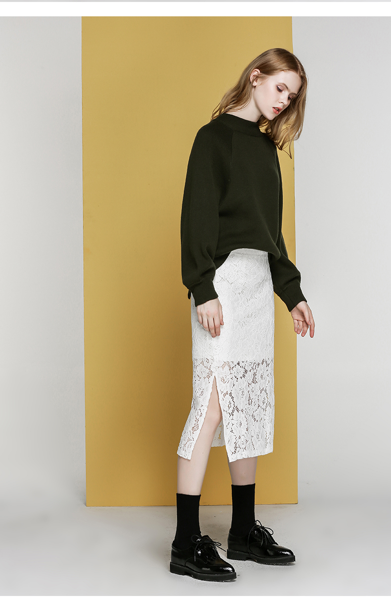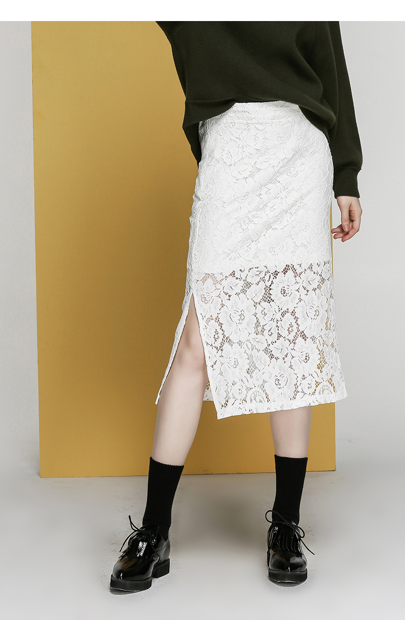 NEELLY纳俪冬装新款中长款女裙显瘦防走光水溶蕾丝包臀半身裙