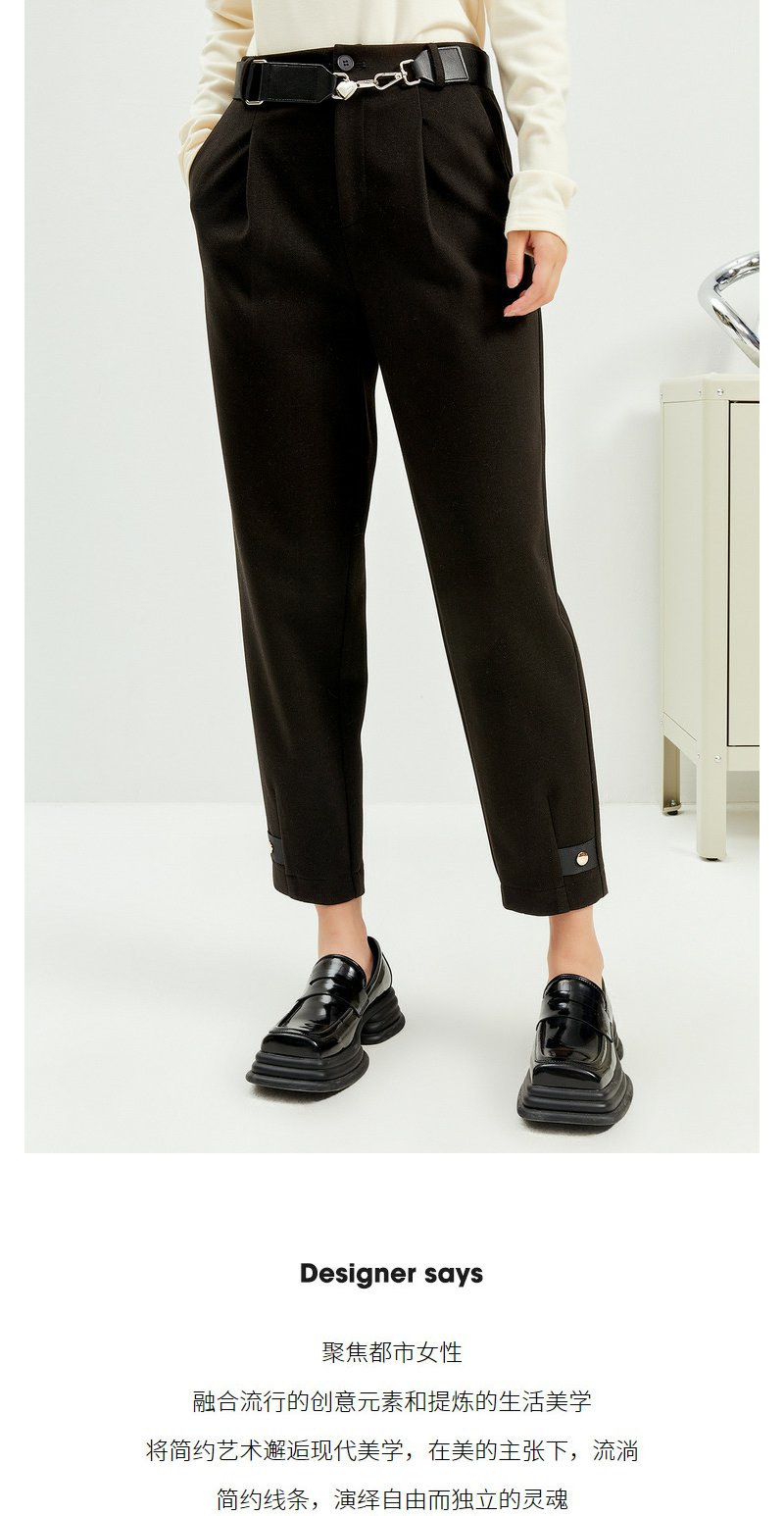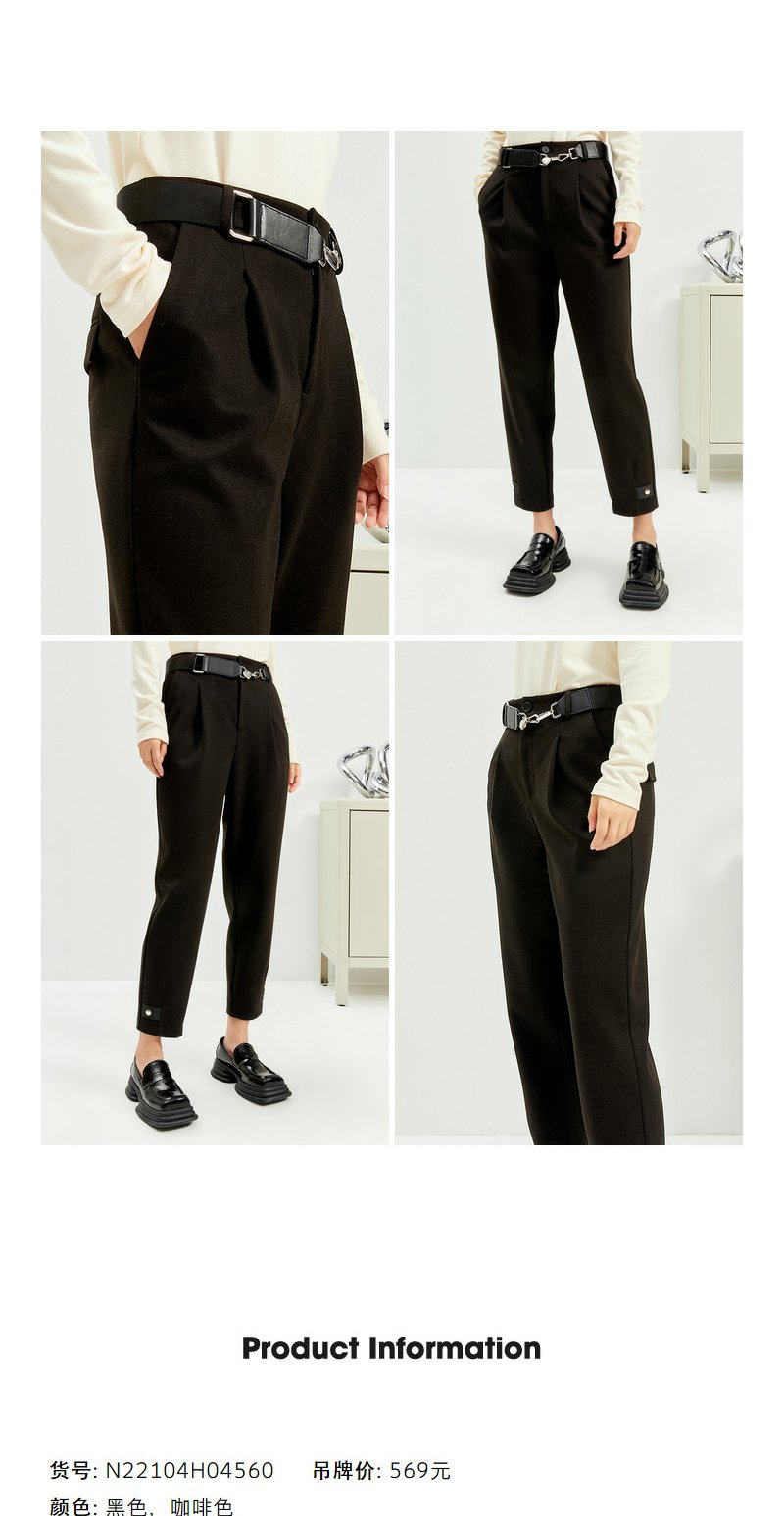 NEELLY纳俪商场同款西装裤女秋冬季可脱卸腰带休闲裤宽松显瘦长裤N22104H04560