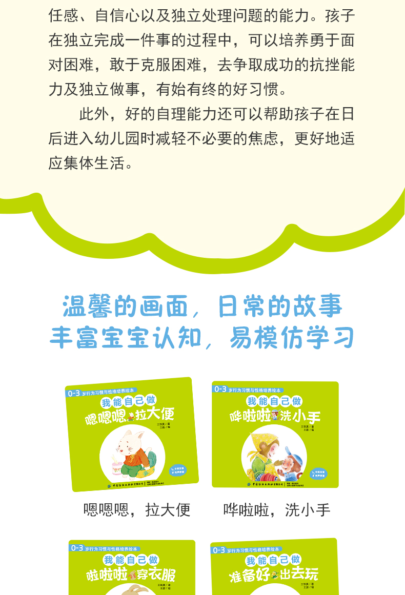 0-3岁行为习惯与性格培养绘本 我能自己做全4册宝宝0-3岁行为习惯教养绘本幼儿园小班启蒙早教书籍培养独立自主幼儿情商与性格培养