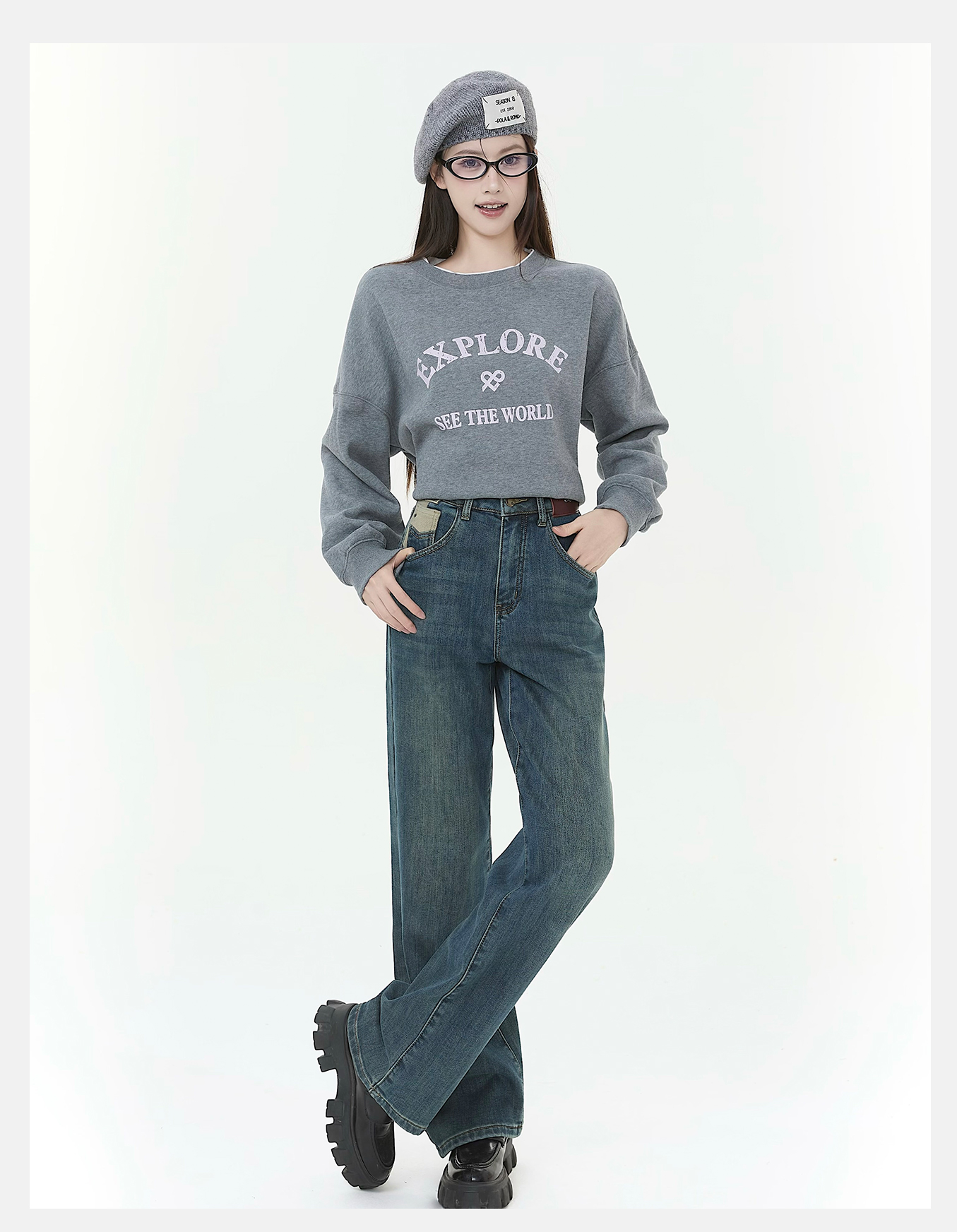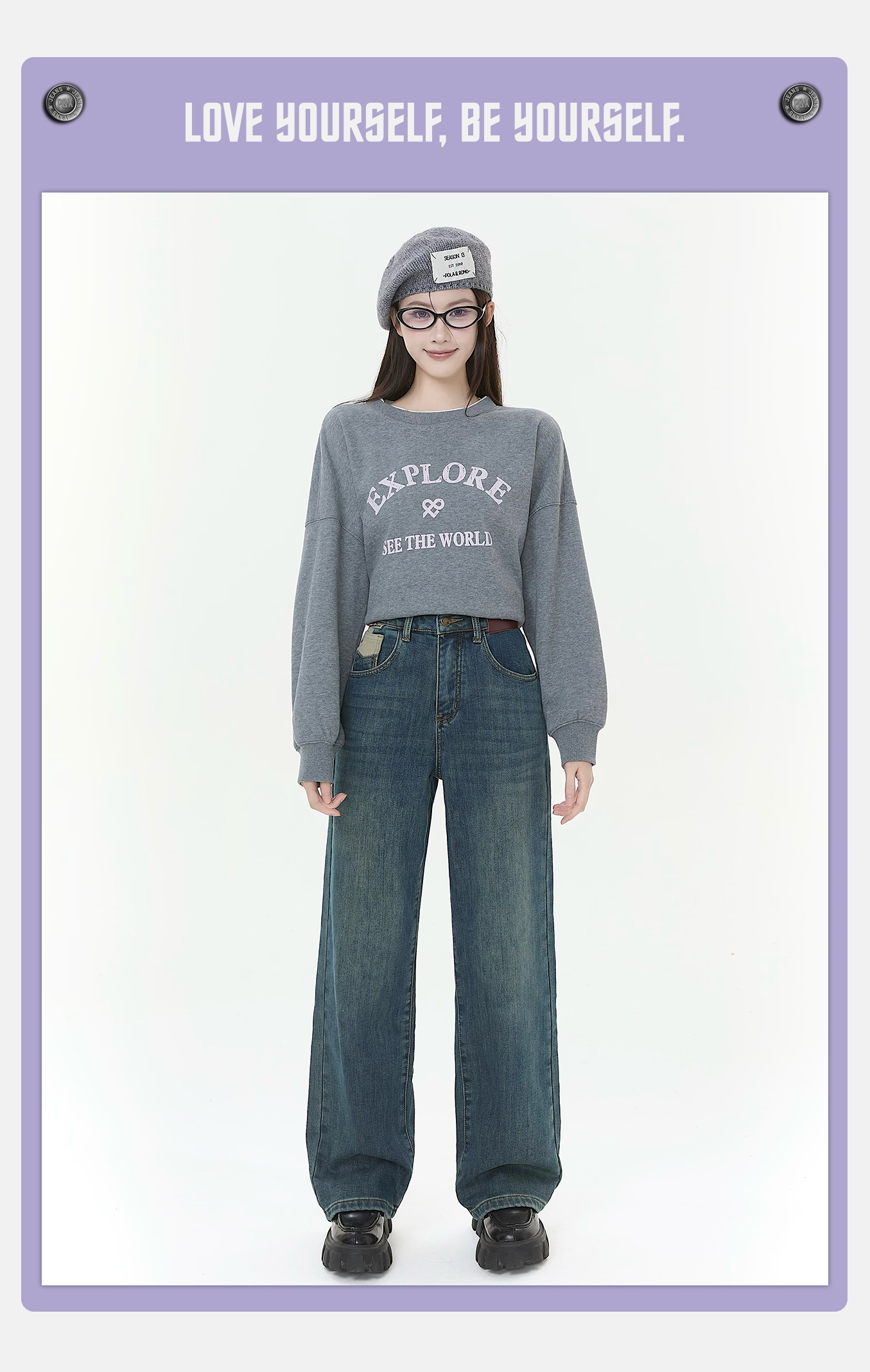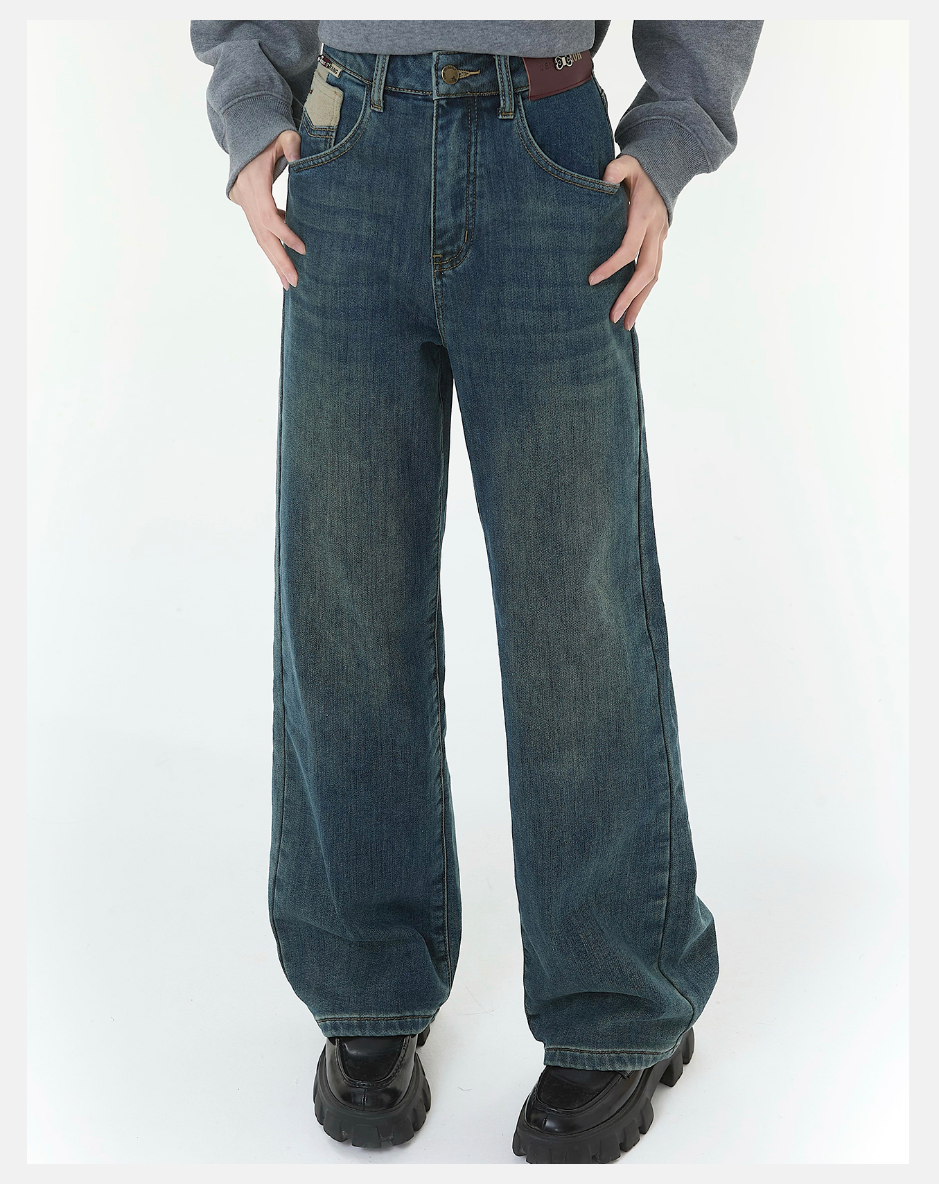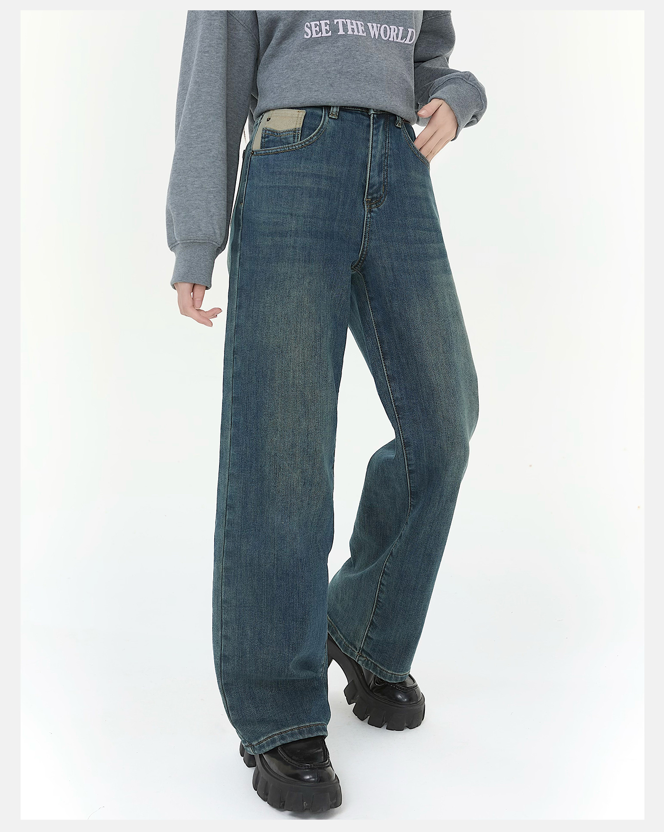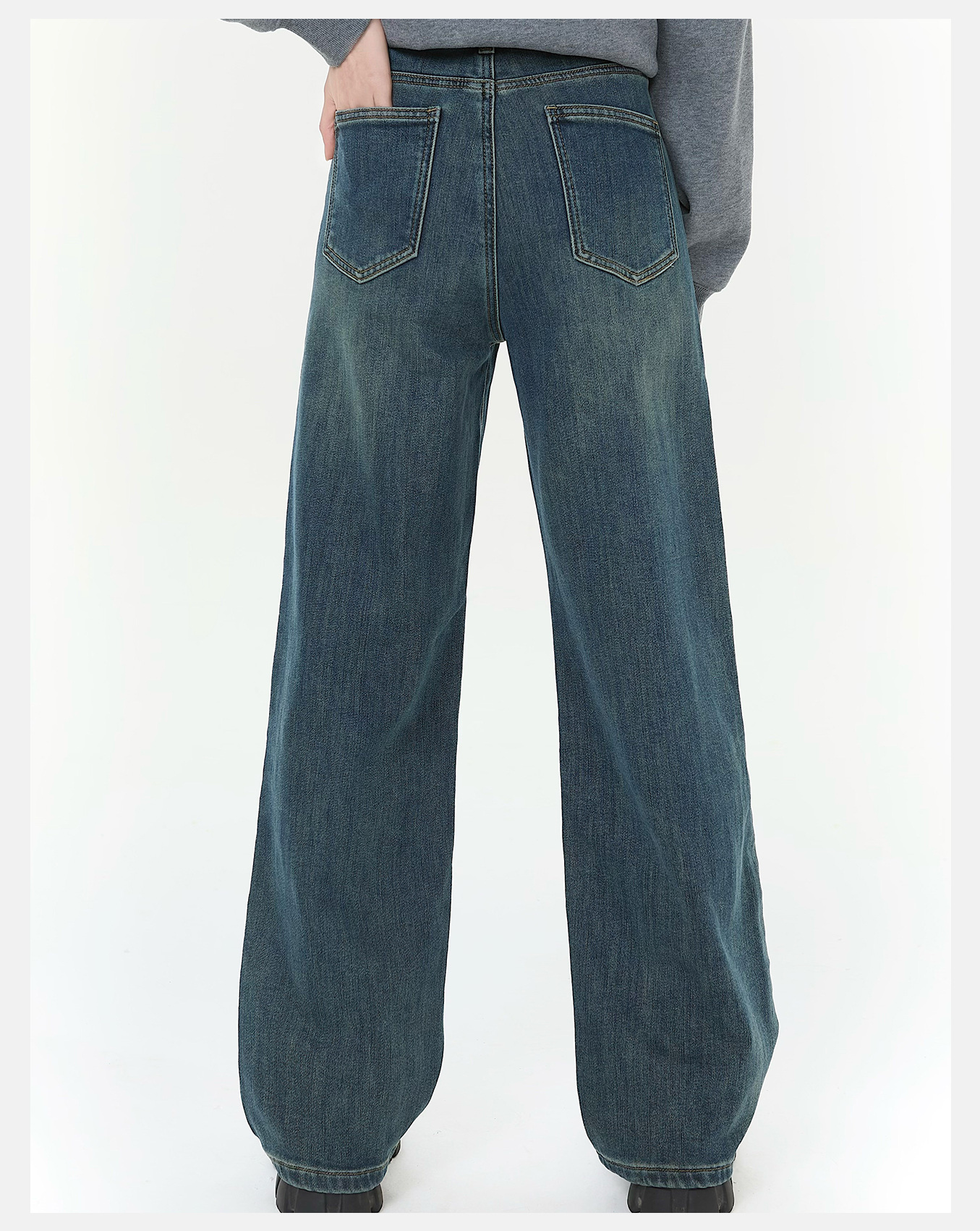 P&X设计师女装2025冬季阔腿裤高腰休闲牛仔长裤825410177 蓝色