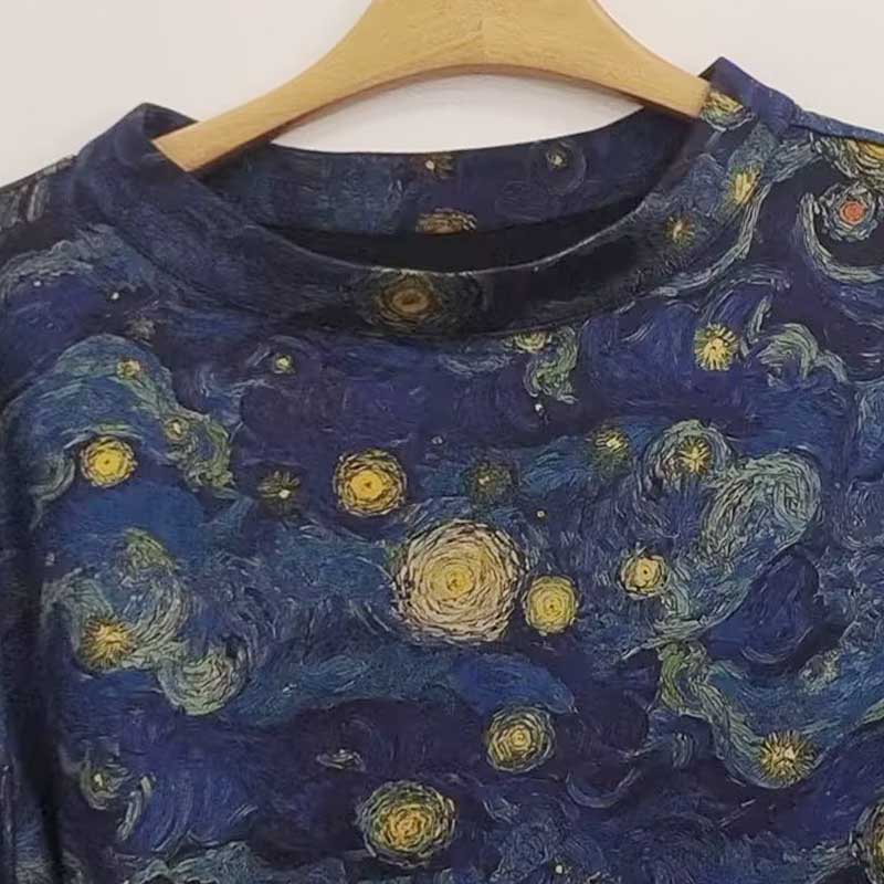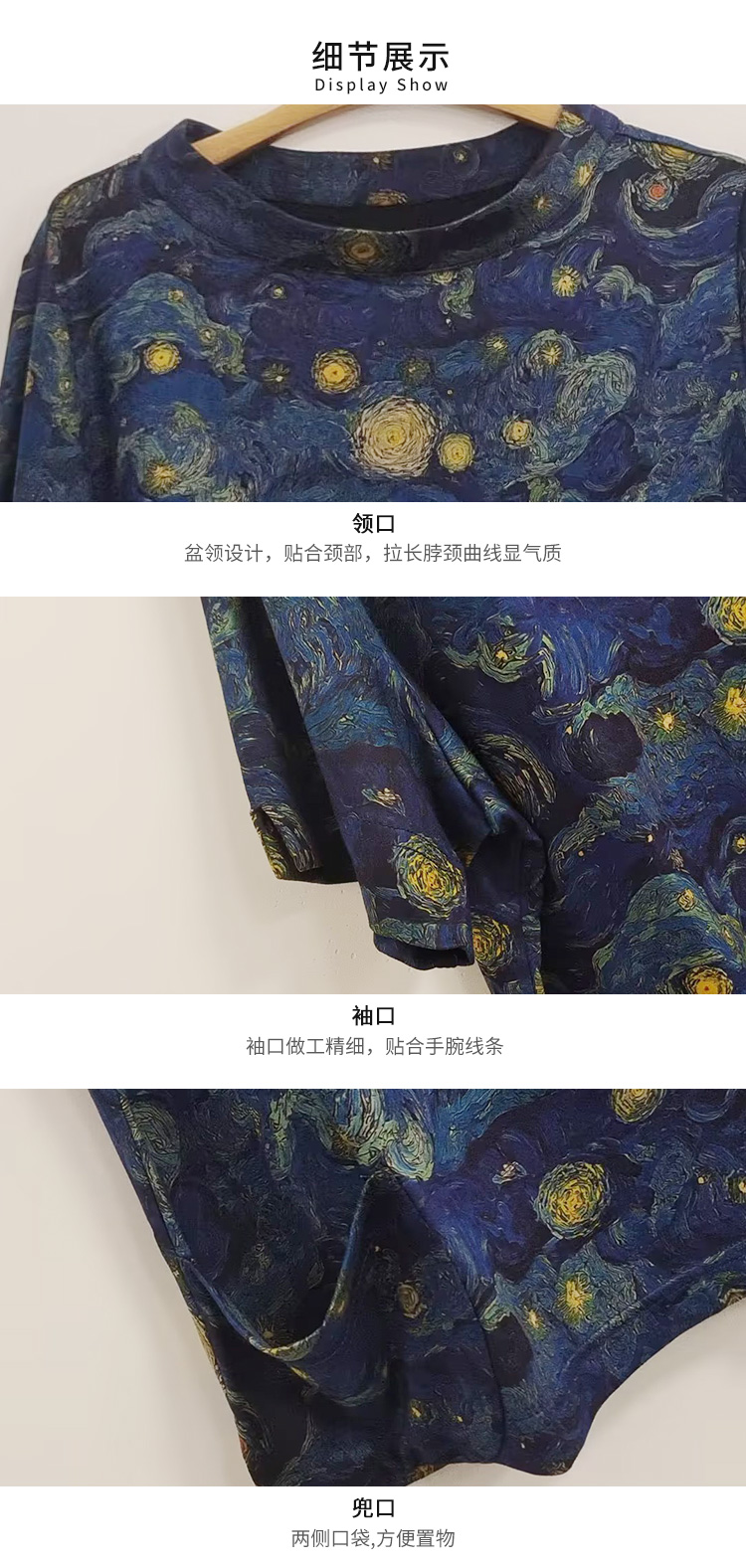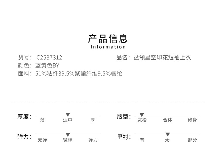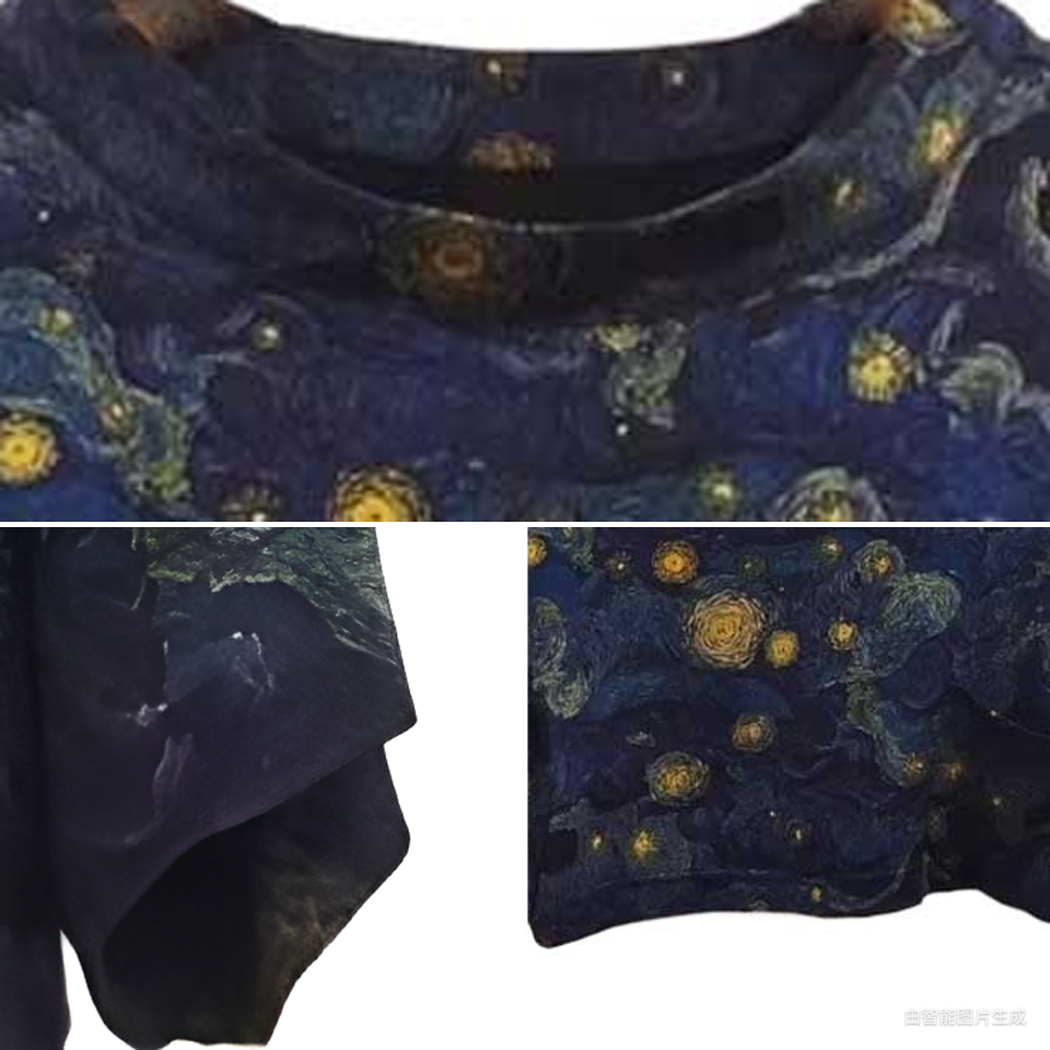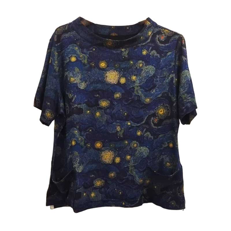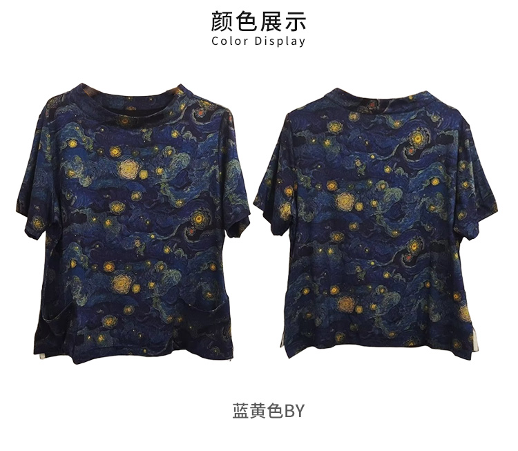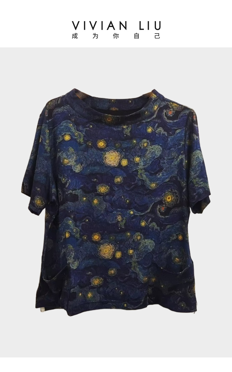 VIVIAN LIU薇薇安刘C2537312 夏女装盆领下摆侧开叉星空印花上衣