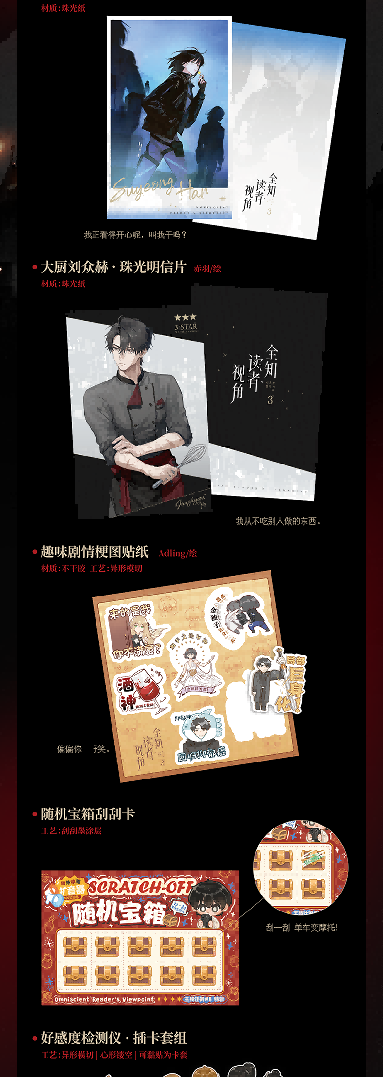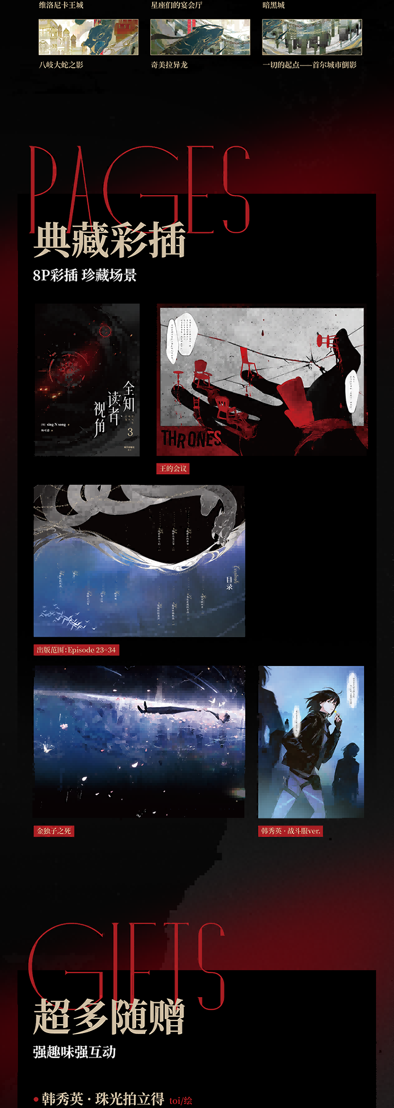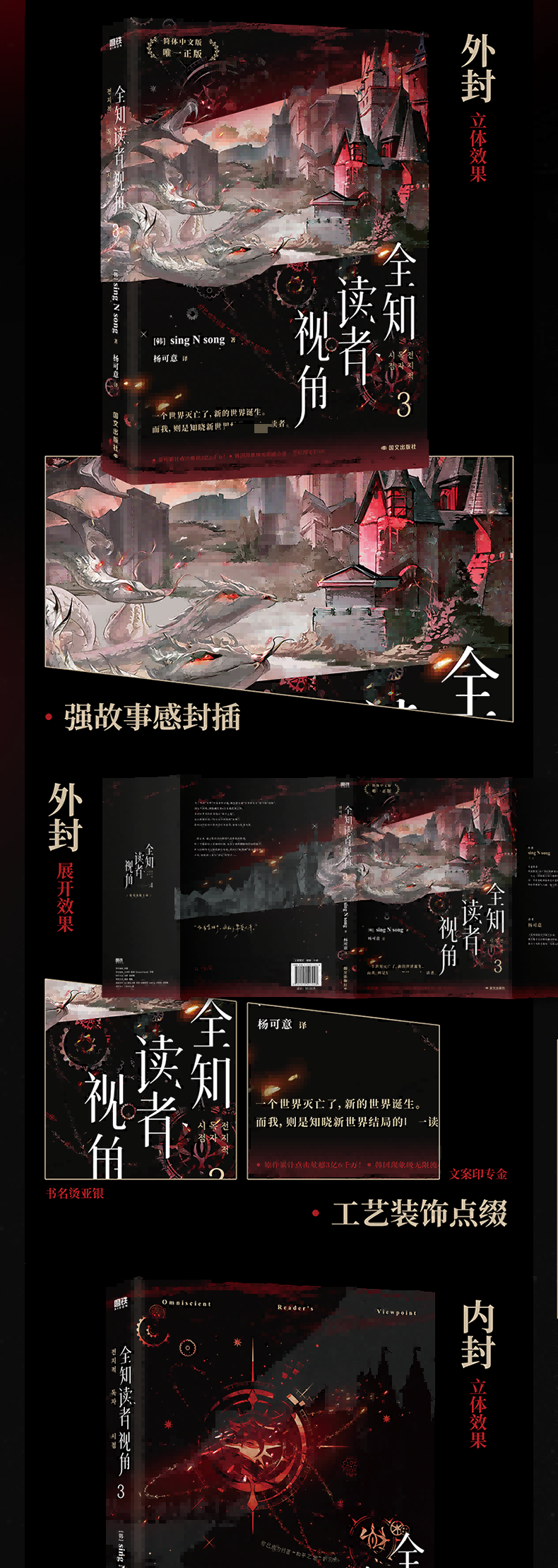 "★ 末世+悬疑+无限流——韩国现象级国民小说、奇幻网文 TOP!简体中文出版独家授权! ★ 原作累计点击量超3亿6千万!简体中文版实体书前两册累计发行量超20万!! ★ 300亿韩元投资,《与神同行》制片方Realize Pictures制作,安孝燮、李敏镐、金智秀、NANA、蔡秀彬等出演——原作小说改编同名电影已杀青、待上映! ★ 改编同名漫画火热连载中、霸榜连载平台WEBTOON站内第一 ★ TV动画由日本动画制作公司""飞碟社/ufotable""制作,预计2025年上线! ★ 电视剧、游戏版权开发中 *** ★ 精心制作、内外双封:书名烫银+文案印金,双封纸张甄选高克重特种纸,质感细腻平滑。 ★ 随书附送多种典藏赠品:【趣味剧情贴纸】【韩秀英 · 拍立得】【随机宝箱刮刮卡】【大厨刘众赫 · 明信片】【好感度检测仪 · 插卡套组】【“和平之地”漫画单行本封面海报】【金独子与第四面墙 · QQ人折页】 ★ 内含2折拉页+8P典藏彩插,特约画师为故事名场面定制插图,精选铜版纸还原高清色彩;内文选用纸质柔韧细腻的印刷纸,到手质感高级。"