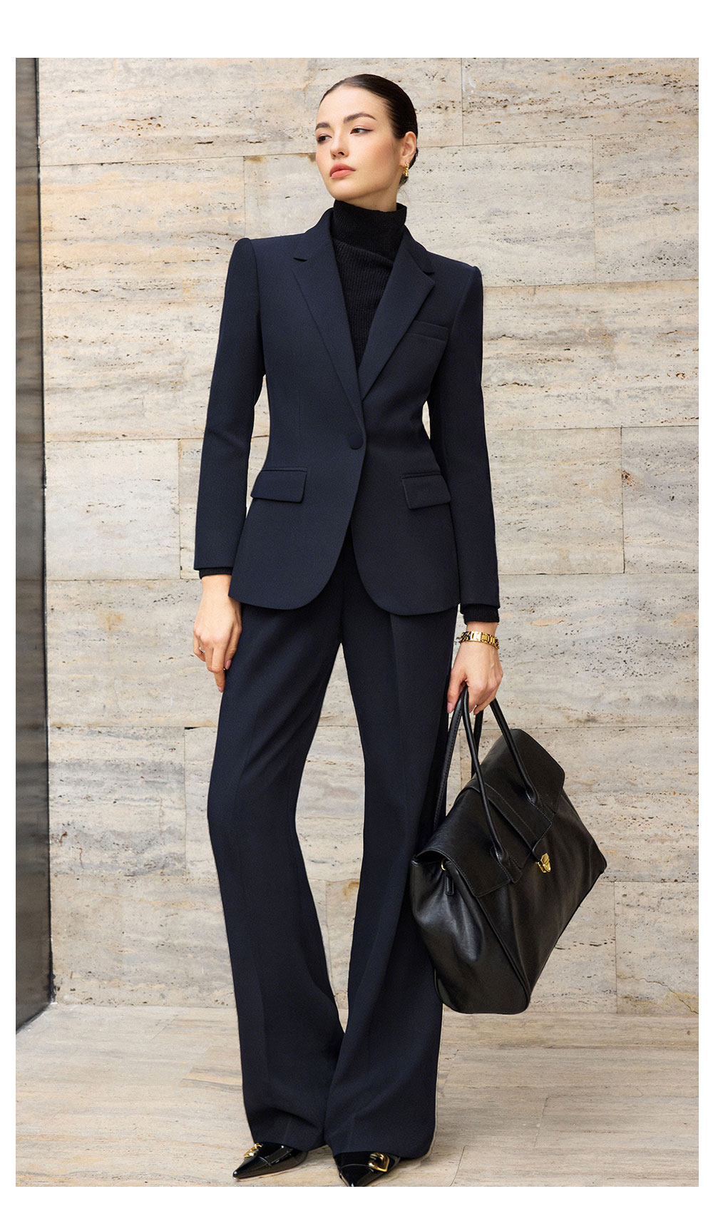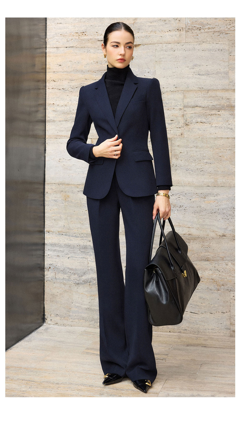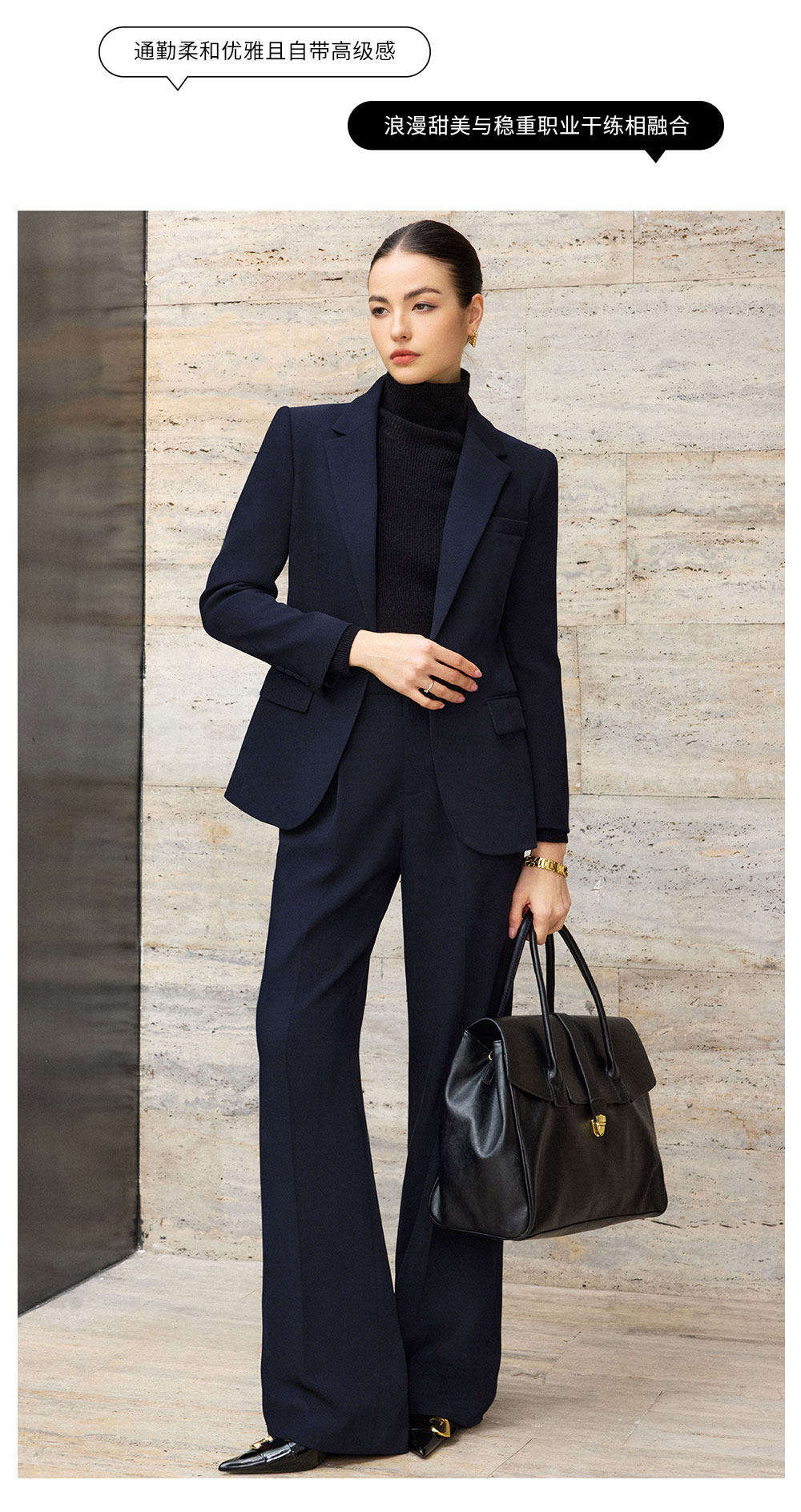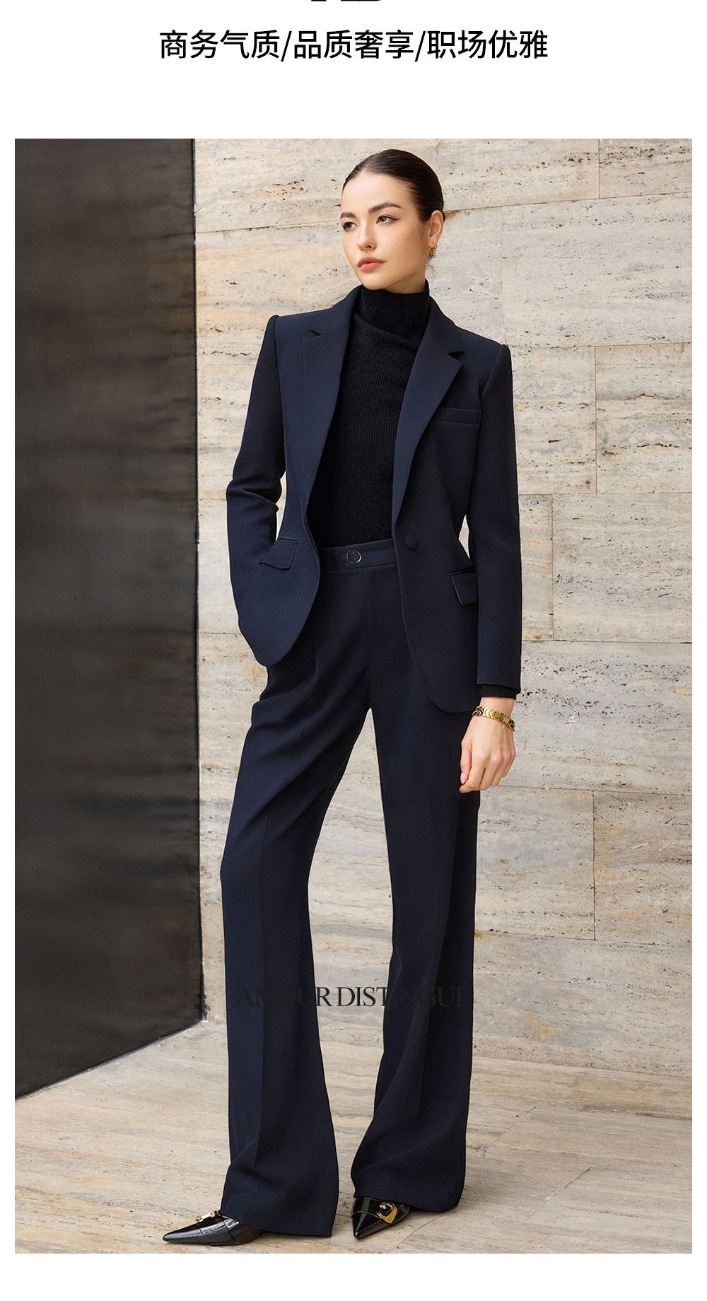 IWY/藏青色西装套装女新款商务阔腿裤两件套职场面试正装CP2761