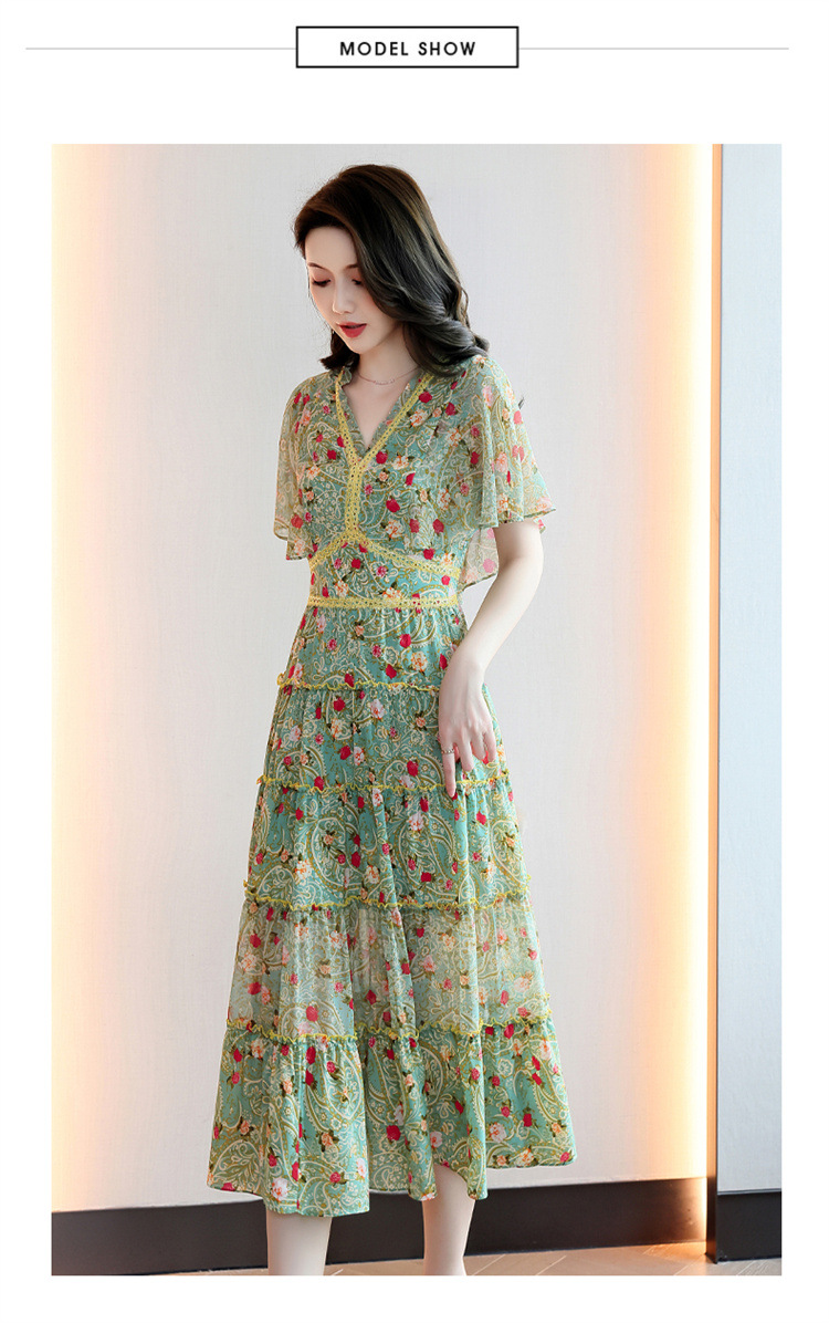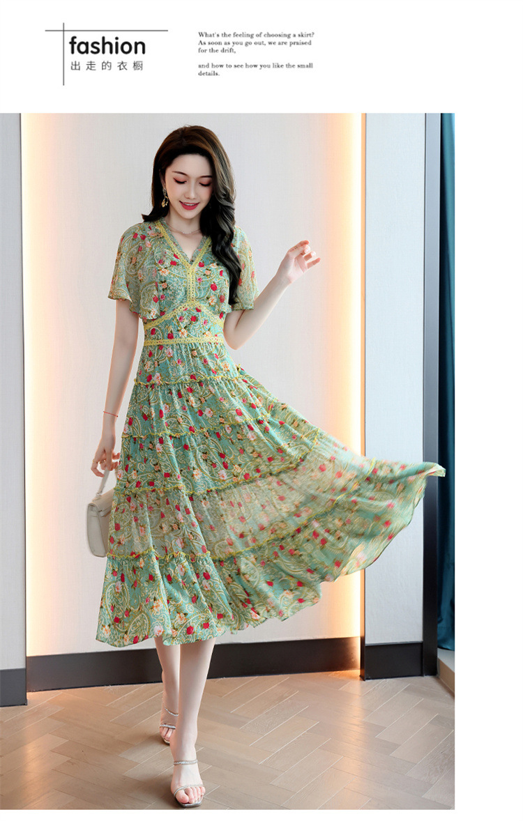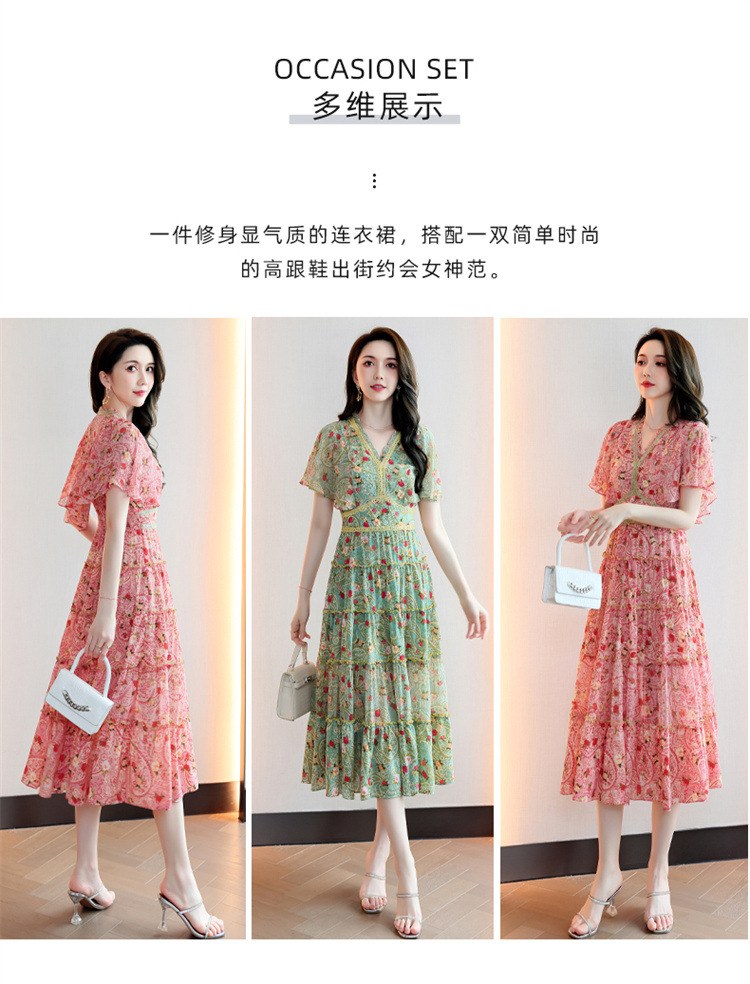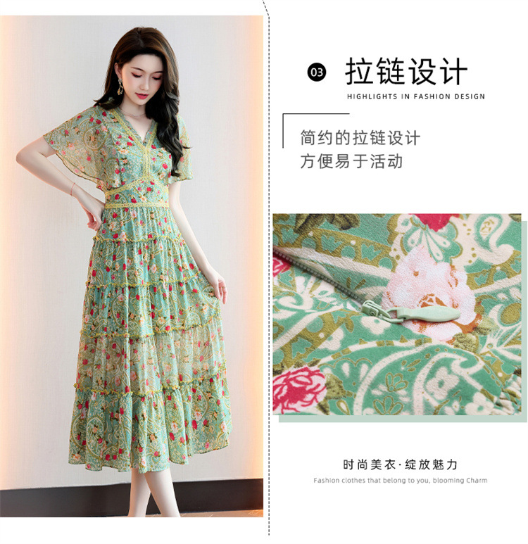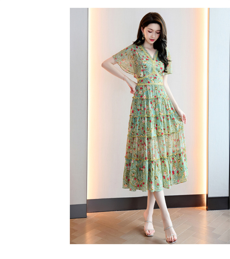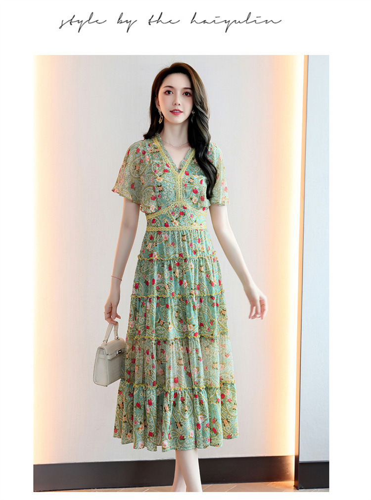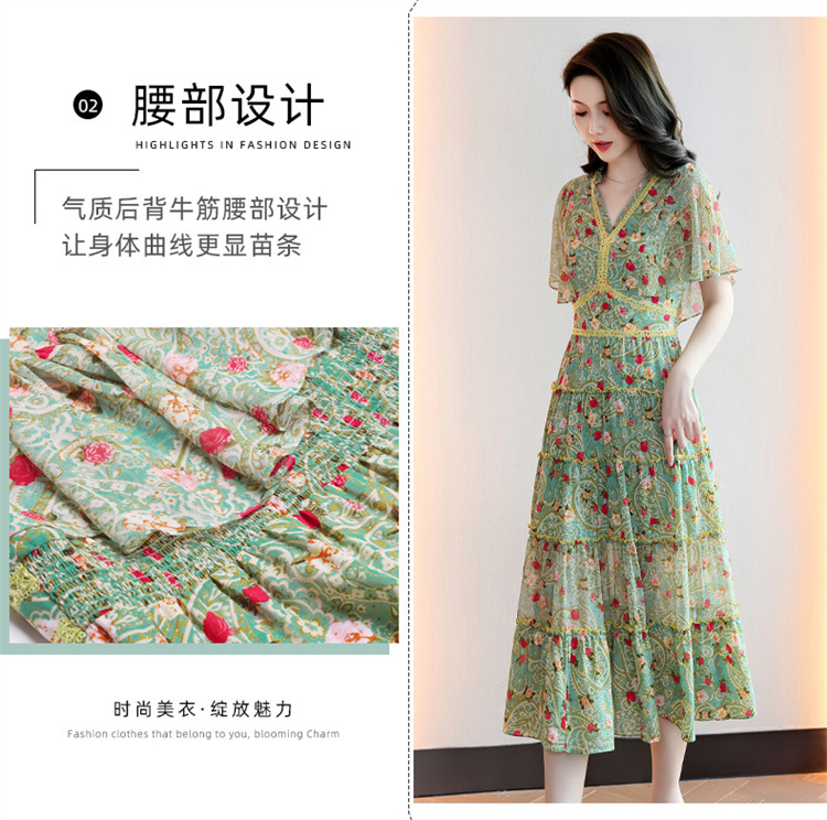 2022法式温柔风茶歇裙印花夏季新款时尚气质优雅中长裙HR-WZ51209