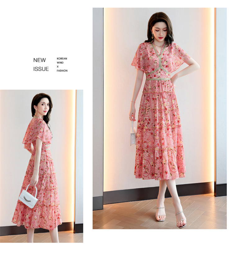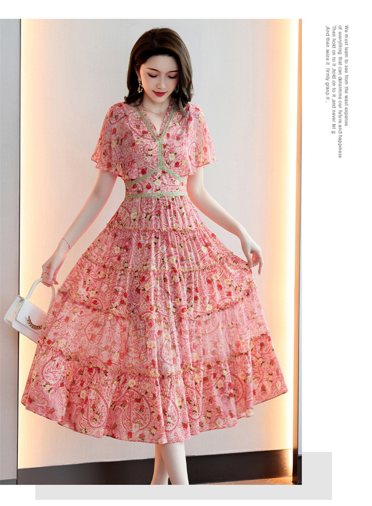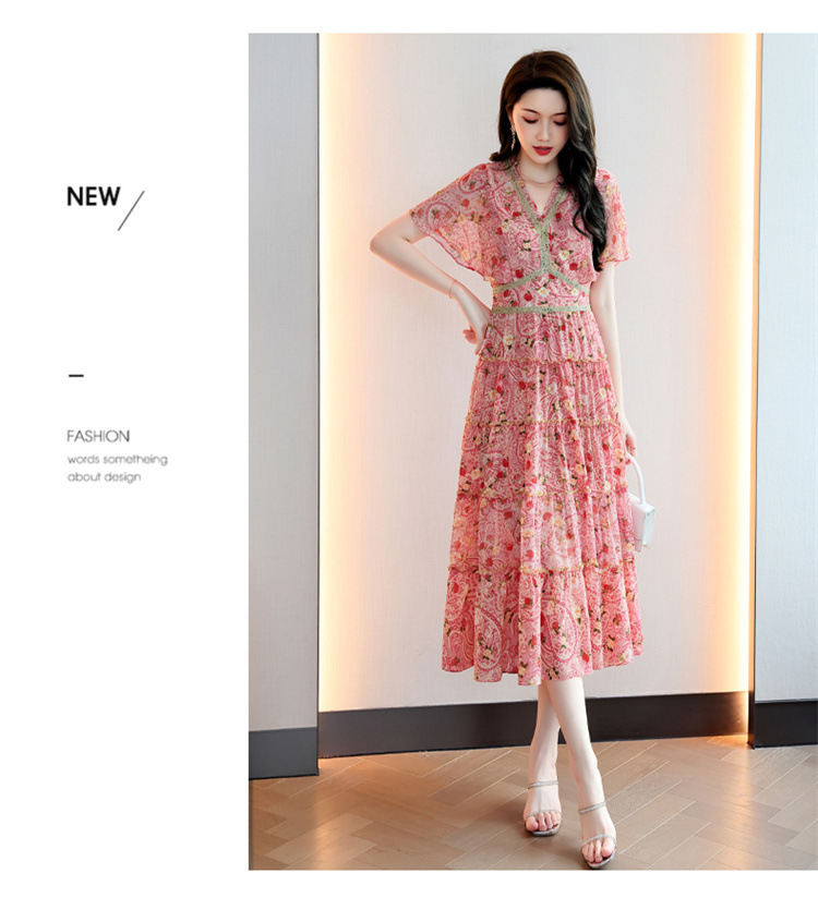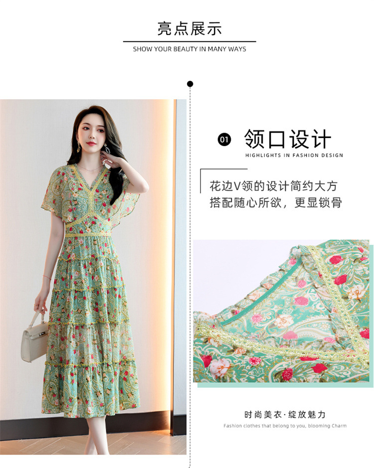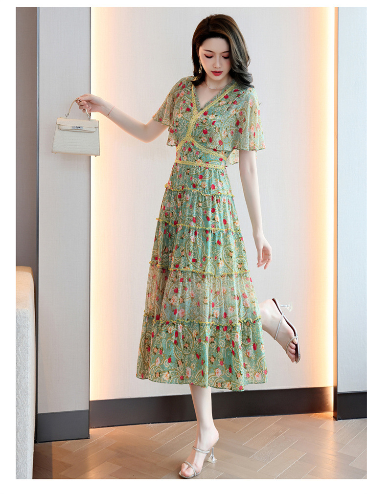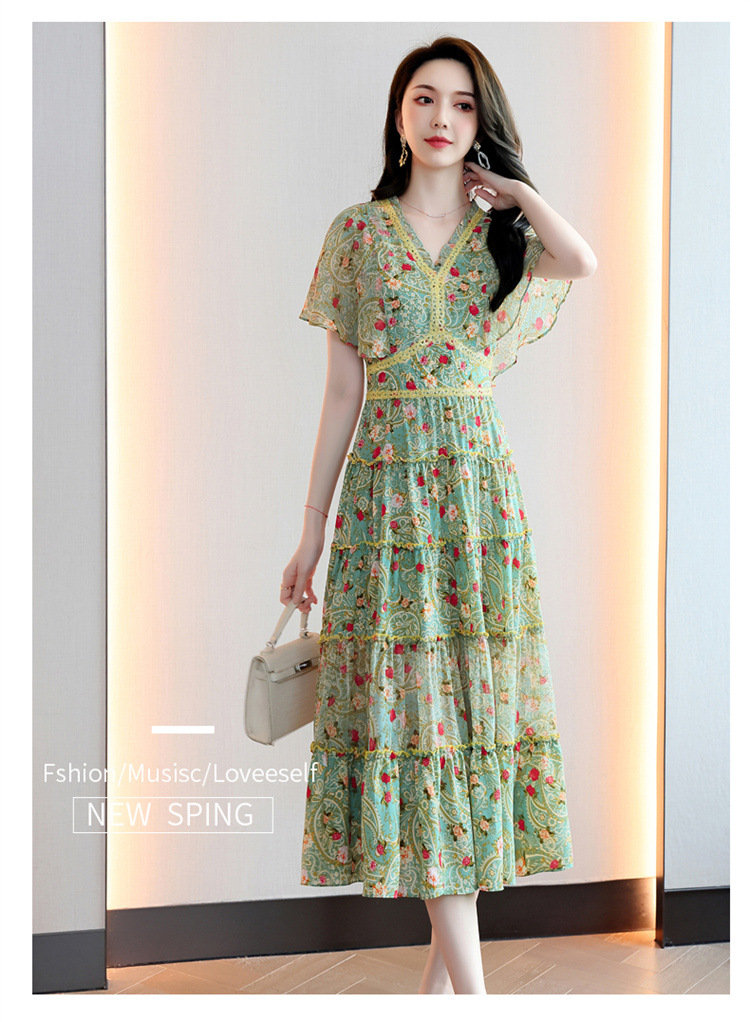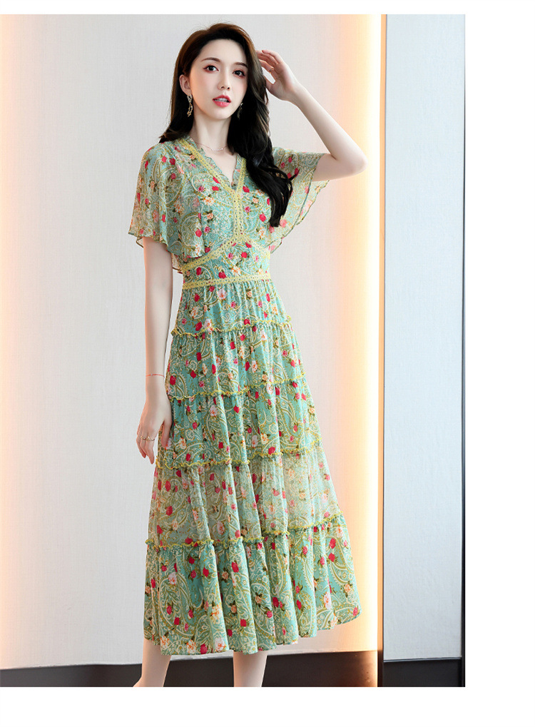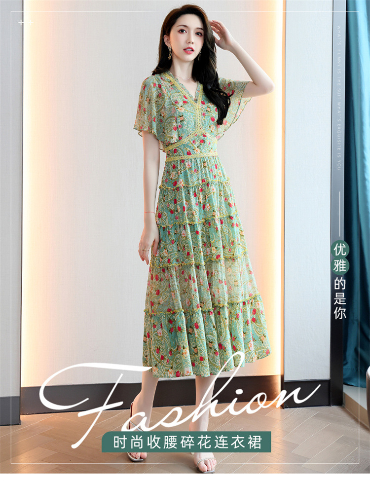 2022法式温柔风茶歇裙印花夏季新款时尚气质优雅中长裙HR-WZ51209