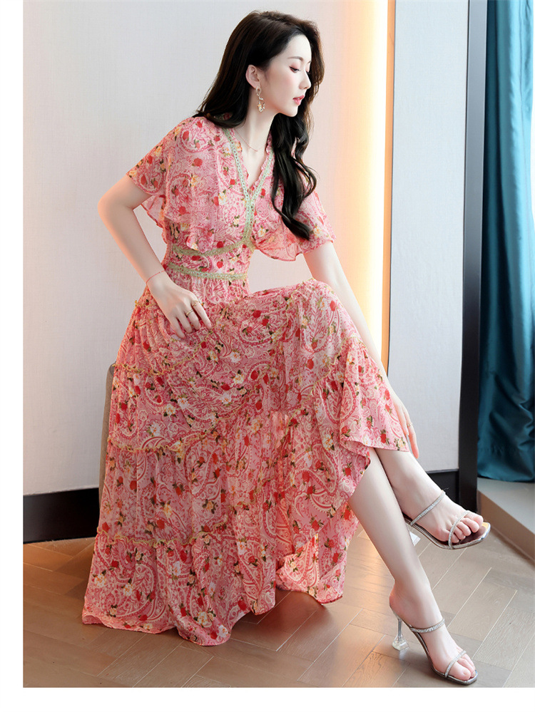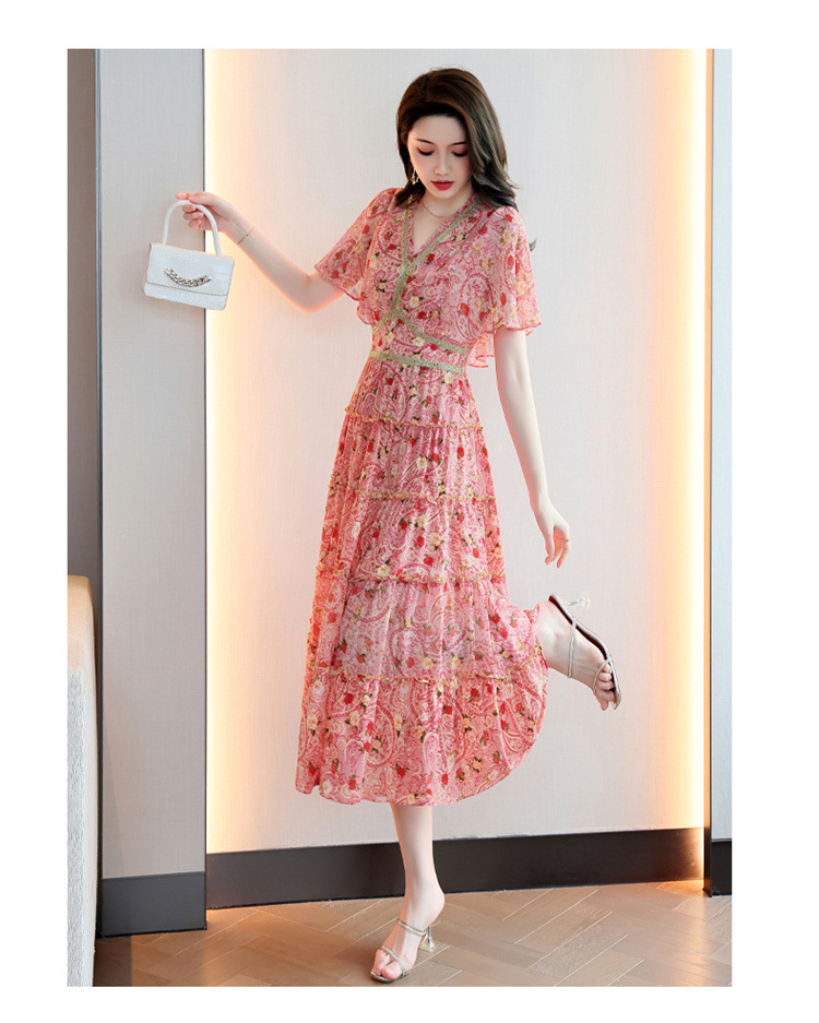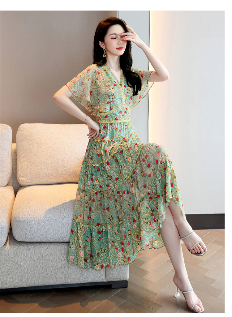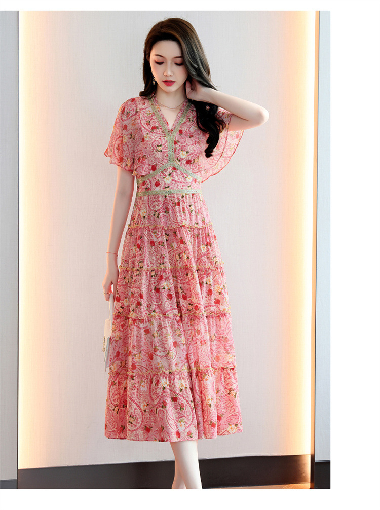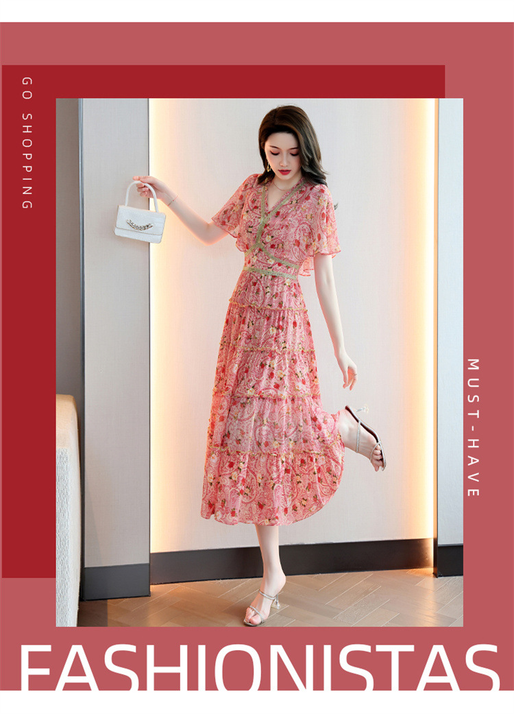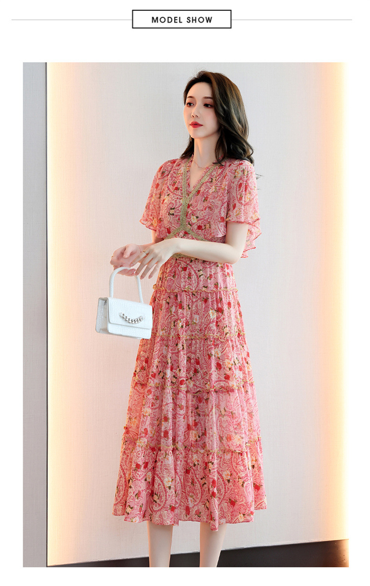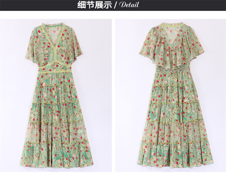 2022法式温柔风茶歇裙印花夏季新款时尚气质优雅中长裙HR-WZ51209