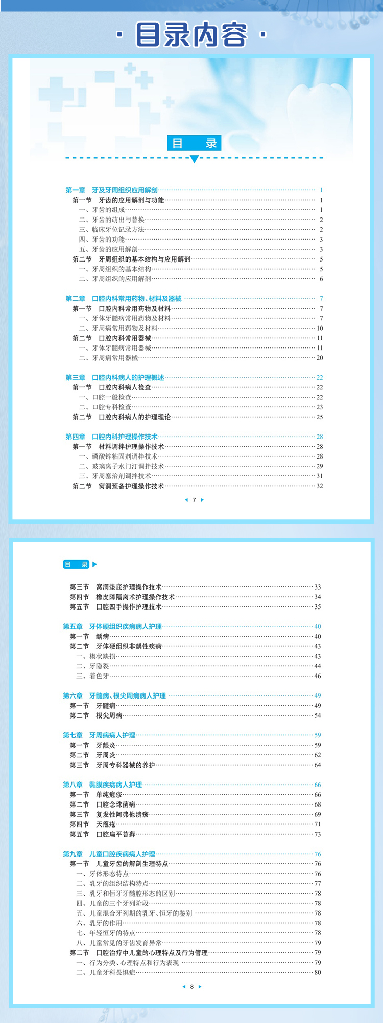 ①本书介绍了牙及牙周组织应用解剖和基本结构、口腔内科病人检查常用方法、口腔内科专科护理理论知识,以便于学生掌握口腔内科相关基础理论和基本操作技能。②本书通过对口腔内科护理操作技术流程、步骤的详细介绍,并配有相关图示,可增强学生理解能力和实际操作能力。③通过案例的导入提出相关问题,引导学生去学习、思考和解决问题,提高学生学习的兴趣和效果。④全书阐述了整体护理理论在口腔内科病人临床护理中的应用,并展现了护理人文关怀在口腔护理中的重要作用。⑤本书对口腔疾病的护理流程、护理常规、护理操作都进行了规范介绍,理论与实践并重,以便学生将理论与临床实践紧密联系,学以致用。