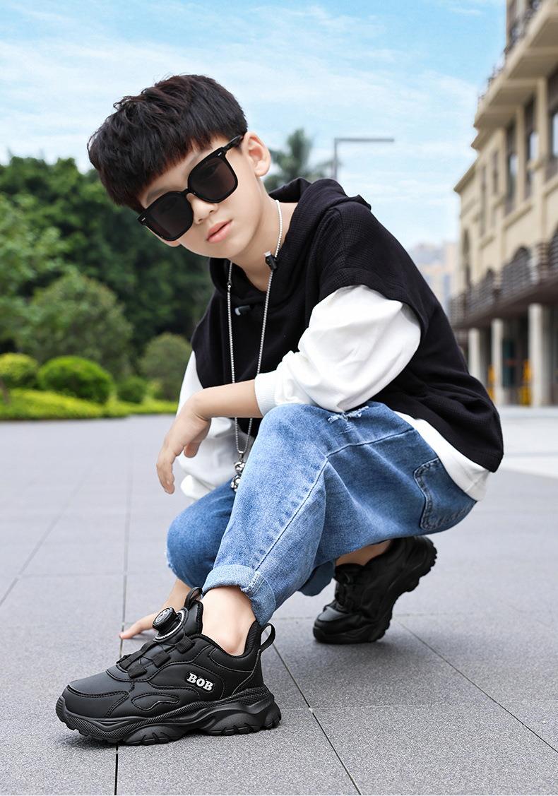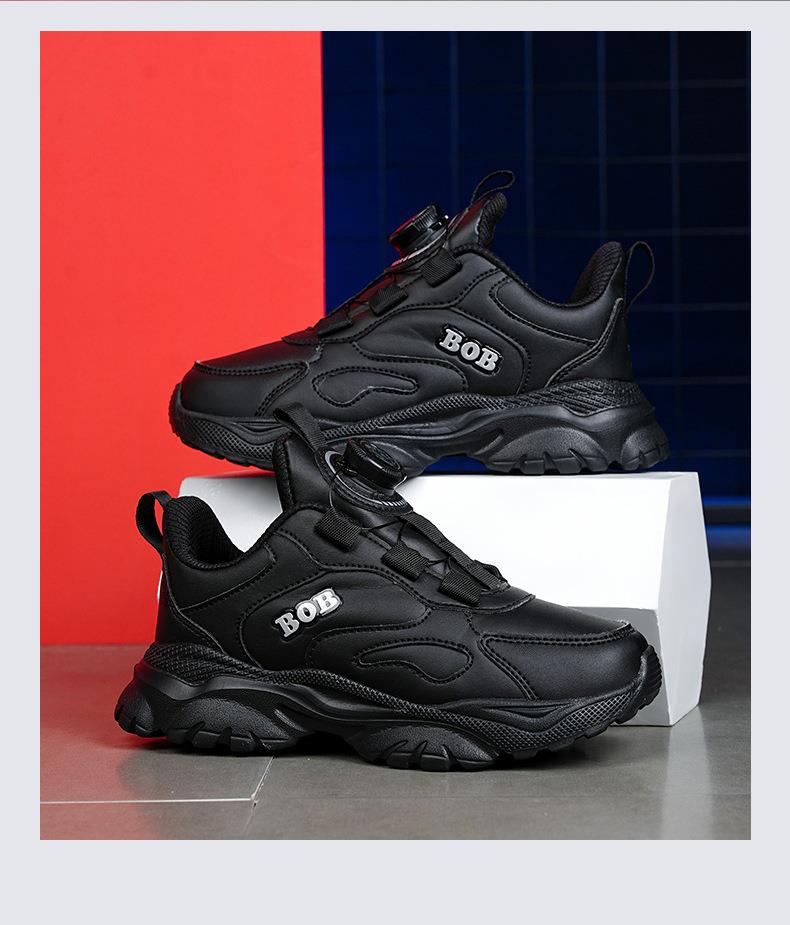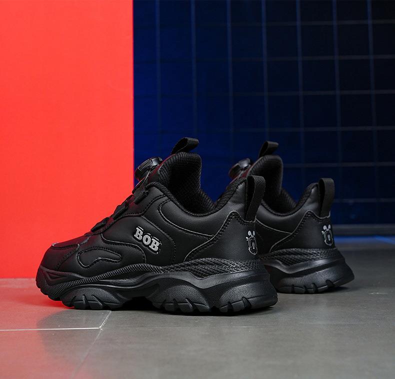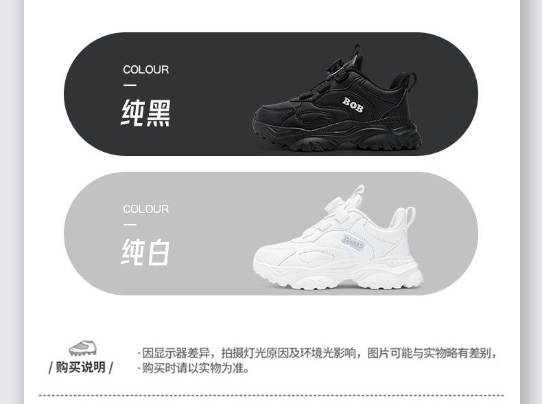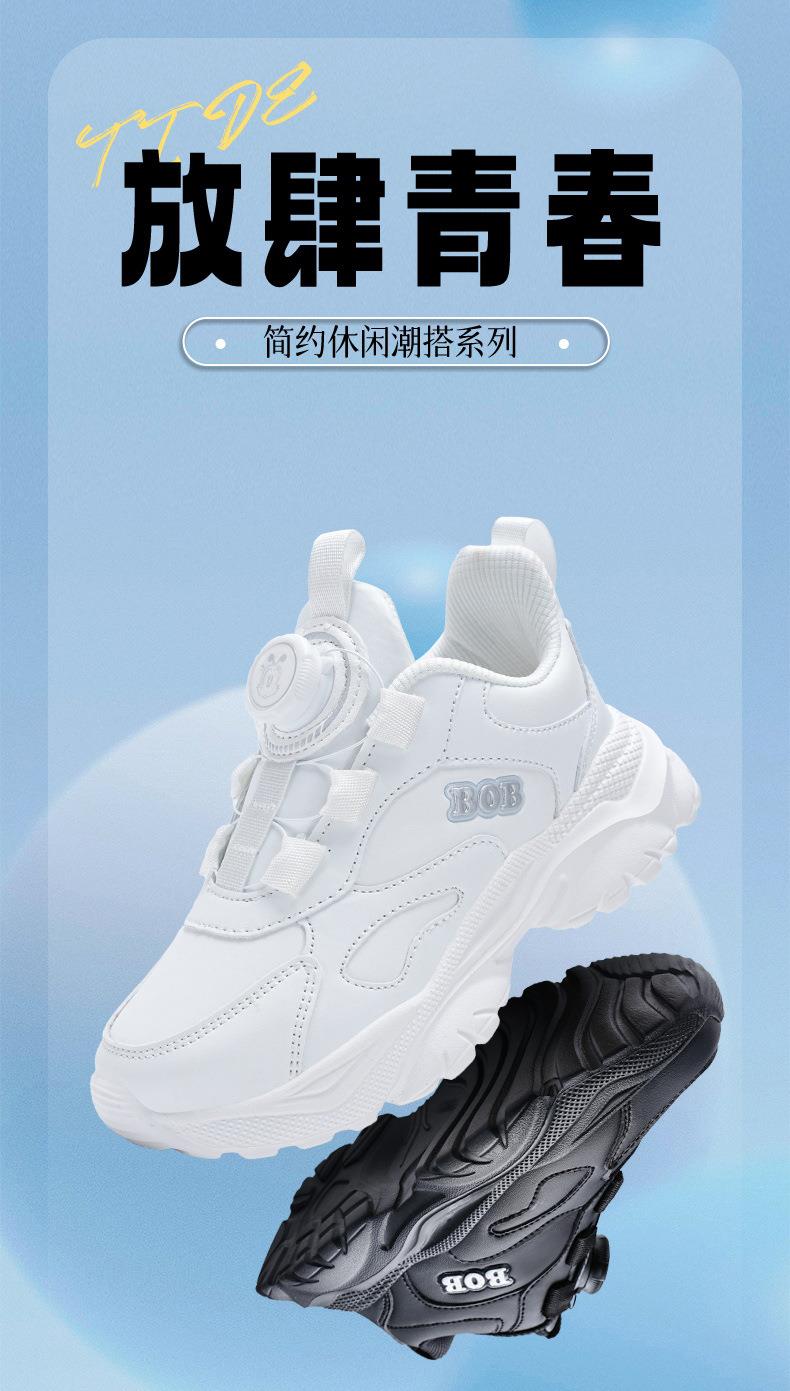 巴布豆男童鞋小白鞋2025新款儿童时尚老爹鞋女童皮面防水运动鞋潮