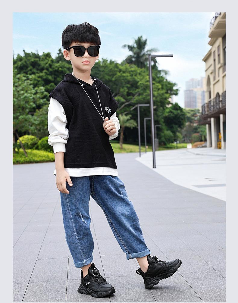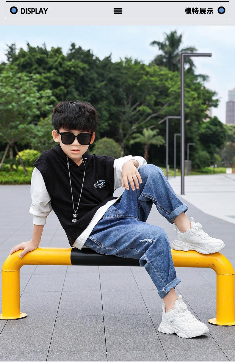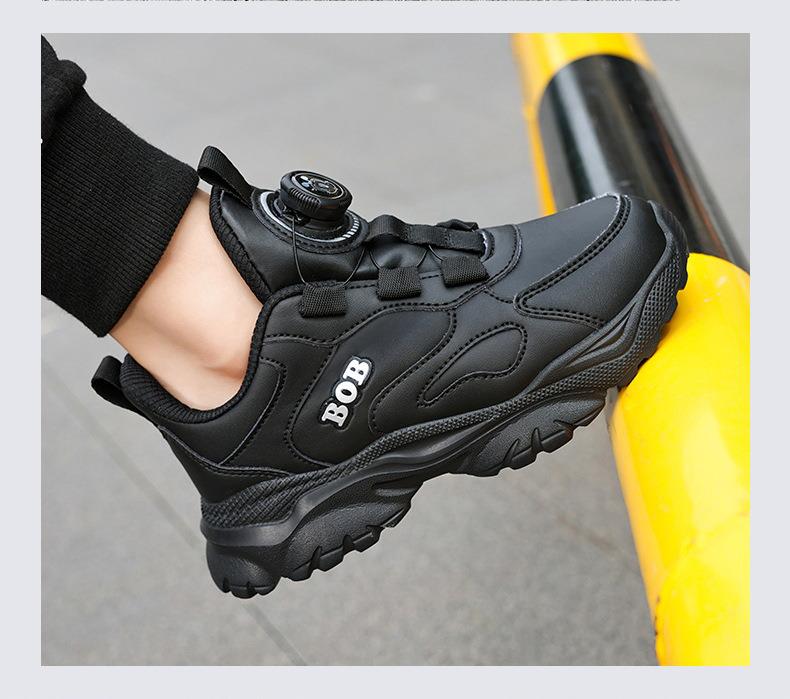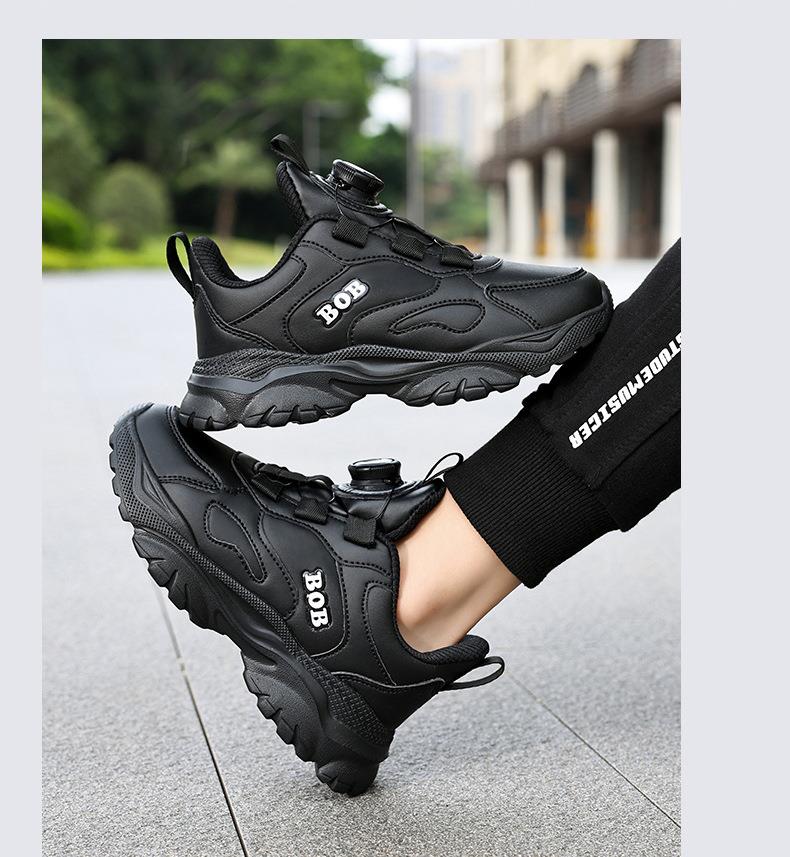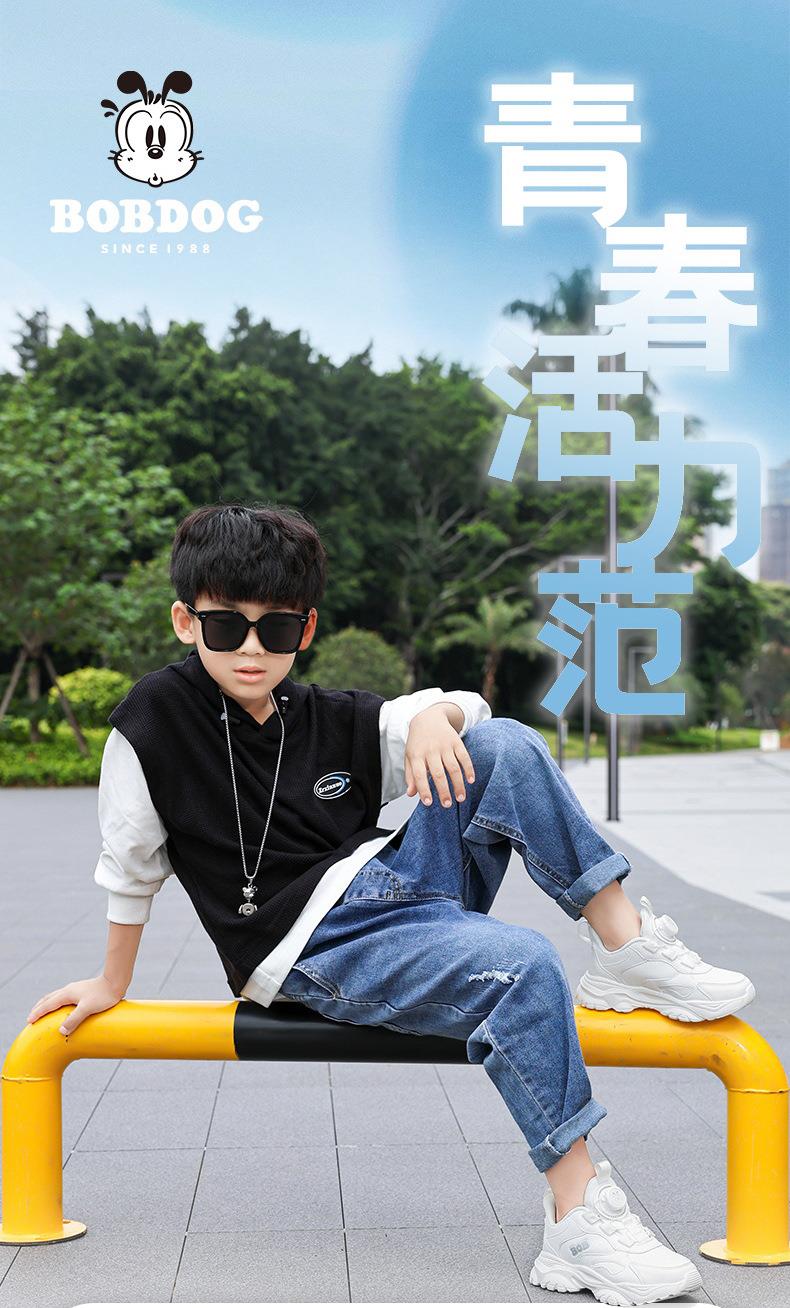 巴布豆男童鞋小白鞋2025新款儿童时尚老爹鞋女童皮面防水运动鞋潮