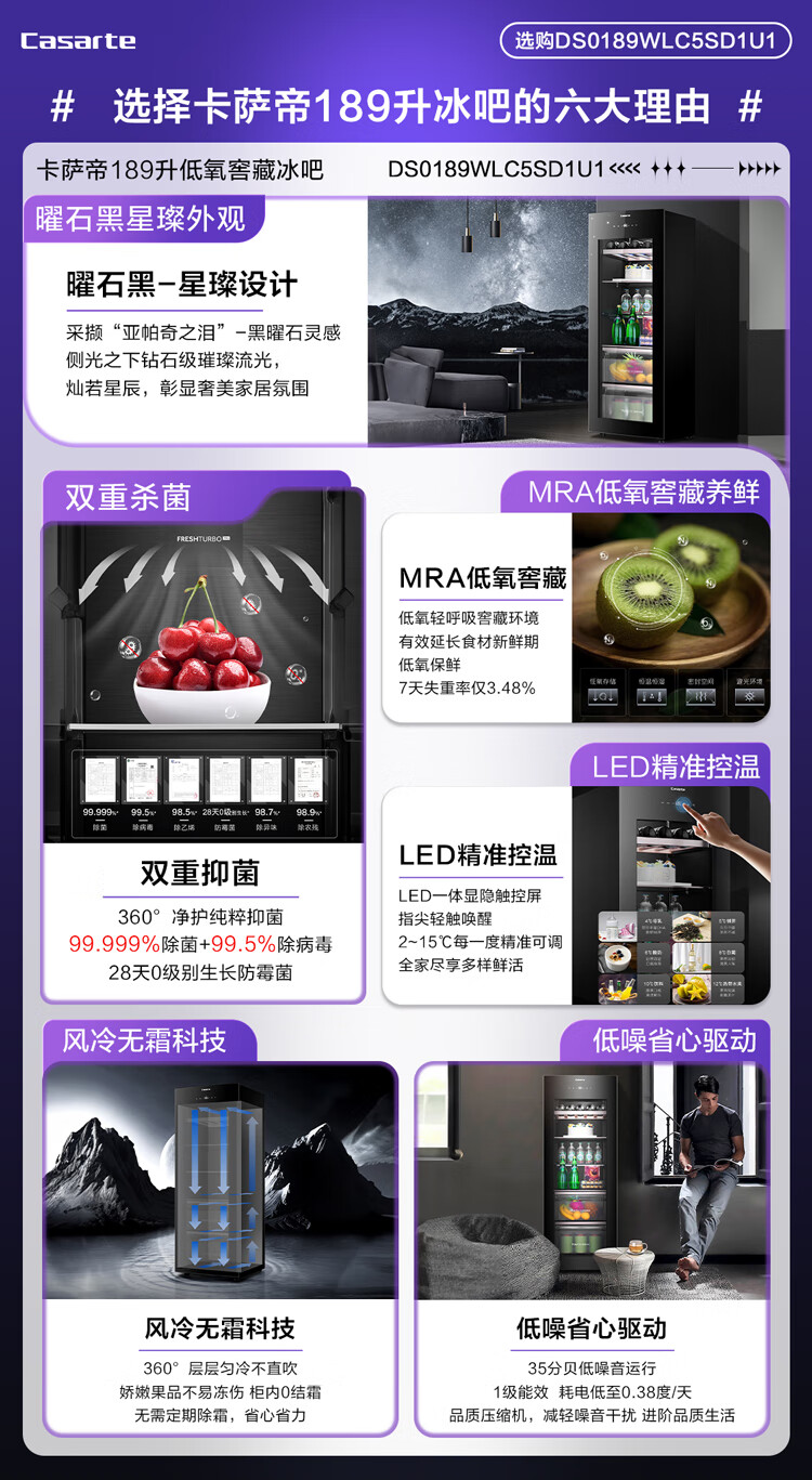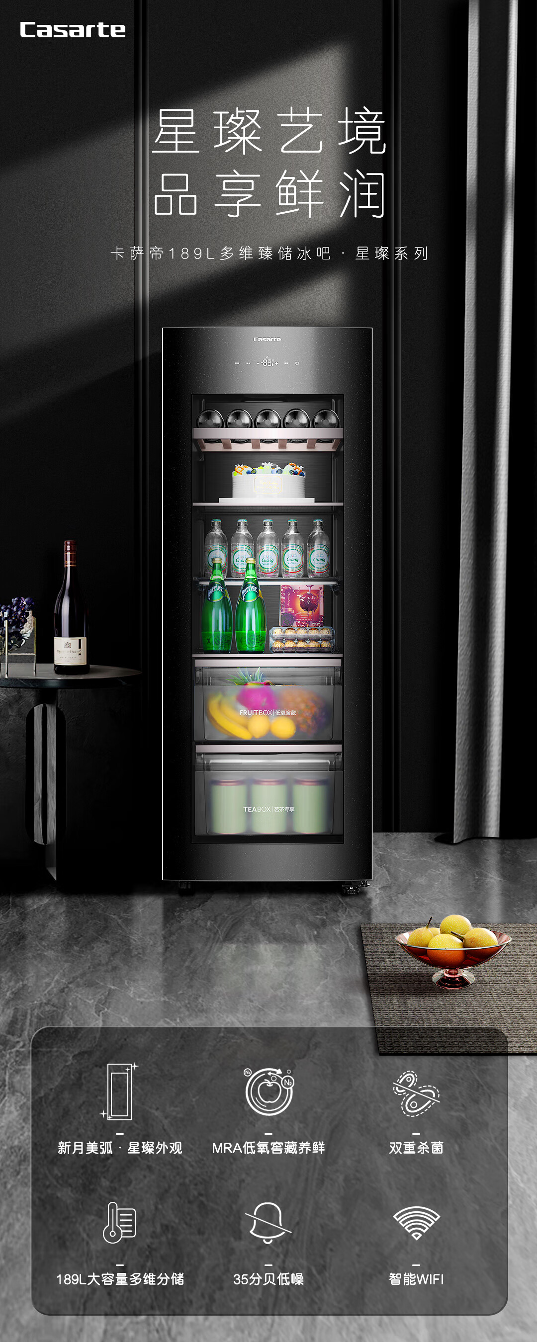 卡萨帝(Casarte)189升MRA低氧窖藏干湿分储暖藏冰吧 茶叶饮料水果保鲜柜冰箱DS0189WLC5SD1U1