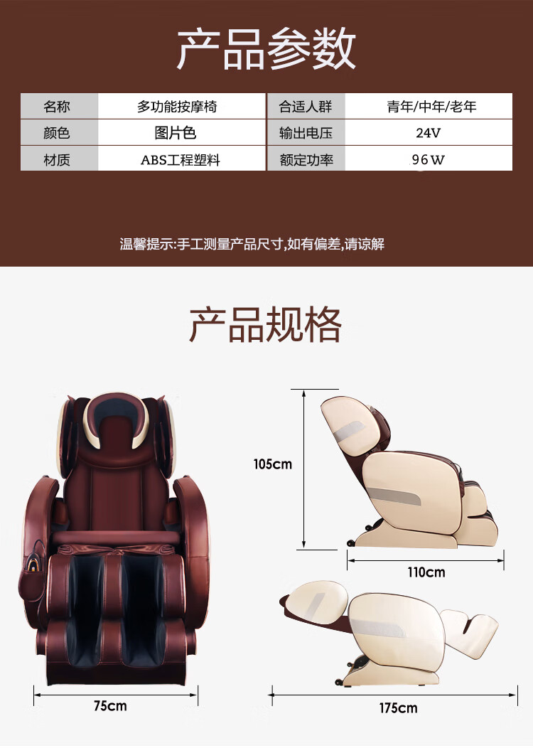 环派按摩椅 多功能智能电动按摩沙发 H019 红色