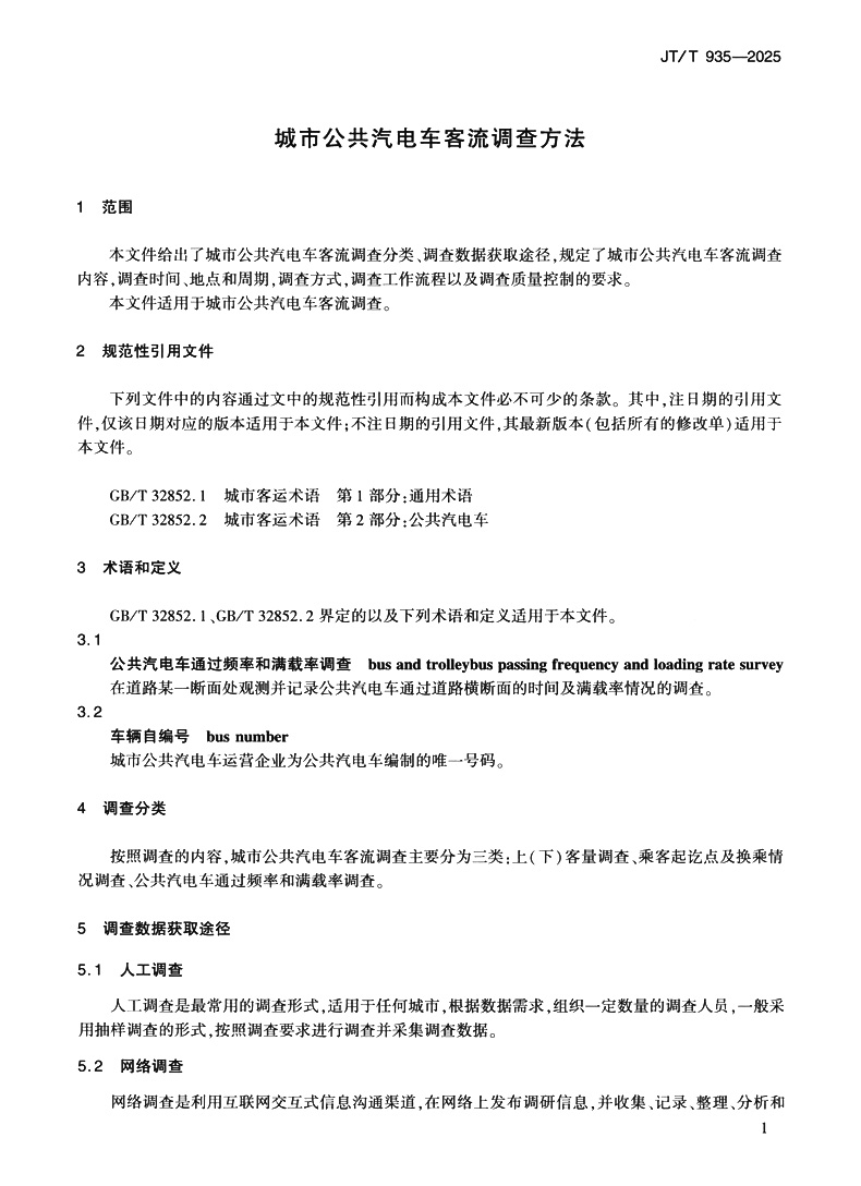 书名:城市公共汽电车客流调查方法(JT/T 935—2025)