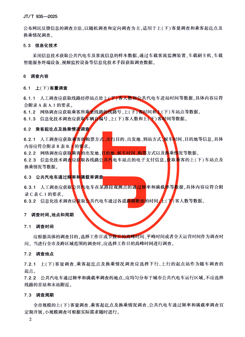 城市公共汽电车客流调查方法(JT/T 935—2025)