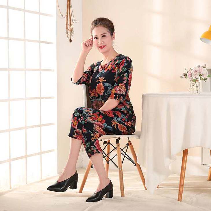妈妈套装!舒适的版型上身没有约束感,有着遮挡小肚的效果,让妈妈更加美丽哦。款式简约但不失优雅,上身更加的轻薄透气 !
