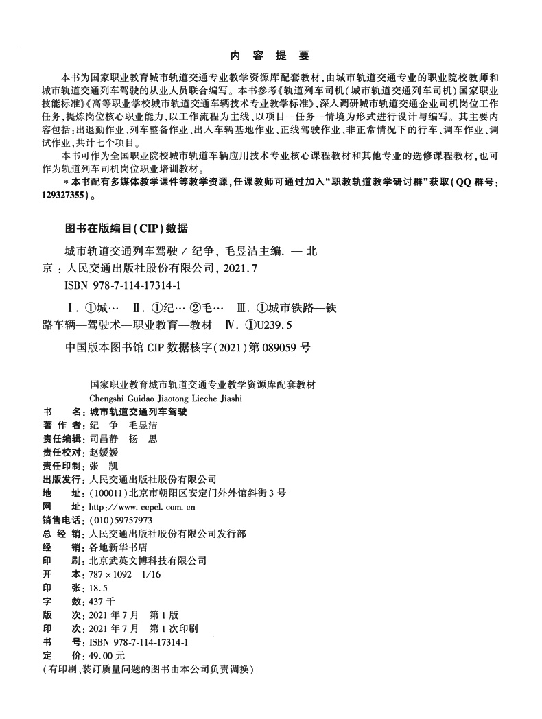 书名:城市轨道交通列车驾驶