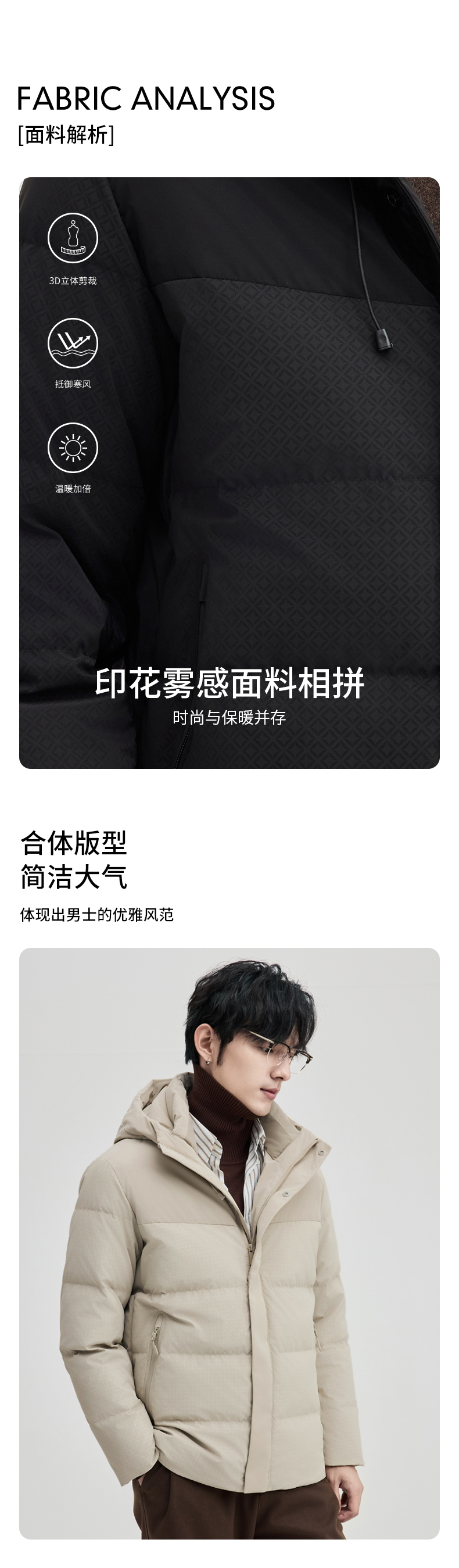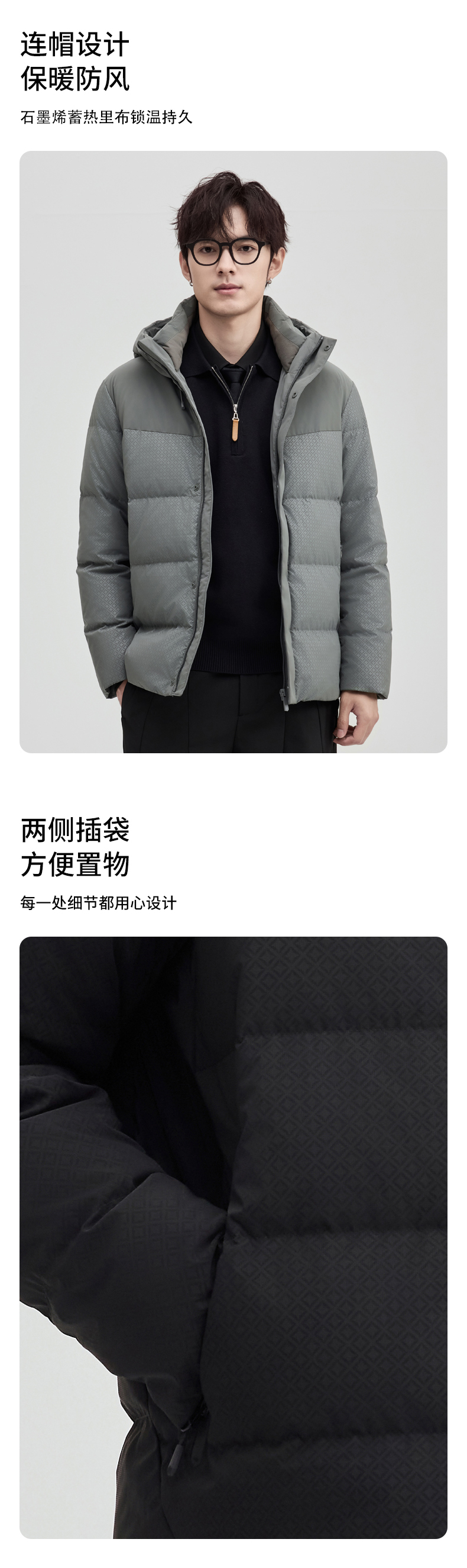 贝纳川通勤时尚连帽保暖男士面包服羽绒服ECT405251