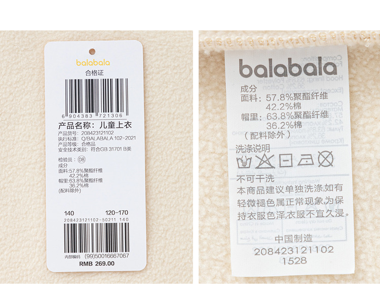 巴拉巴拉儿童童装男童卫衣新款冬装中大童连帽上衣女童加绒潮