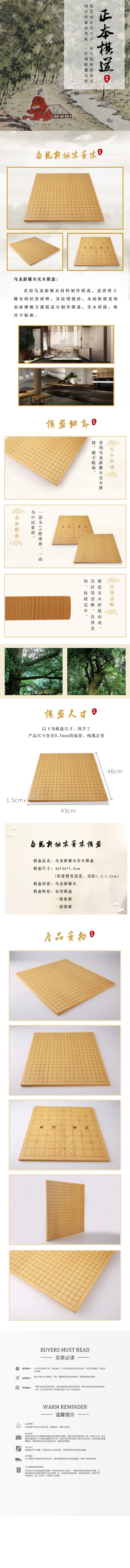 1.5厘米厚实木拼盘 双面象棋盘--乌龙新榧木实木