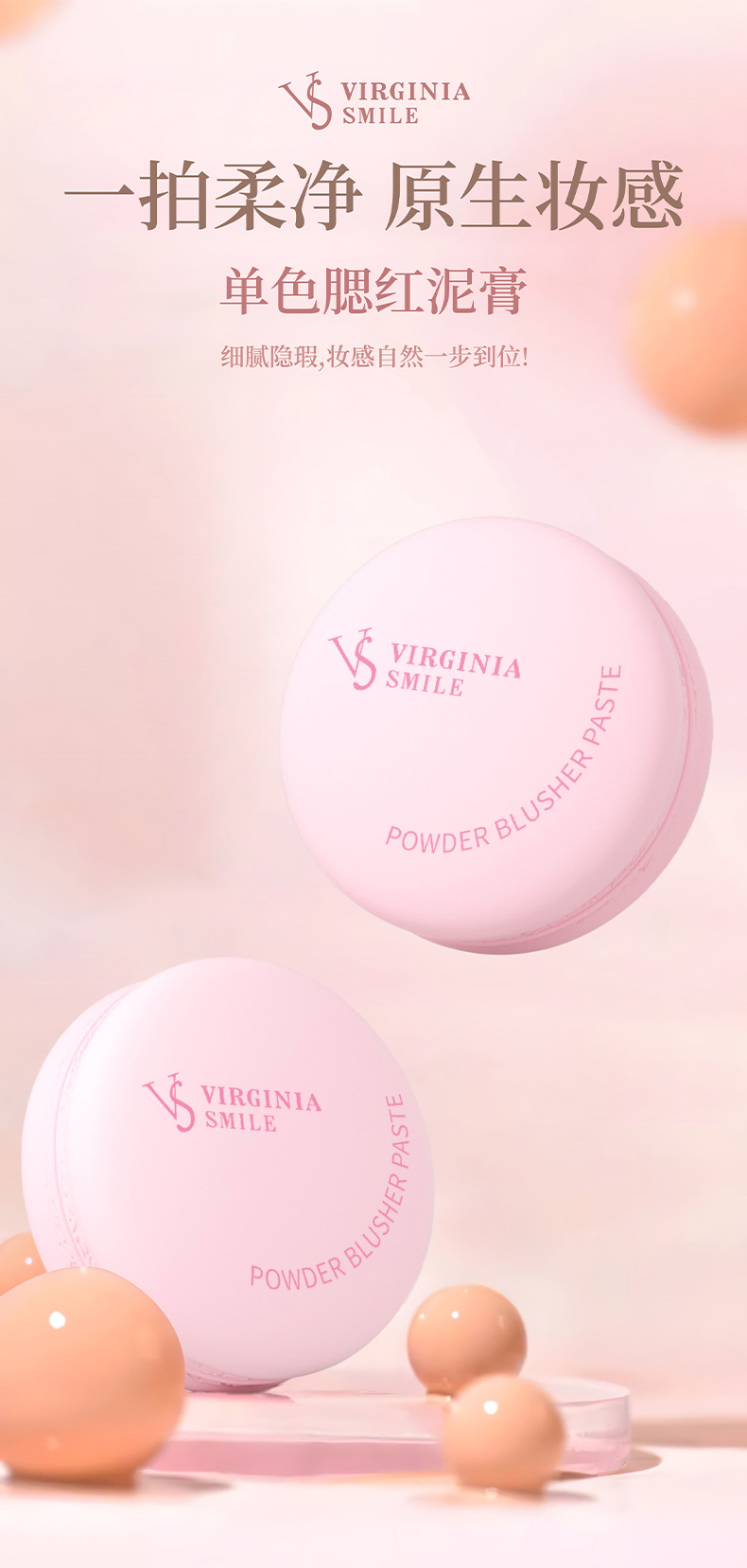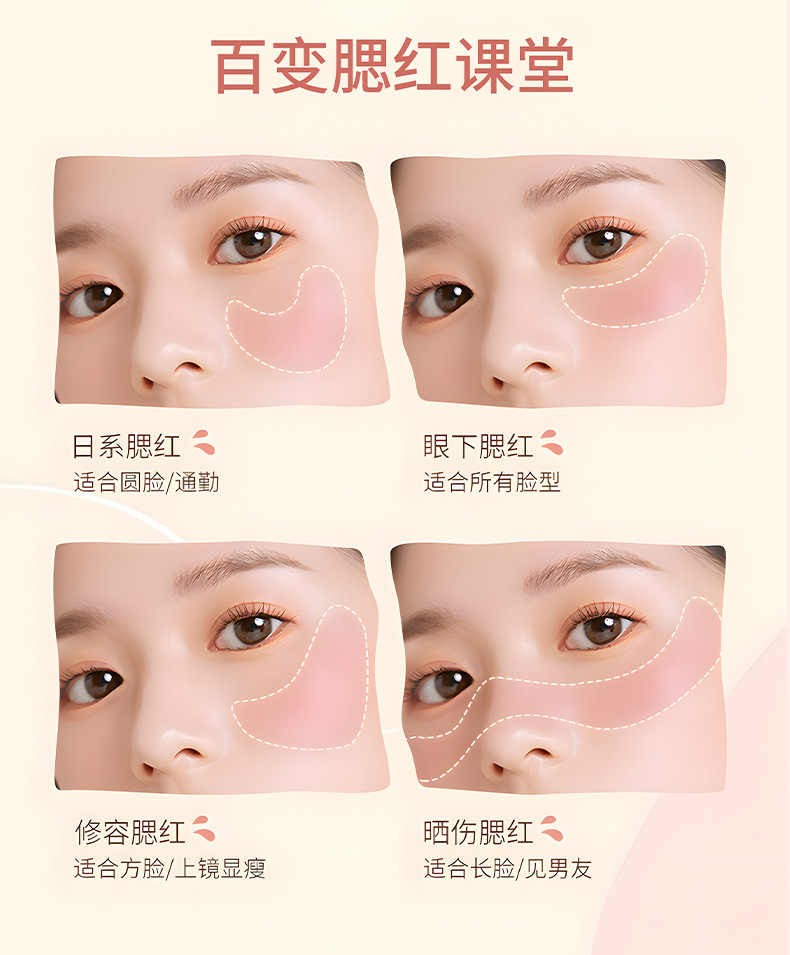 【全脸妆容! 一块腮红就够】唇腮两用腮红膏显色哑光持久雾面单色腮红泥不卡粉跨境腮紅。ry