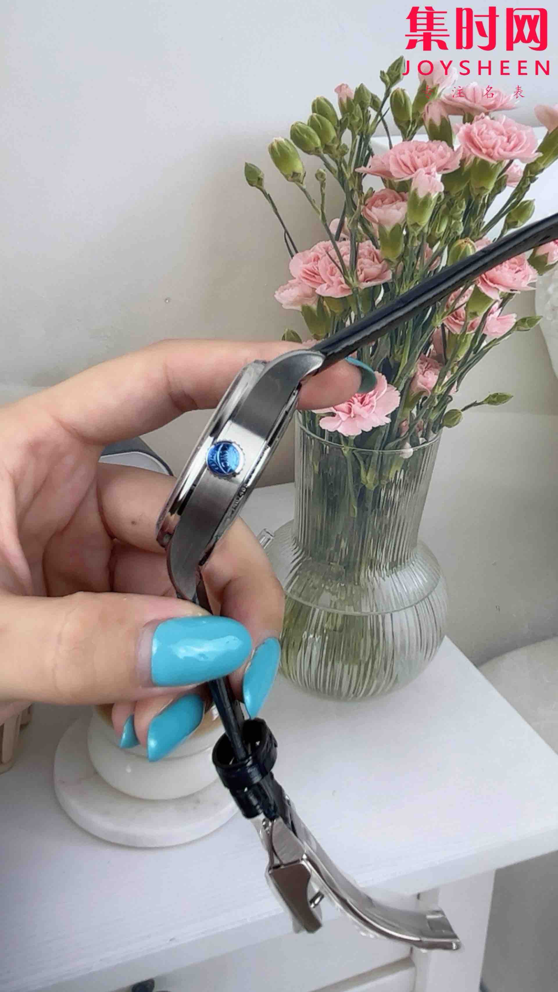 镜面:为了有更薄的体验,采用锅盖式蓝宝石镜面,这样不但给指针有更多的行走空间,而且美观程度上也是大大的提升,而且不惜成本背面的镜面也同样是锅盖蓝宝石镜面,使背透更加一览无余的展示美感