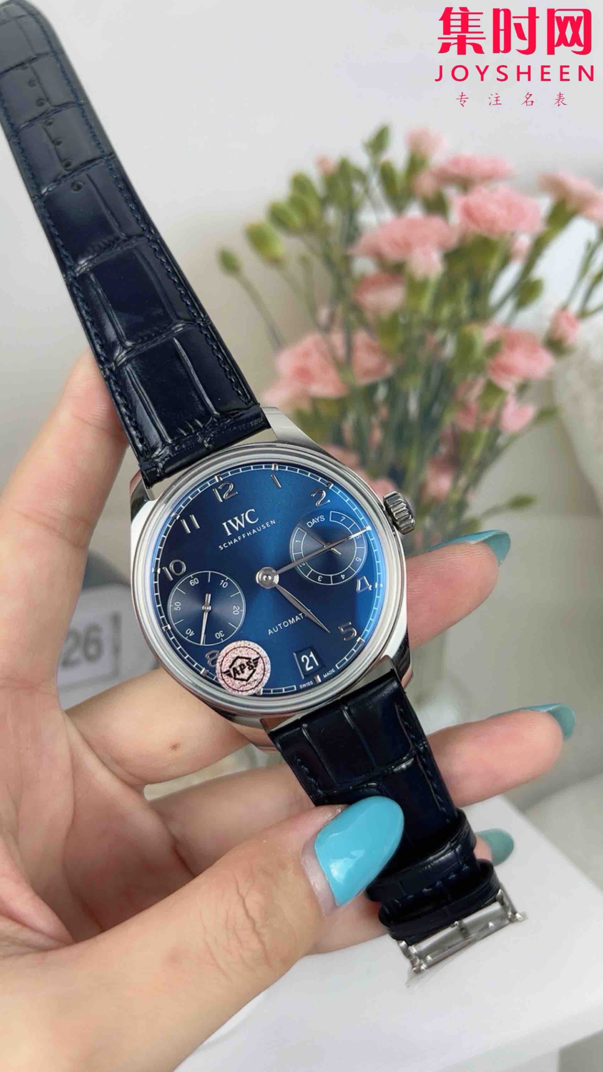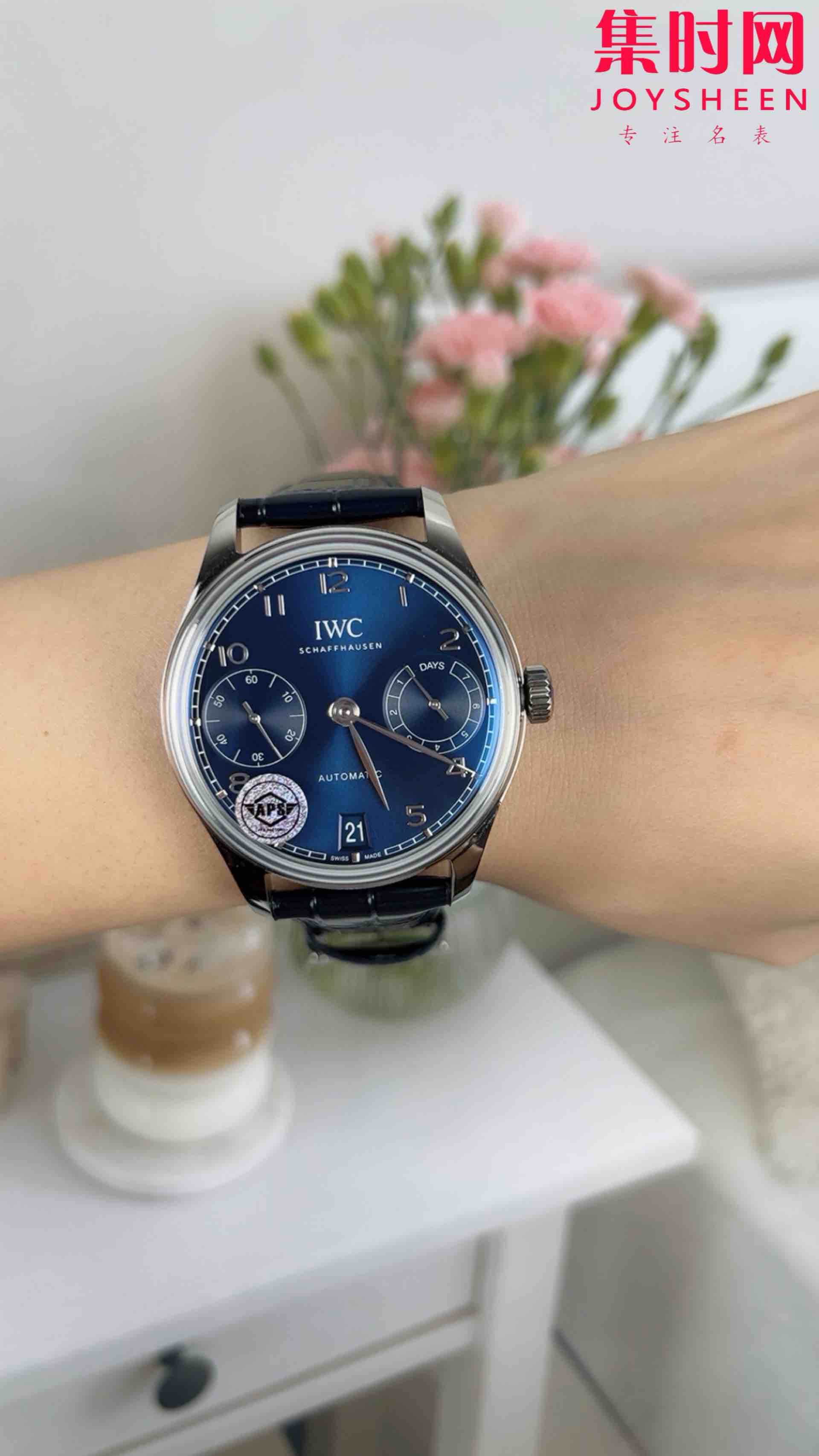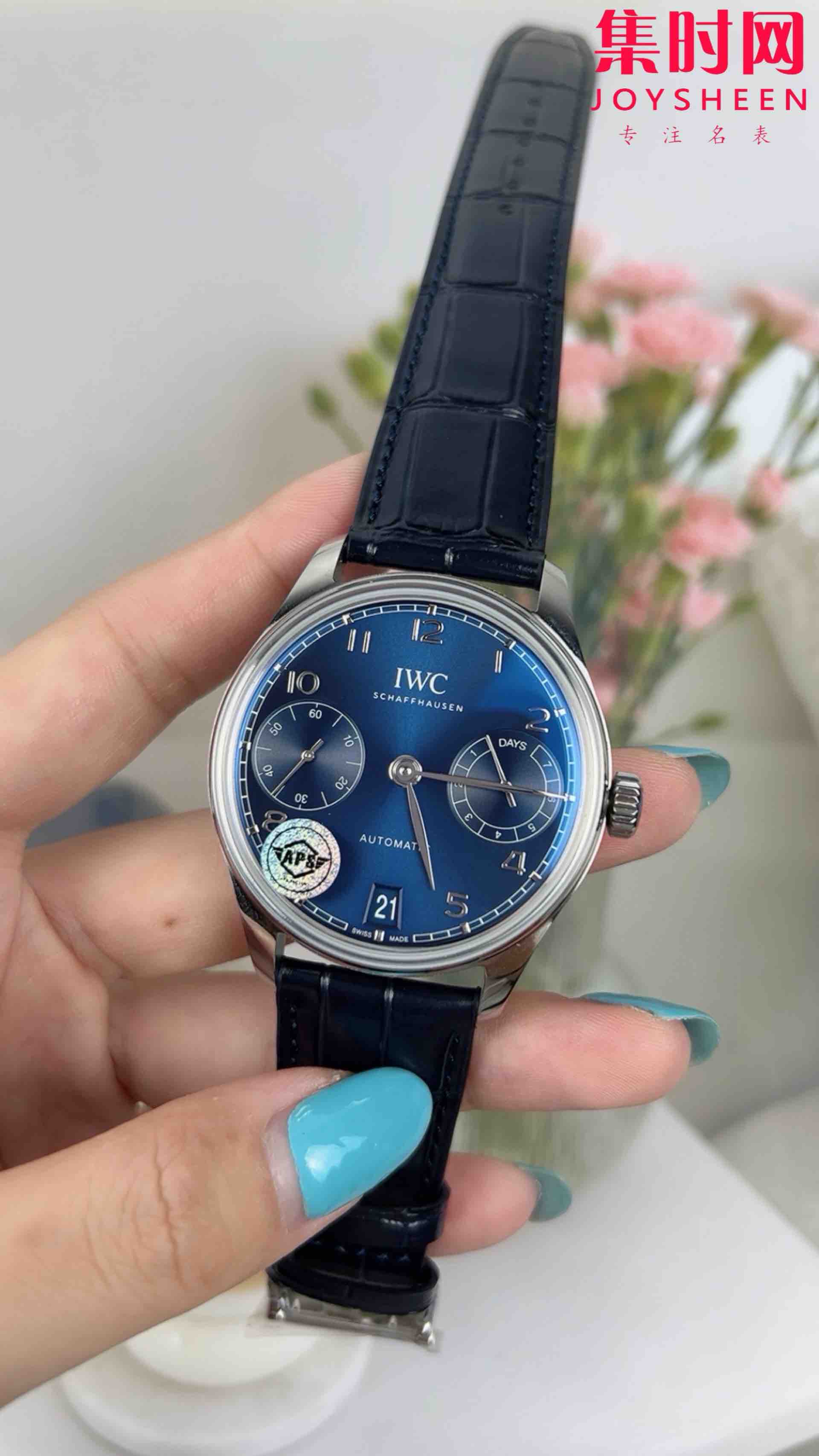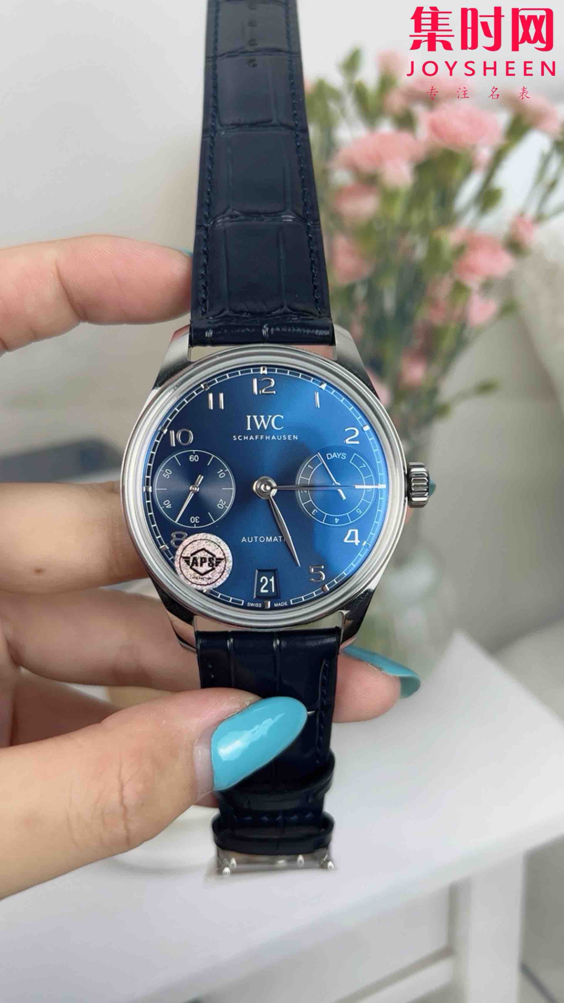 【新款葡七】新品万国APS葡萄牙七日链系列 蓝色盘 男士腕表 大表径相匹配的阿拉伯数字时标与柳叶指针同样也成为了葡萄牙系列不可获缺的DNA。更多的则是葡七全方位的细节升级。而它们中带给我最大惊喜的就是葡七。