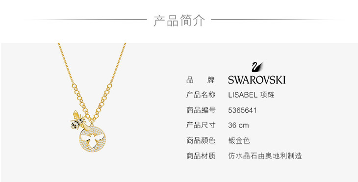 【一般贸易】施华洛世奇 SWAROVSKI项链 奢侈品饰品 时尚可爱小蜜蜂吊坠项链 锁骨链5365641