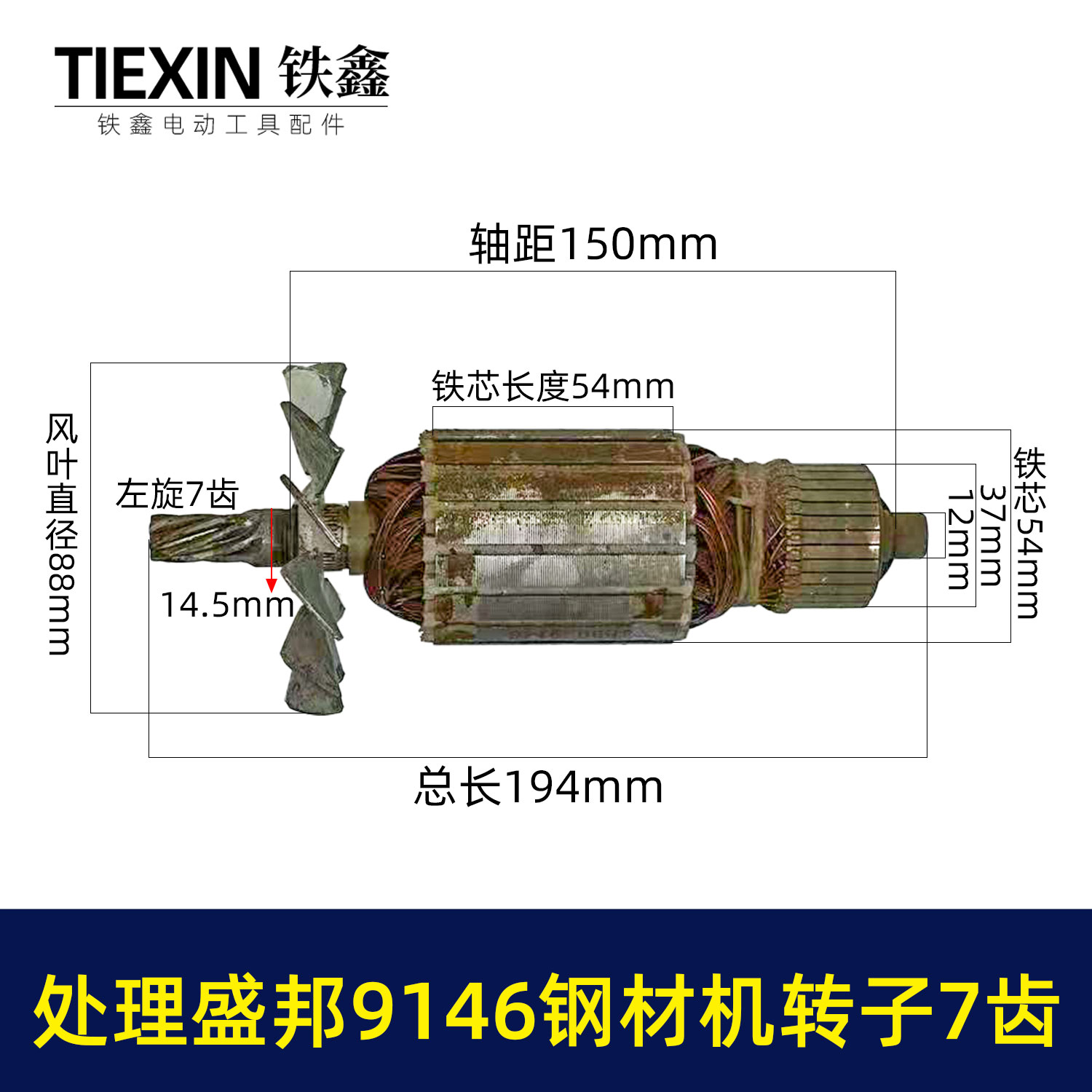 【货号02595】特价处理生锈盛邦9146钢材机转子7齿二手好用龙鹰355切割机电机