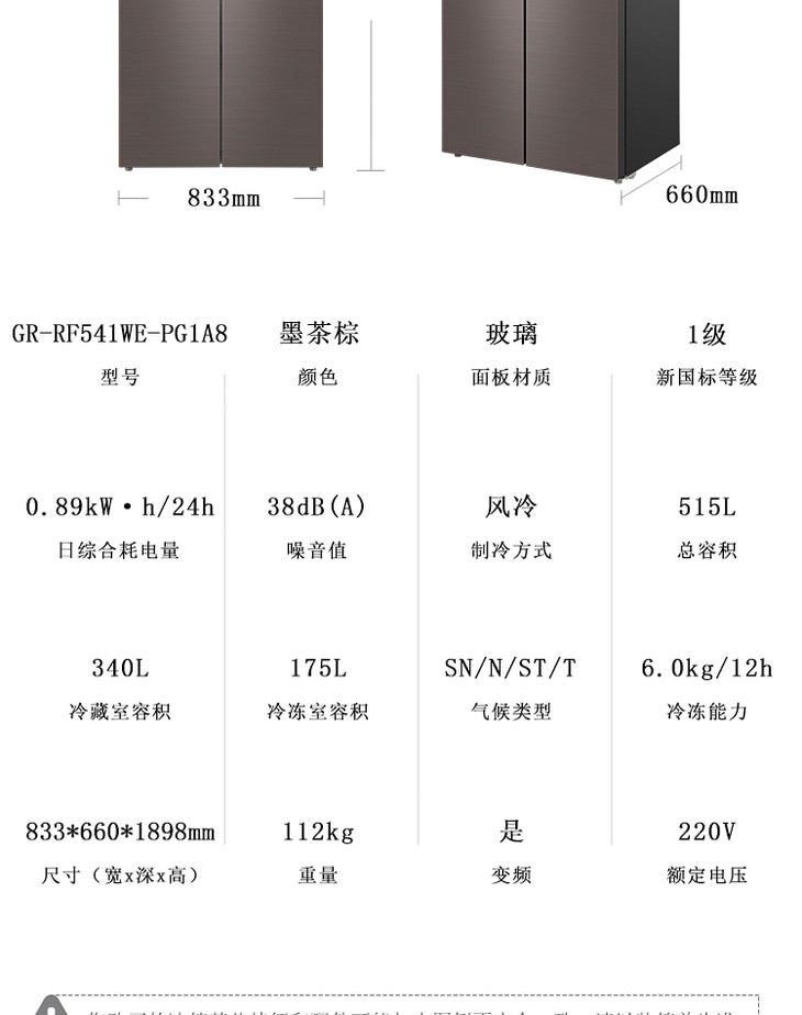 东芝(TOSHIBA)(12977)515升 十字四门冰箱 GR-RF541WE-PG1A8( 墨茶棕)
