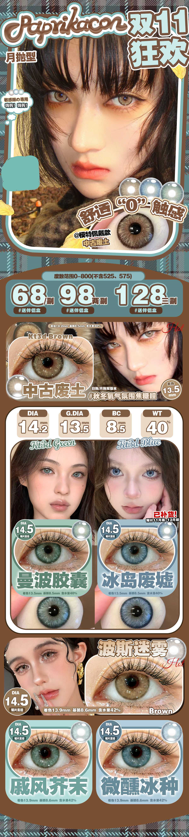 kitty sundae&paprikacon 月抛美瞳 活动合集【中古废土/冰岛废墟/曼波胶囊/微醺冰种/戚风芥末/波斯迷雾】