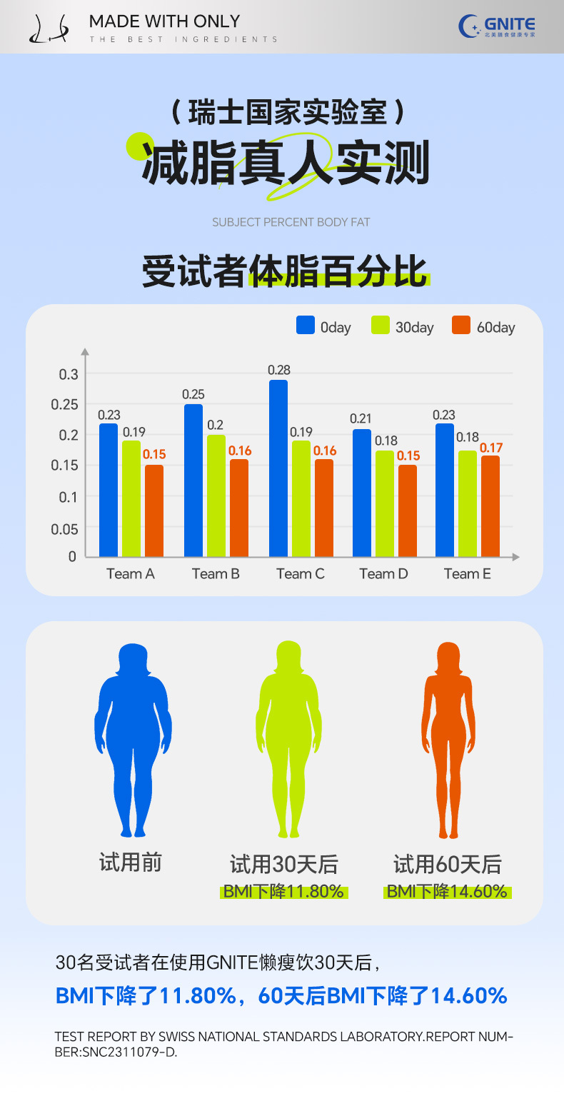 瑞士国家实验室针对GNITE懒瘦饮减脂效果
