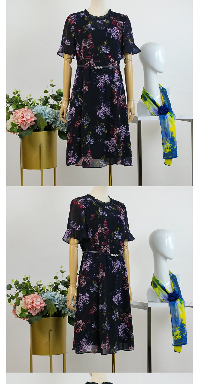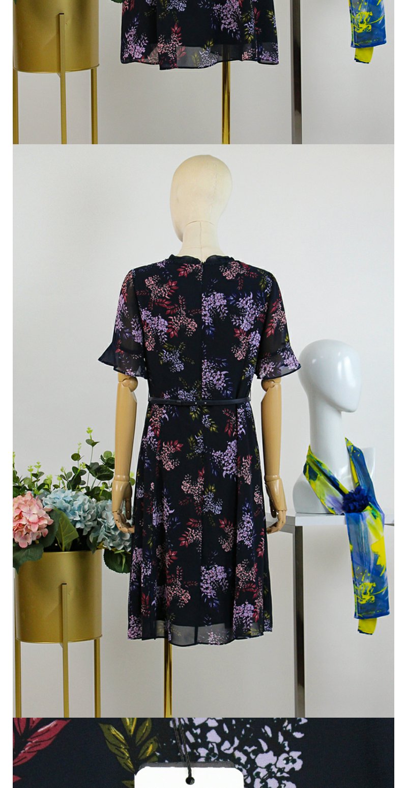 FOCALS福柯斯女装夏季新款圆领轻熟半袖收腰a字连衣裙2YBX258BZ