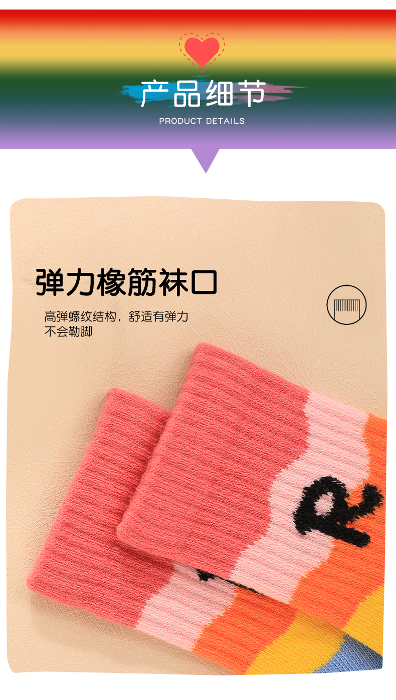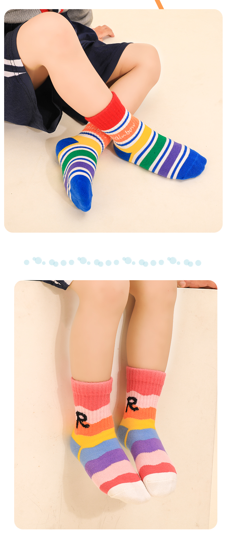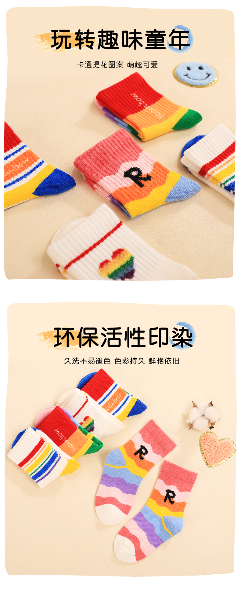 洁丽雅5双装儿童卡通袜子可爱超萌彩虹袜儿童袜子中筒袜子童袜