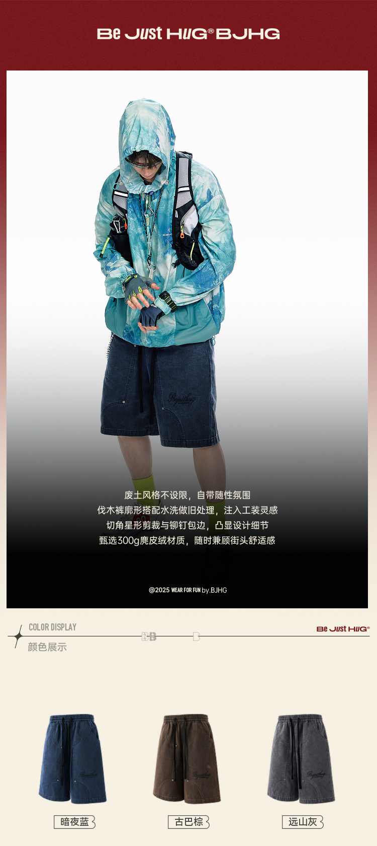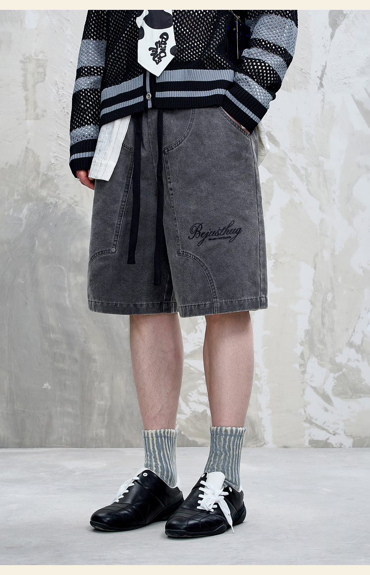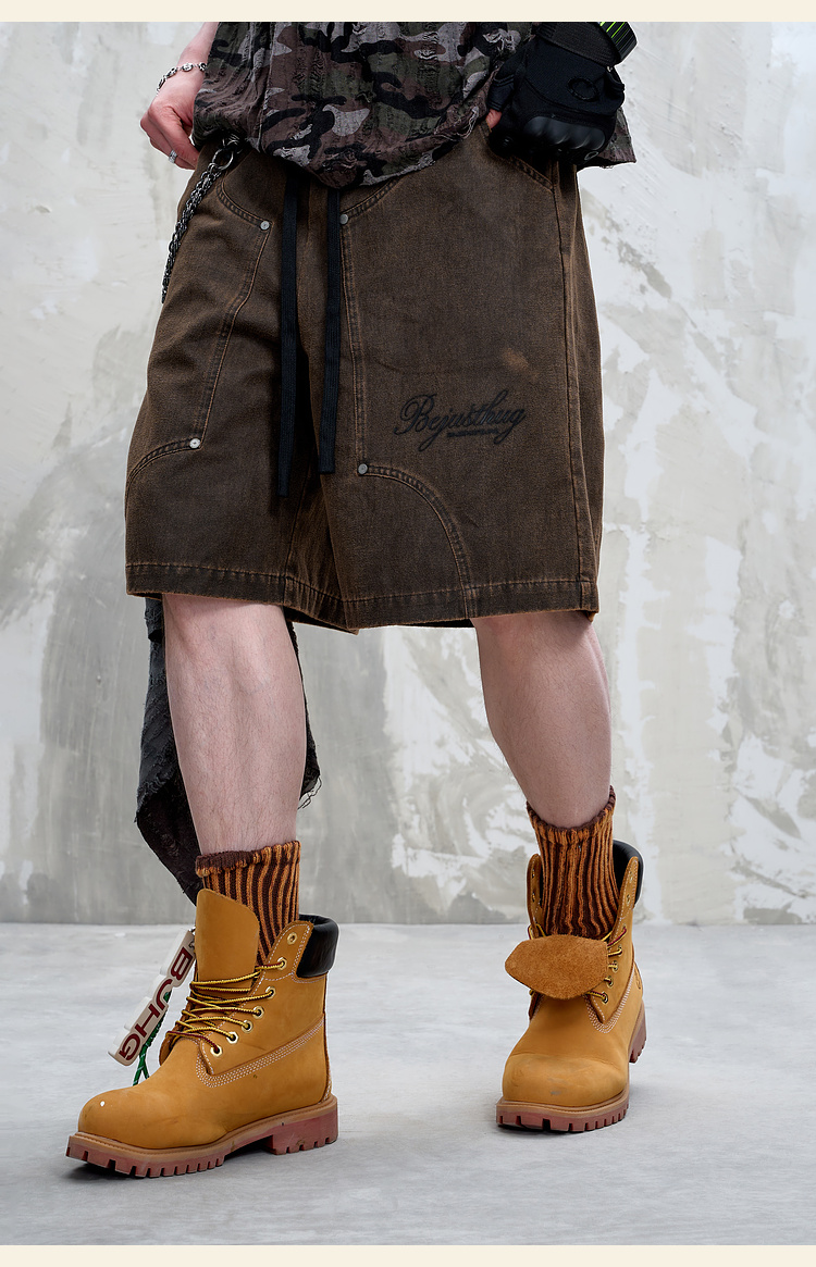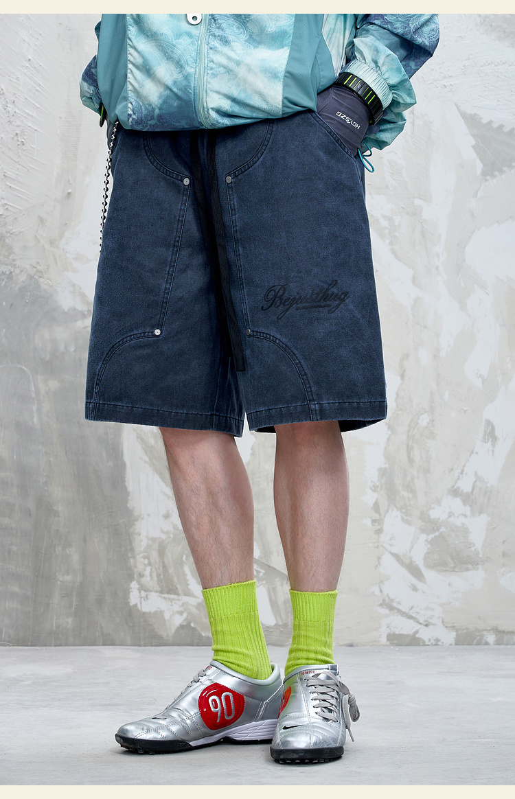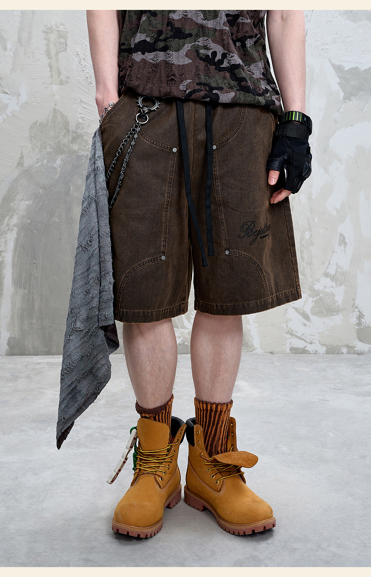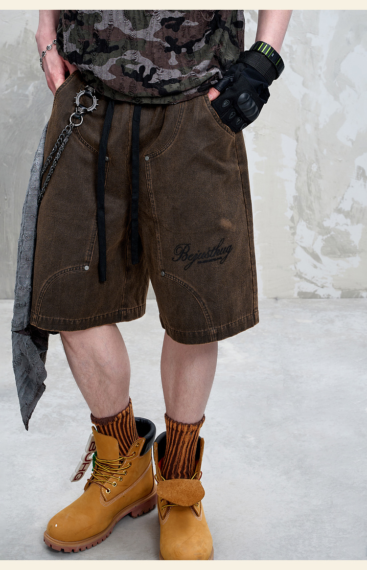 BJHG不计后果重磅仿麂皮绒休闲短裤男夏季潮牌美式水洗运动五分裤