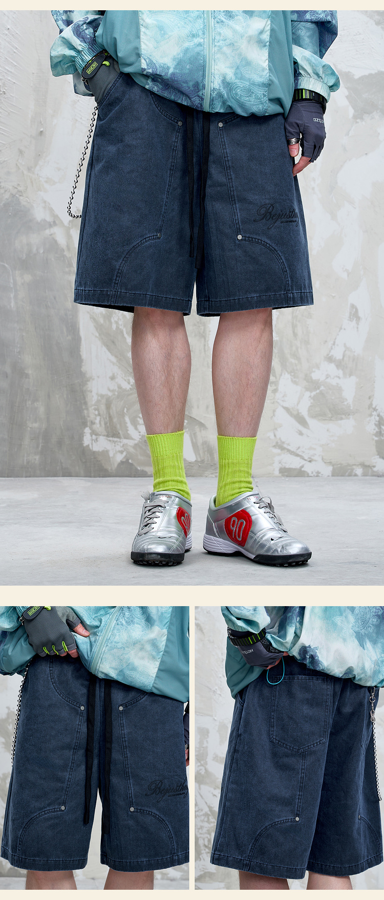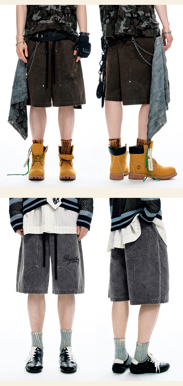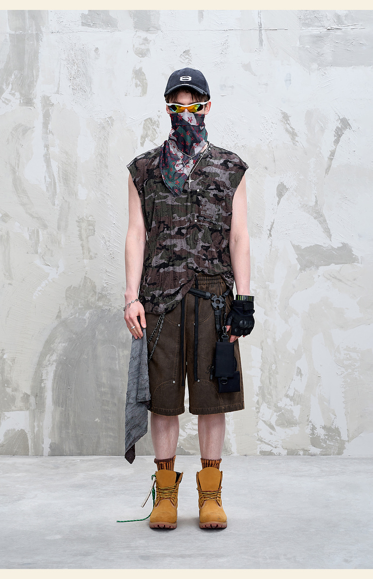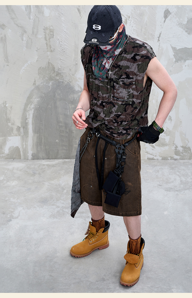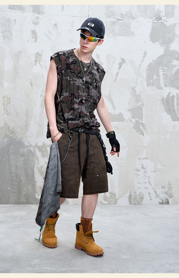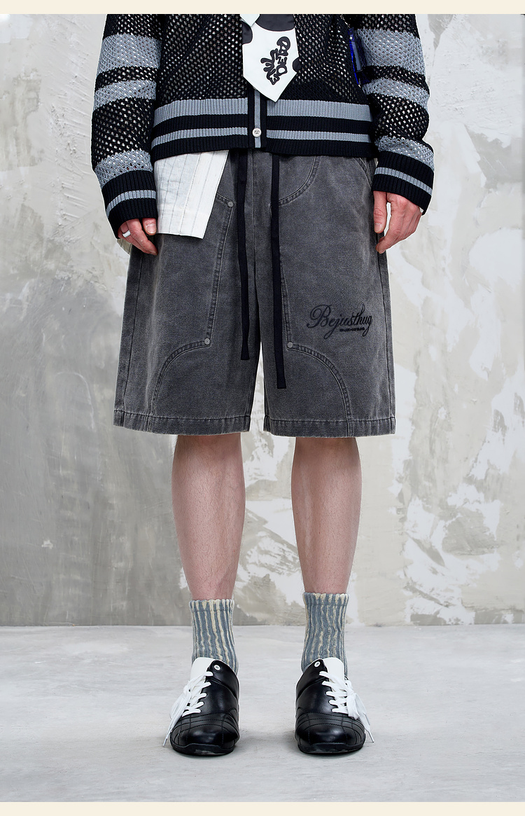 BJHG不计后果重磅仿麂皮绒休闲短裤男夏季潮牌美式水洗运动五分裤