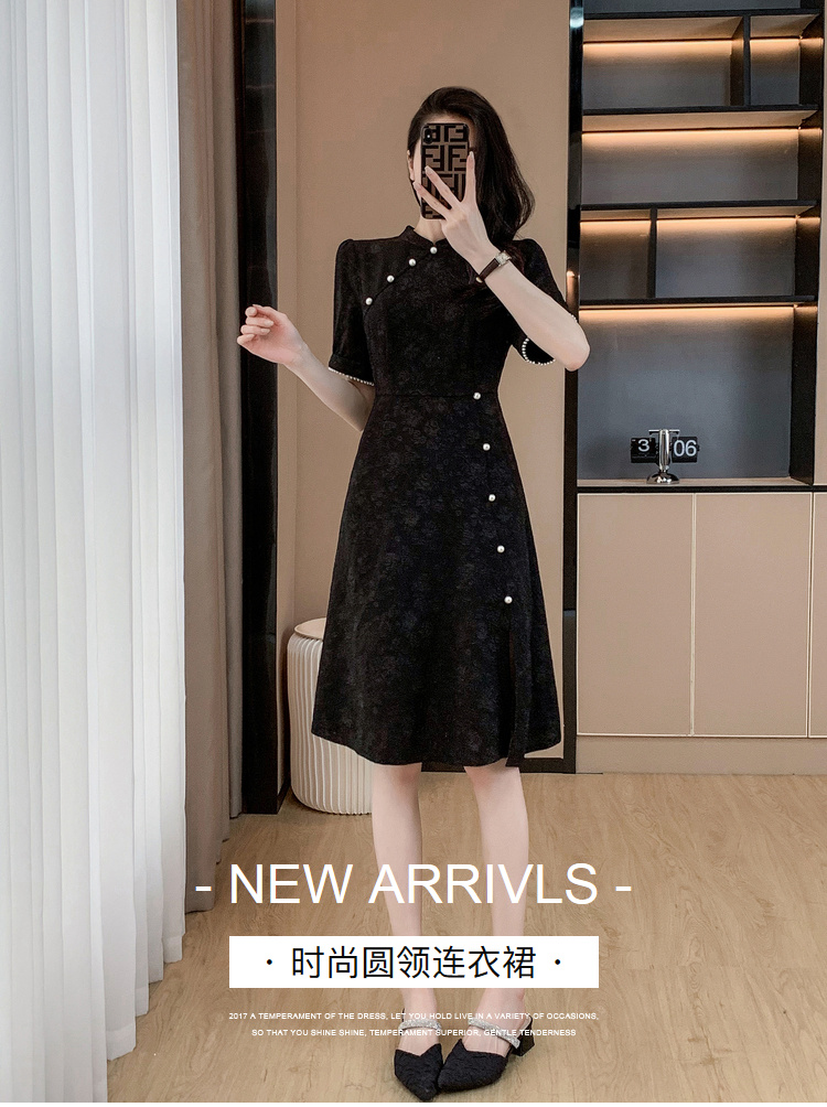 奢姿2025年夏装新款大码女装时尚圆领连衣裙胖妹妹钉珠设计裙子9932890831