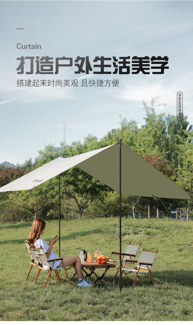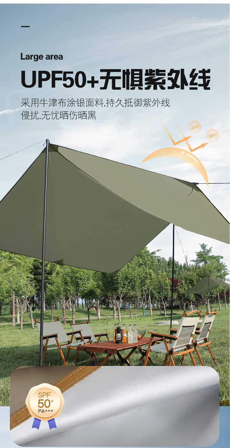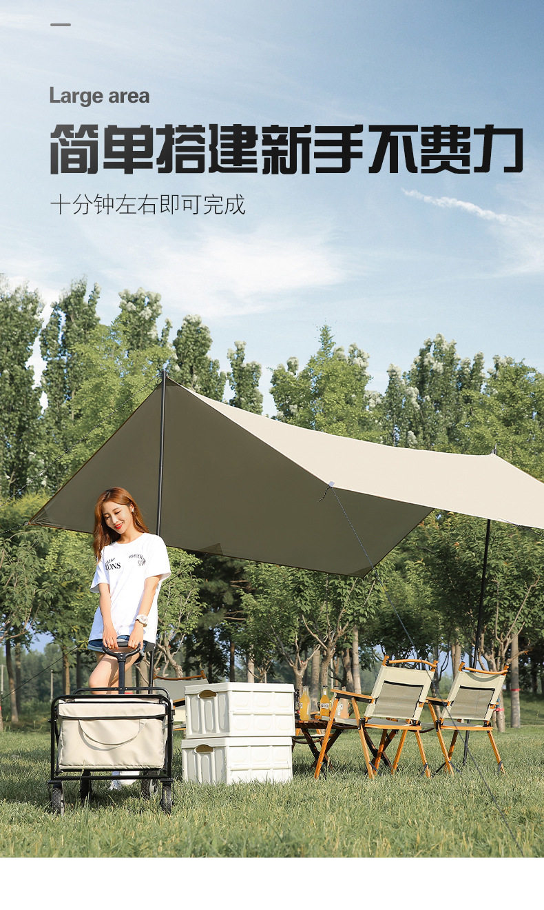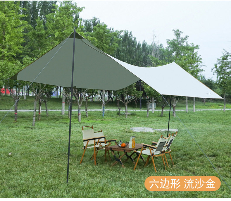 天幕帐篷户外露营遮阳涂银野餐方形六角大型幕布遮阳棚便携式野炊