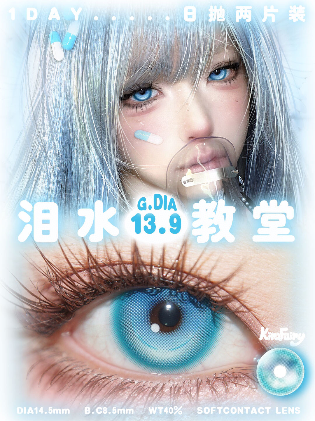 【试戴片】Kira Fairy日抛2片装 新品 撕漫母神/天使恋痛/失控冰吻/银瞳玩偶/光明月夜/泪水教堂/涩谷娘娘 COS 代号鸢/第五人格 孙策/傅融/nagi/拉姆/歌剧演员 显色美瞳